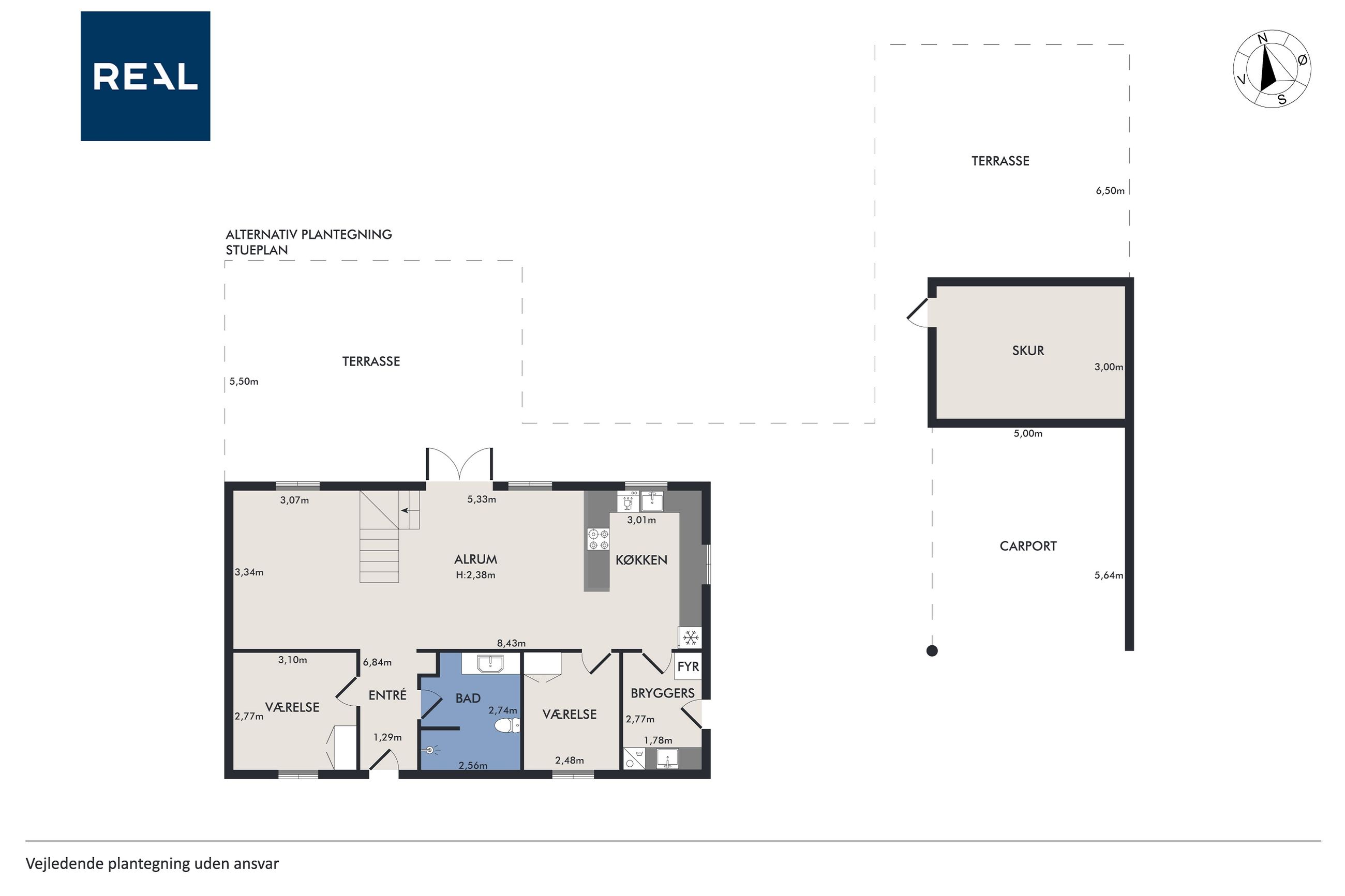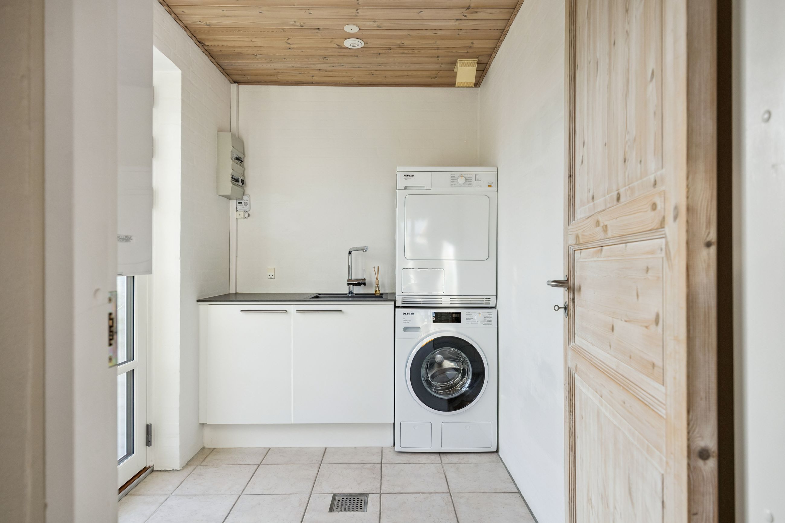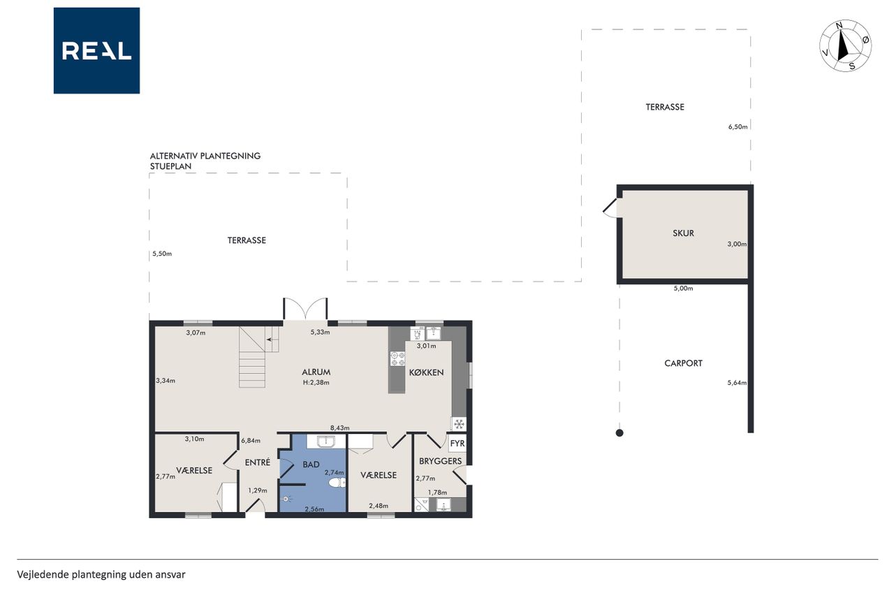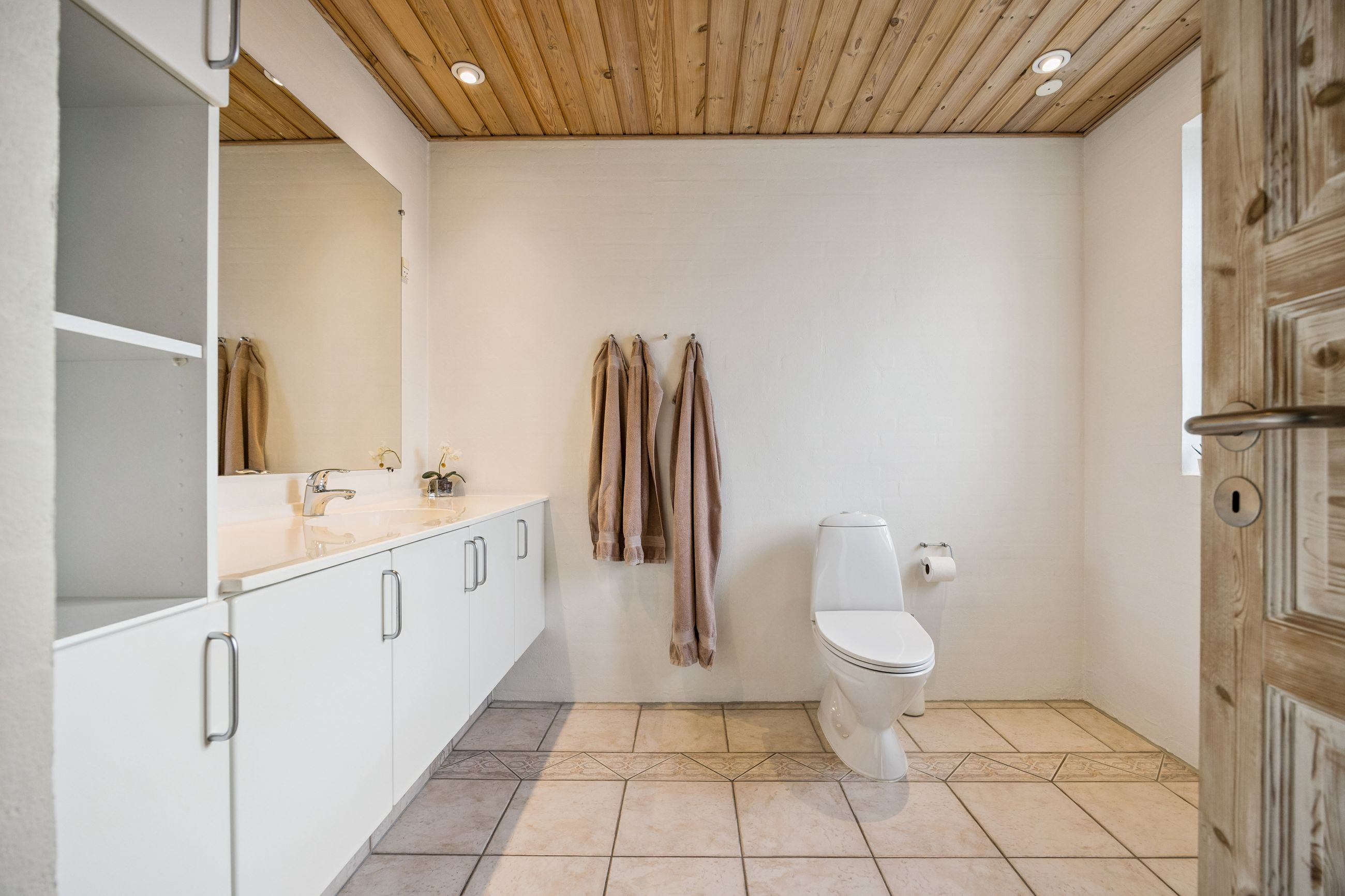 Stueplanet rummer tre værelser, hvilket giver mulighed for både soveværelser og kontorplads alt efter behov. Hvis ønsket er et større køkken-alrum, kan man nemt åbne op til det ene værelse. Det pæne badeværelse og bryggerset fuldender stueplanet sammen med behagelig gulvvarme, der sikrer komfort året rundt.