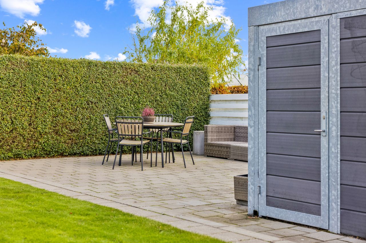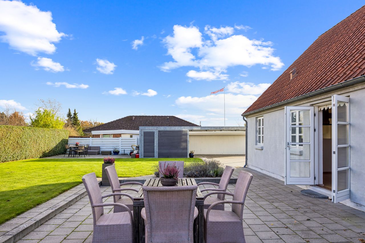 Ejendommen fremstår i god stand takket være nuværende sælgeres omhyggelige pleje og vedligeholdelse – her kan I flytte direkte ind uden bekymringer! Den flotte have er nem at holde med nyere belægning rundt om huset samt flere terrasser hvor solen kan nydes dagen lang. En stor carport med skur giver masser af plads til bilparkering og opbevaring.