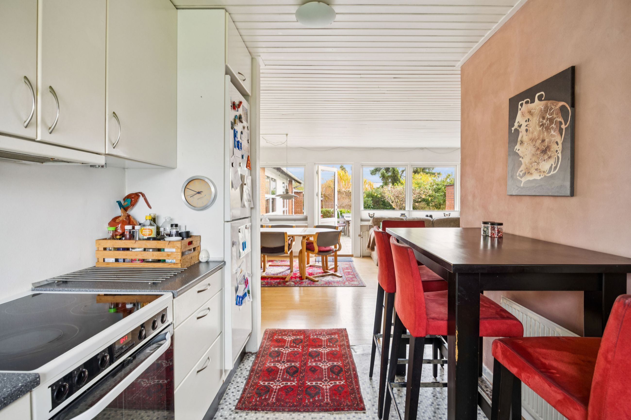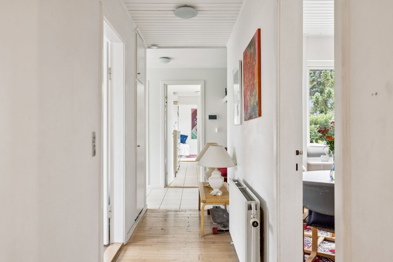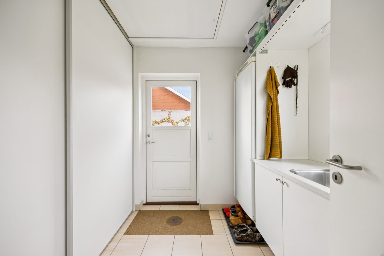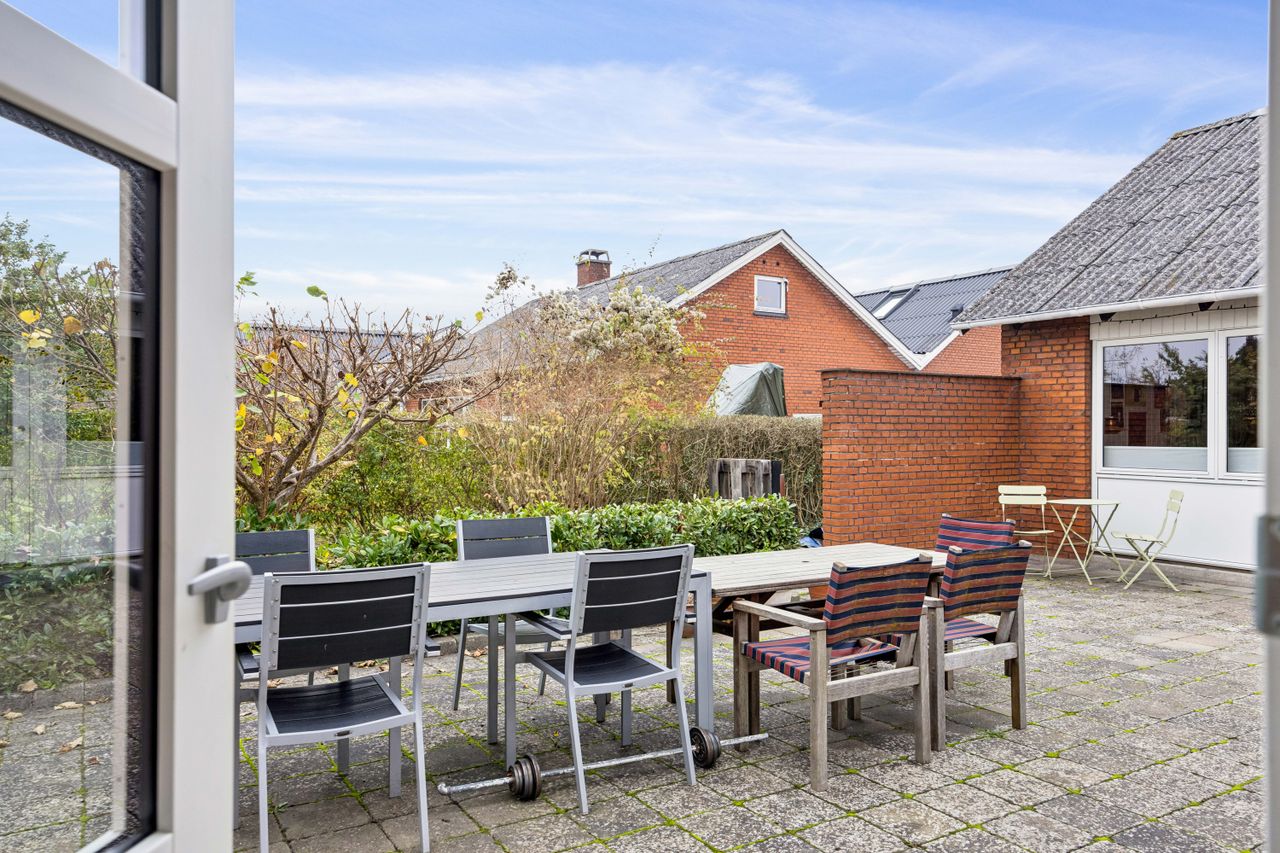 Haven er et kapitel for sig selv; solrig og velanlagt med hyggelige terrassemiljøer rundt om huset, hvor man kan nyde de lange sommeraftener eller drikke morgenkaffen i fredelige omgivelser. Derudover findes et praktisk bryggers samt pæne gulve gennem hele huset, der vidner om den gode stand ejendommen holdes i.