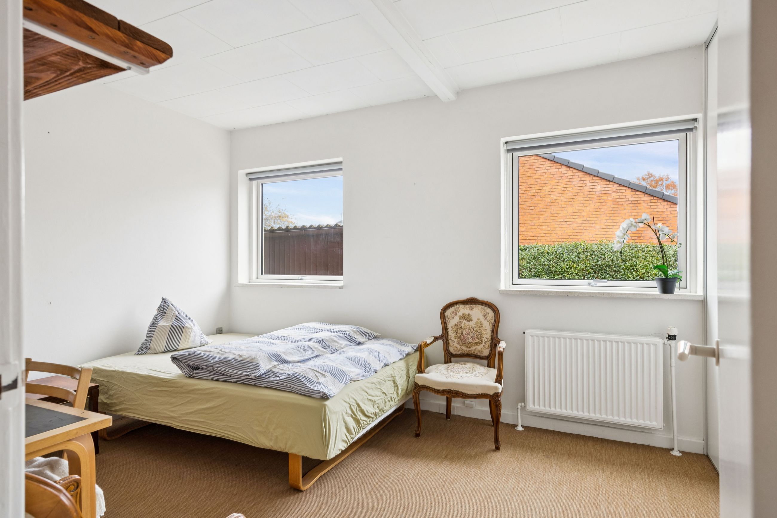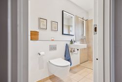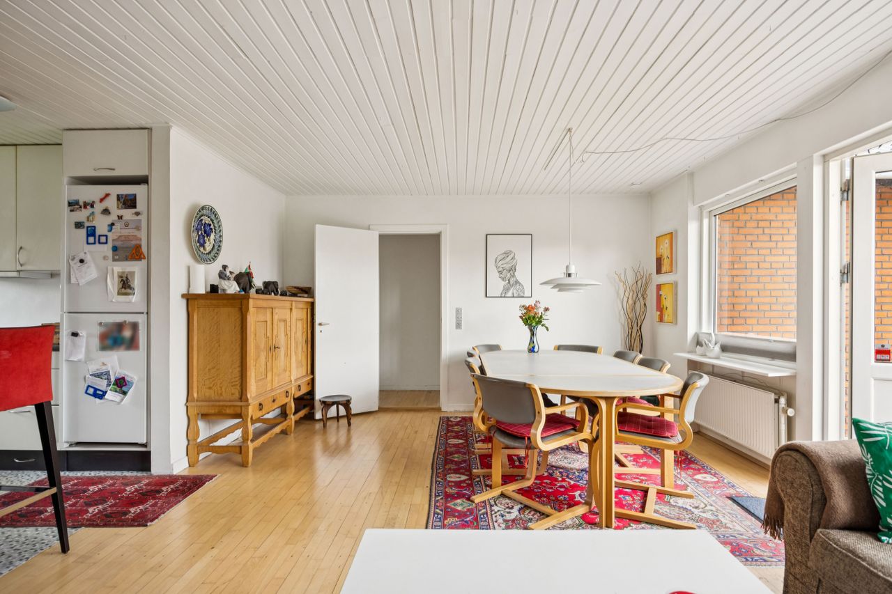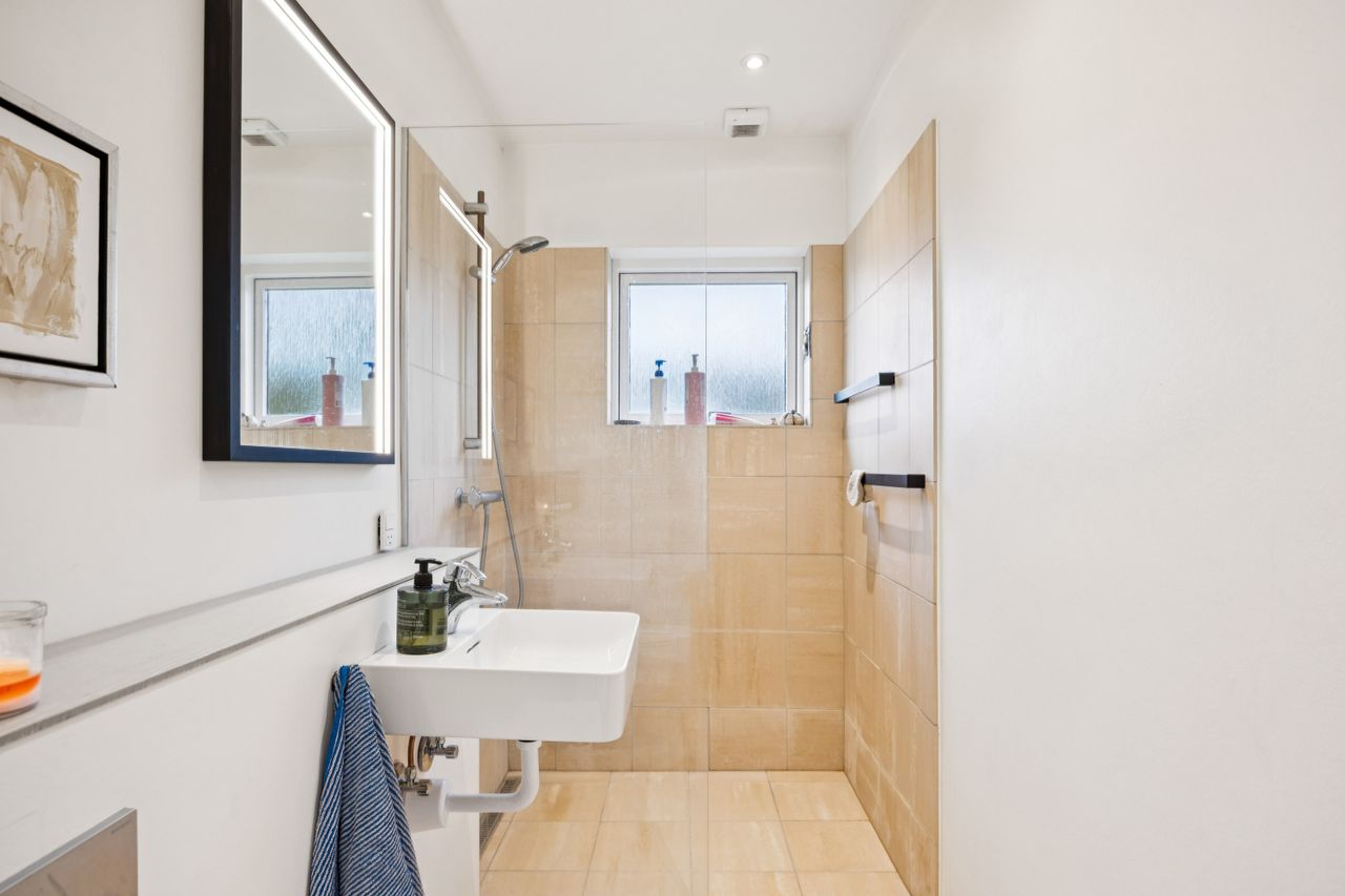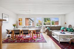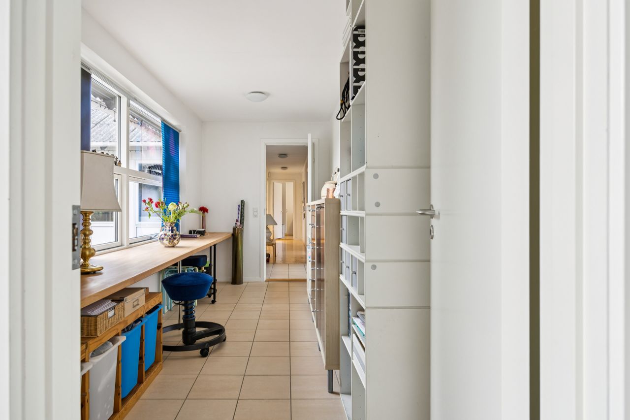 Indretningen er både god og familievenlig med fire rummelige soveværelser, der giver plads til hele familien eller mulighed for hjemmekontor. De to badeværelser er praktiske og moderne, hvilket gør morgenrutinerne nemme og bekvemme. Det skønne køkken-alrum fungerer som husets hjerte med direkte adgang til den solrige have – perfekt til både hverdagens måltider og festlige sammenkomster.
