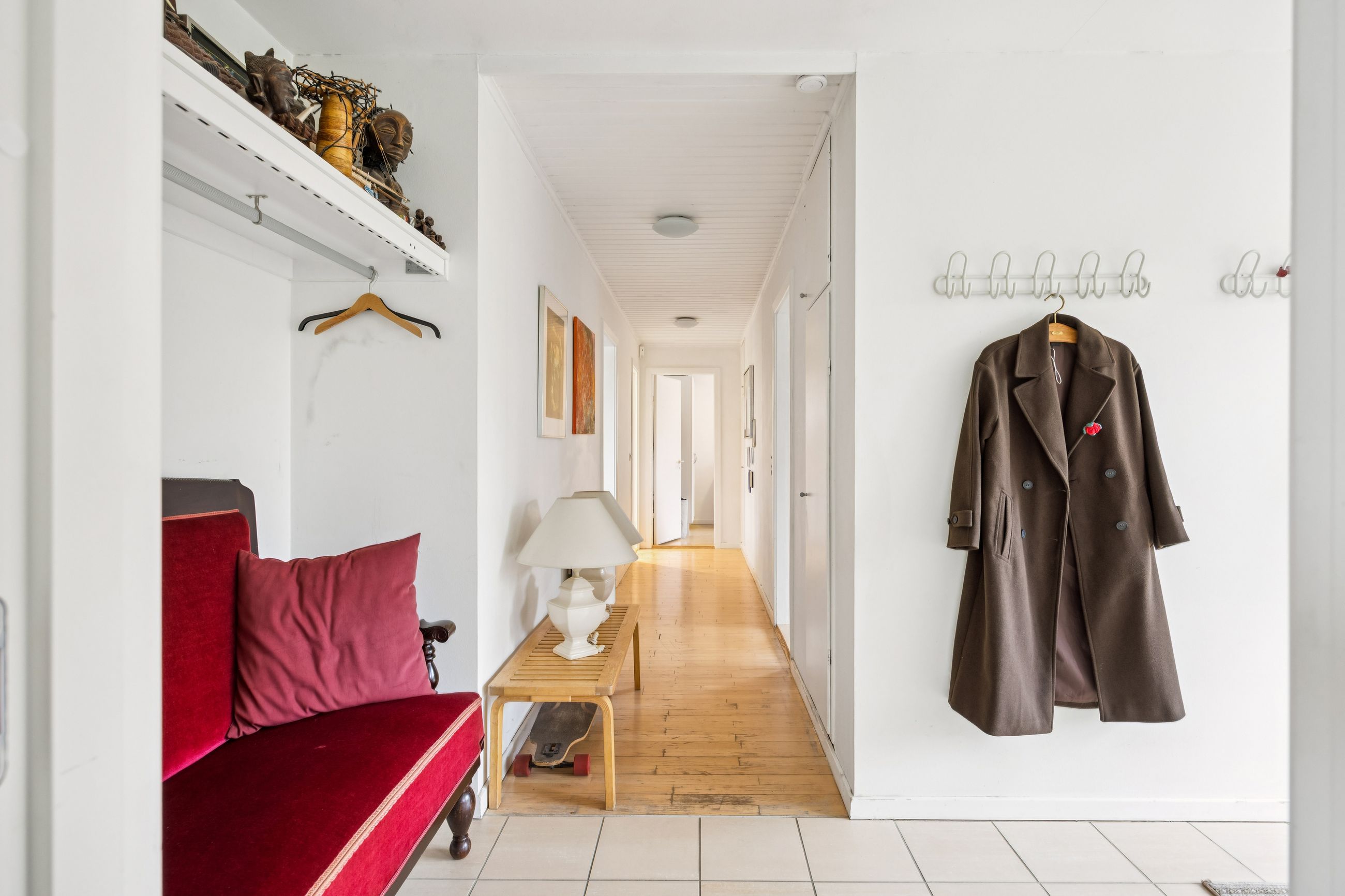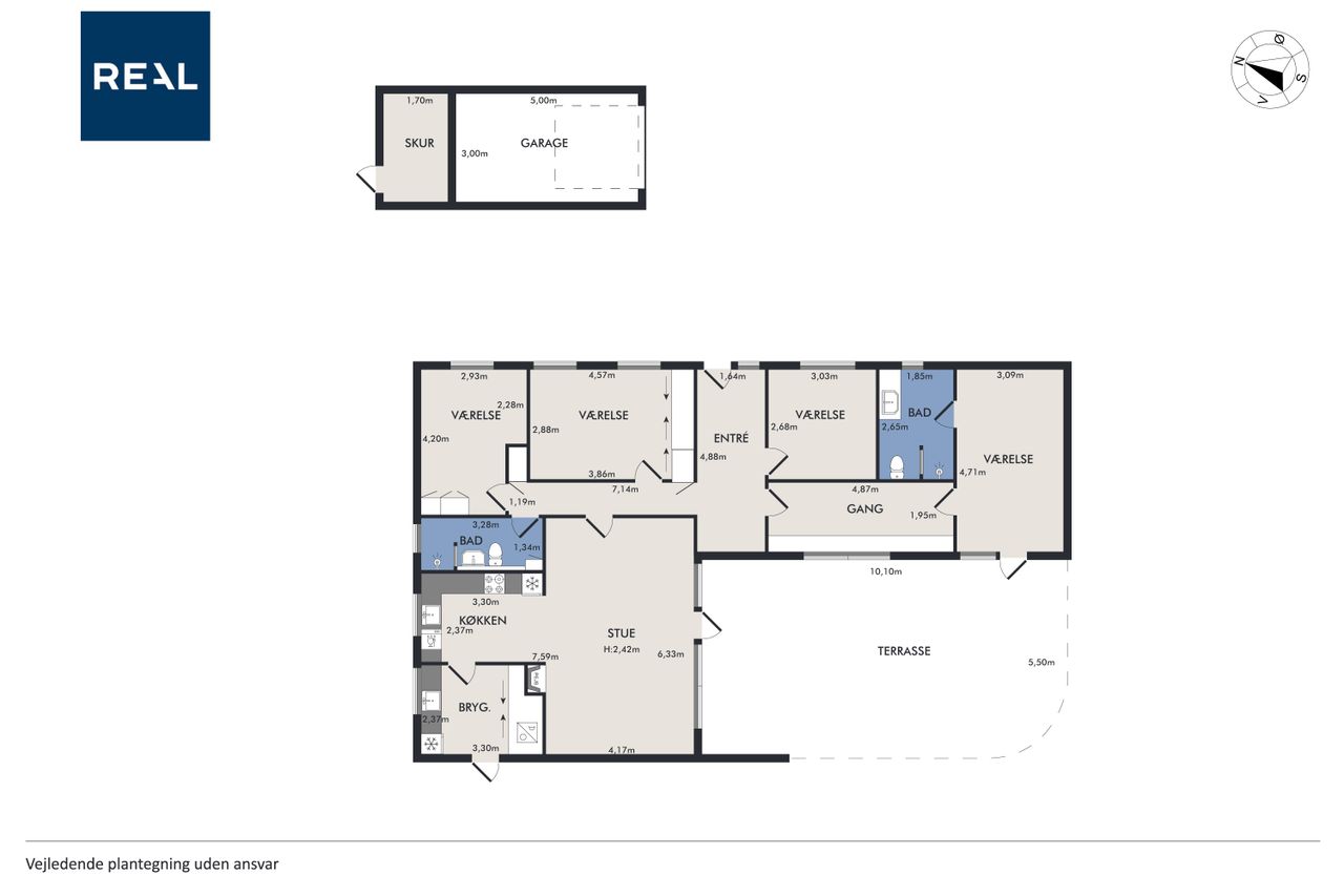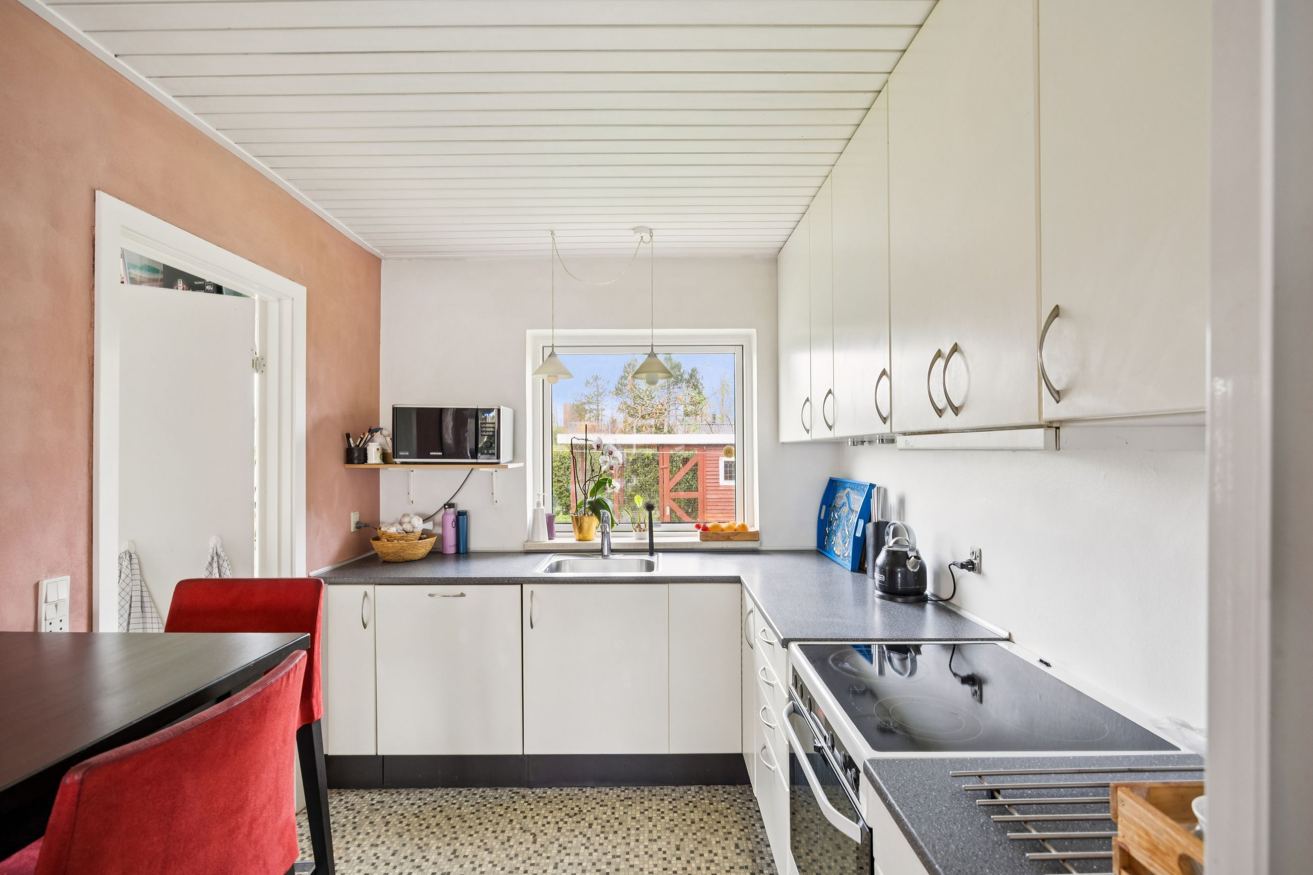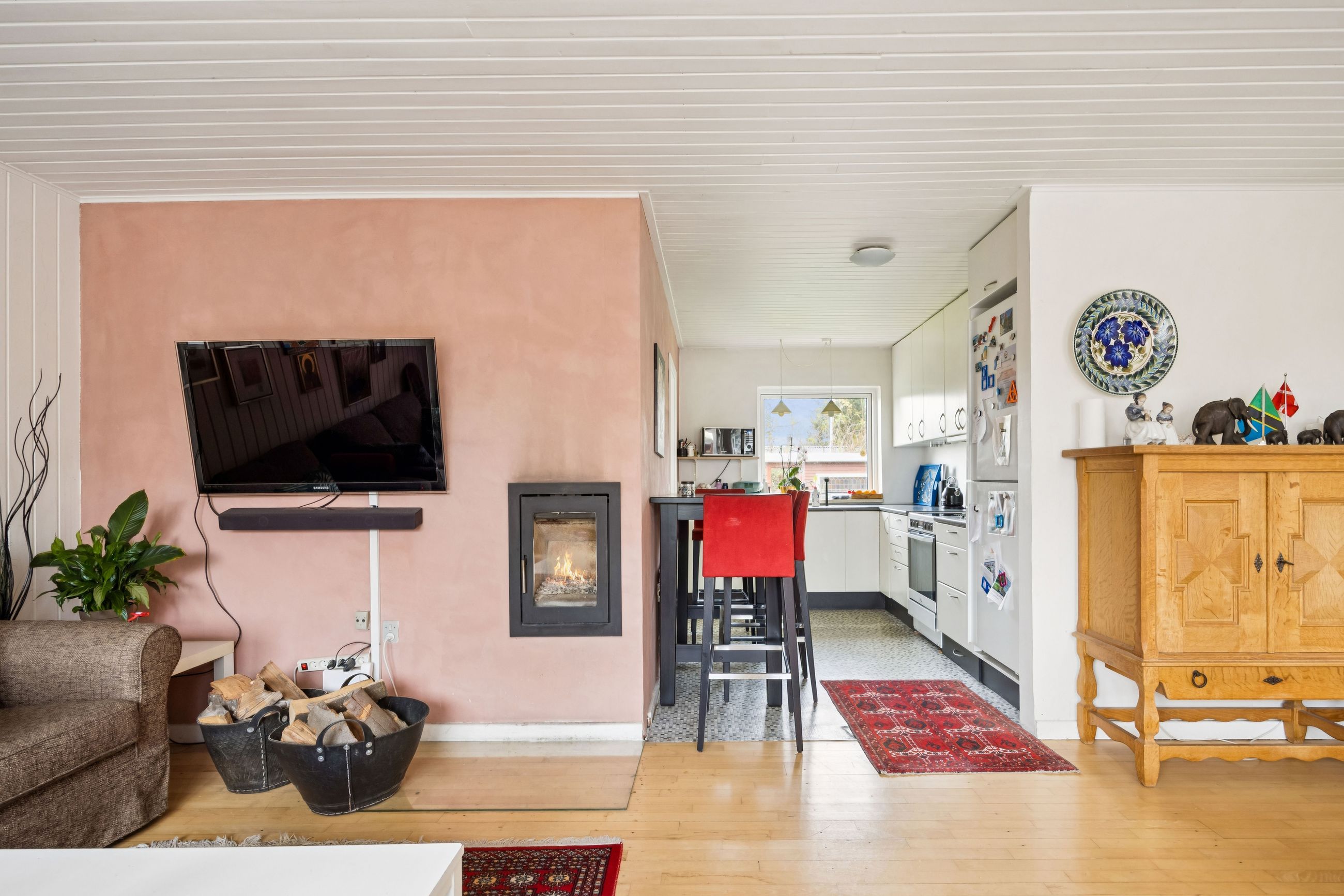 Indretningen er både god og familievenlig med fire rummelige soveværelser, der giver plads til hele familien eller mulighed for hjemmekontor. De to badeværelser er praktiske og moderne, hvilket gør morgenrutinerne nemme og bekvemme. Det skønne køkken-alrum fungerer som husets hjerte med direkte adgang til den solrige have – perfekt til både hverdagens måltider og festlige sammenkomster.