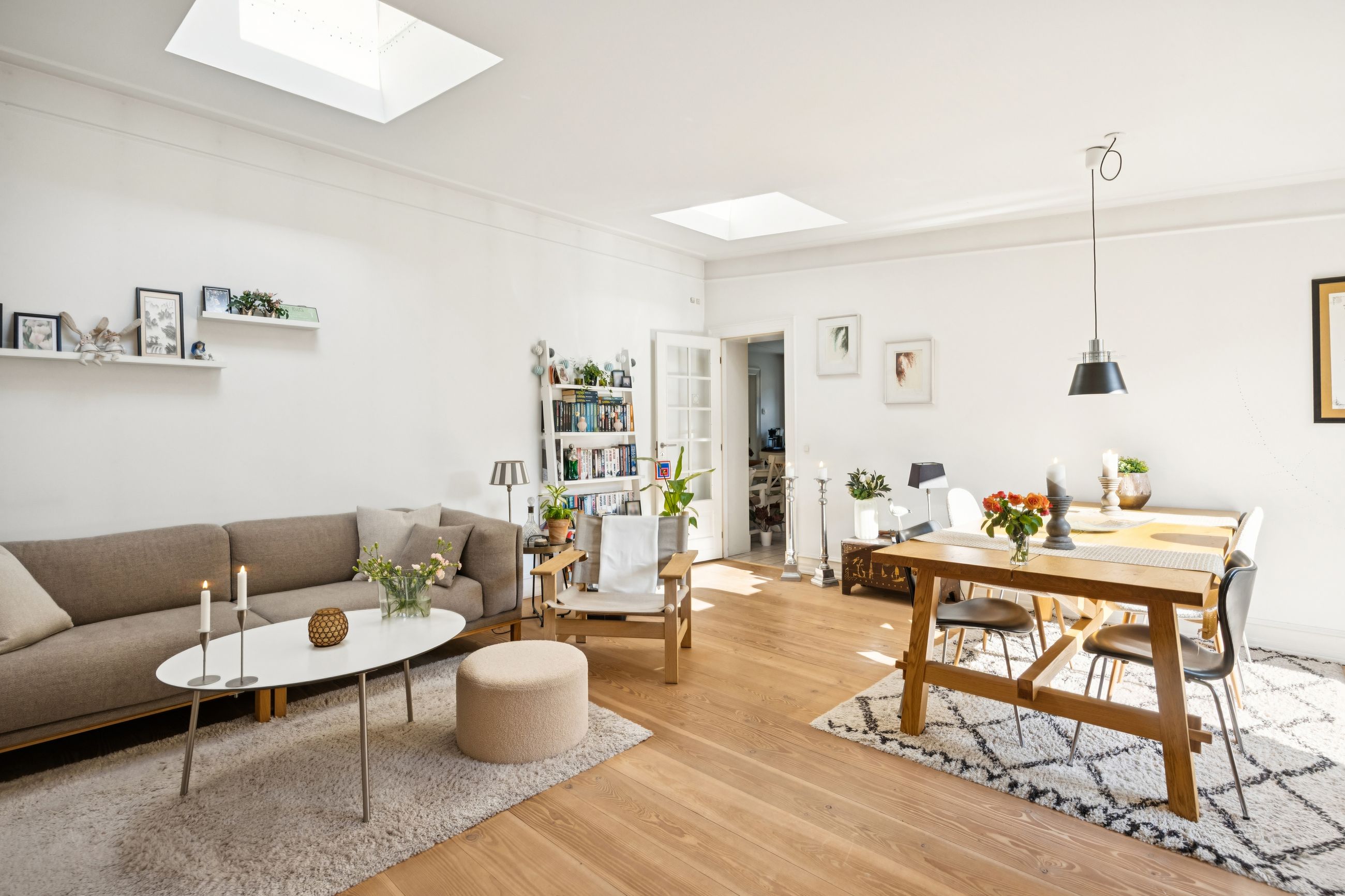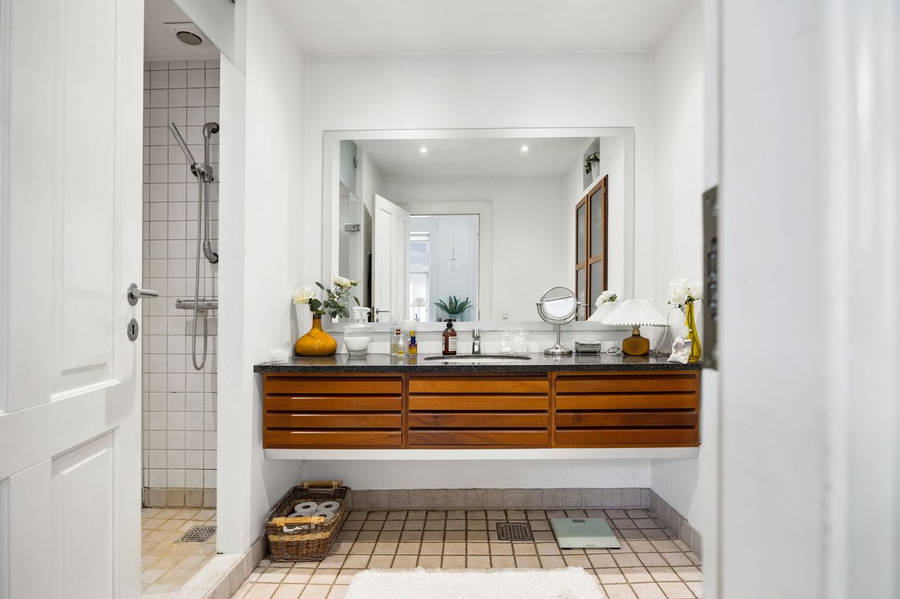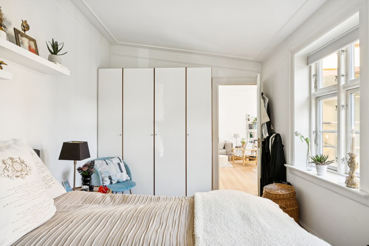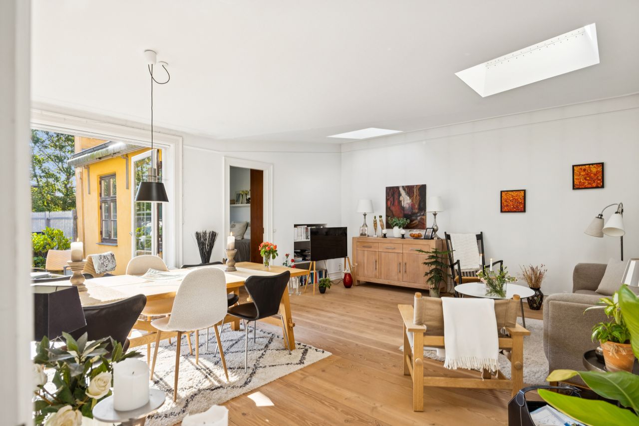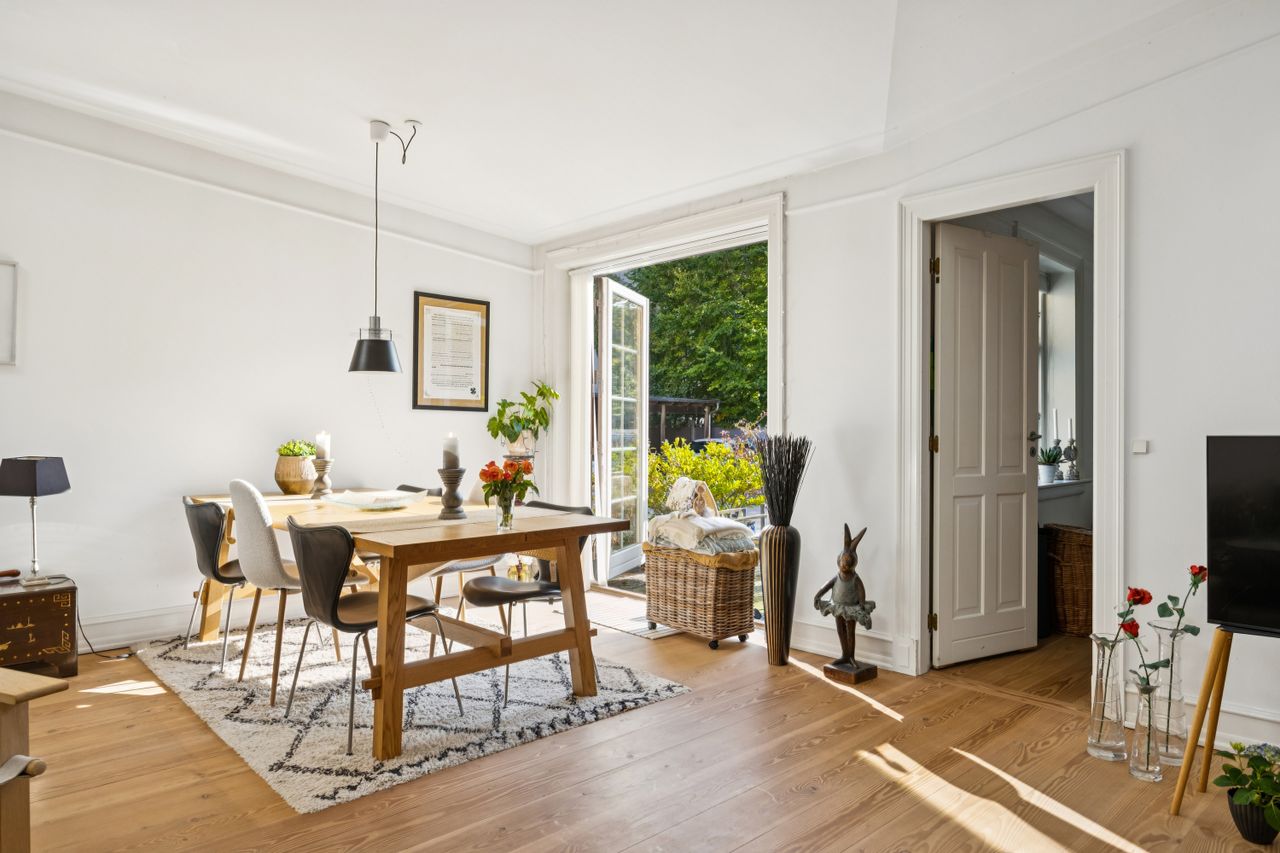 Lejligheden strækker sig over 95 kvadratmeter og er opført i 1877. Den er blevet nænsomt opdateret for at imødekomme nutidens krav til komfort og stil. Hele boligen er udstyret med gulvvarme, hvilket sikrer en behagelig temperatur året rundt. Den gode planløsning gør det nemt at indrette sig efter dine behov, mens de lyse rum skaber en åben og indbydende atmosfære.