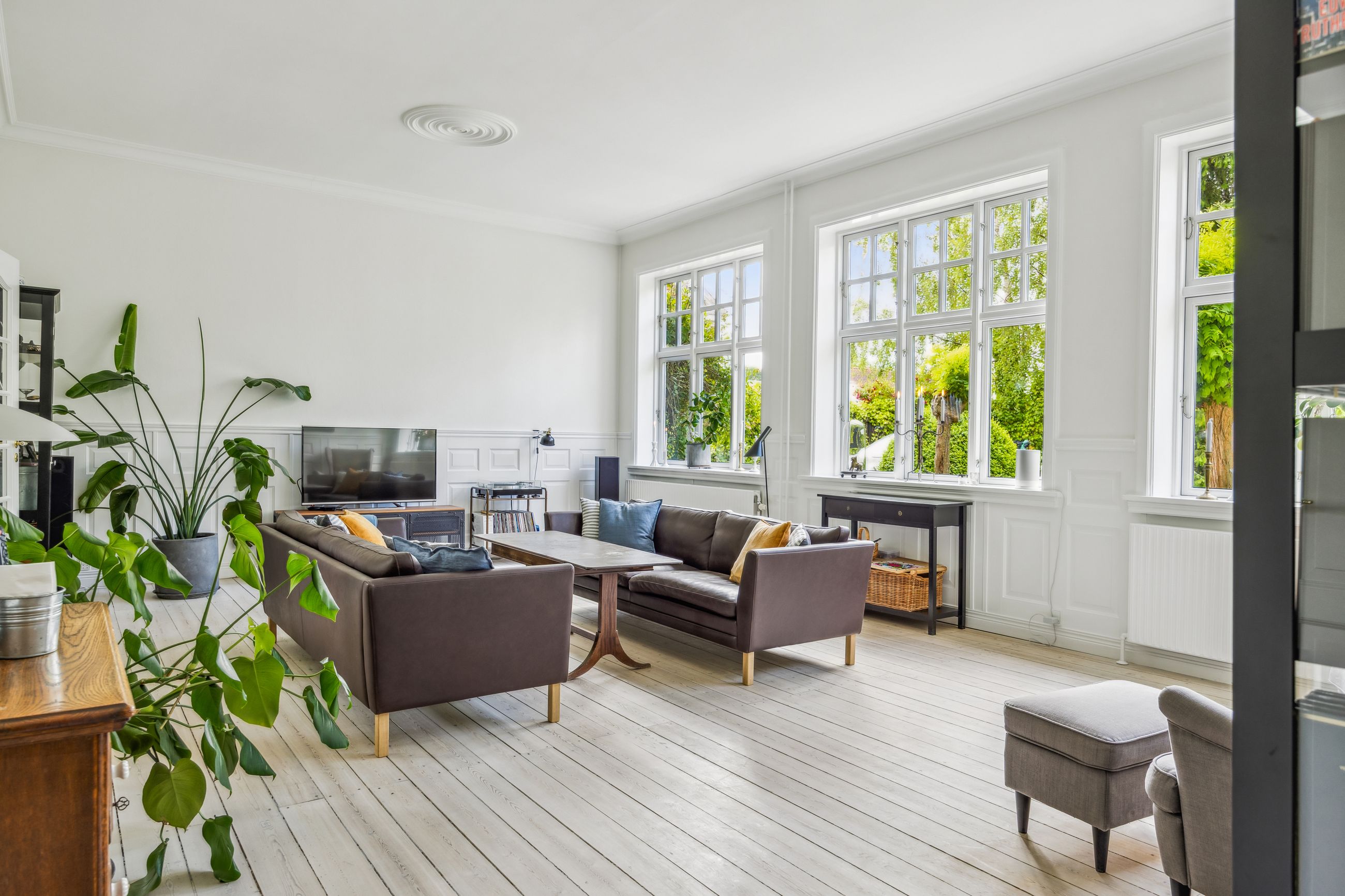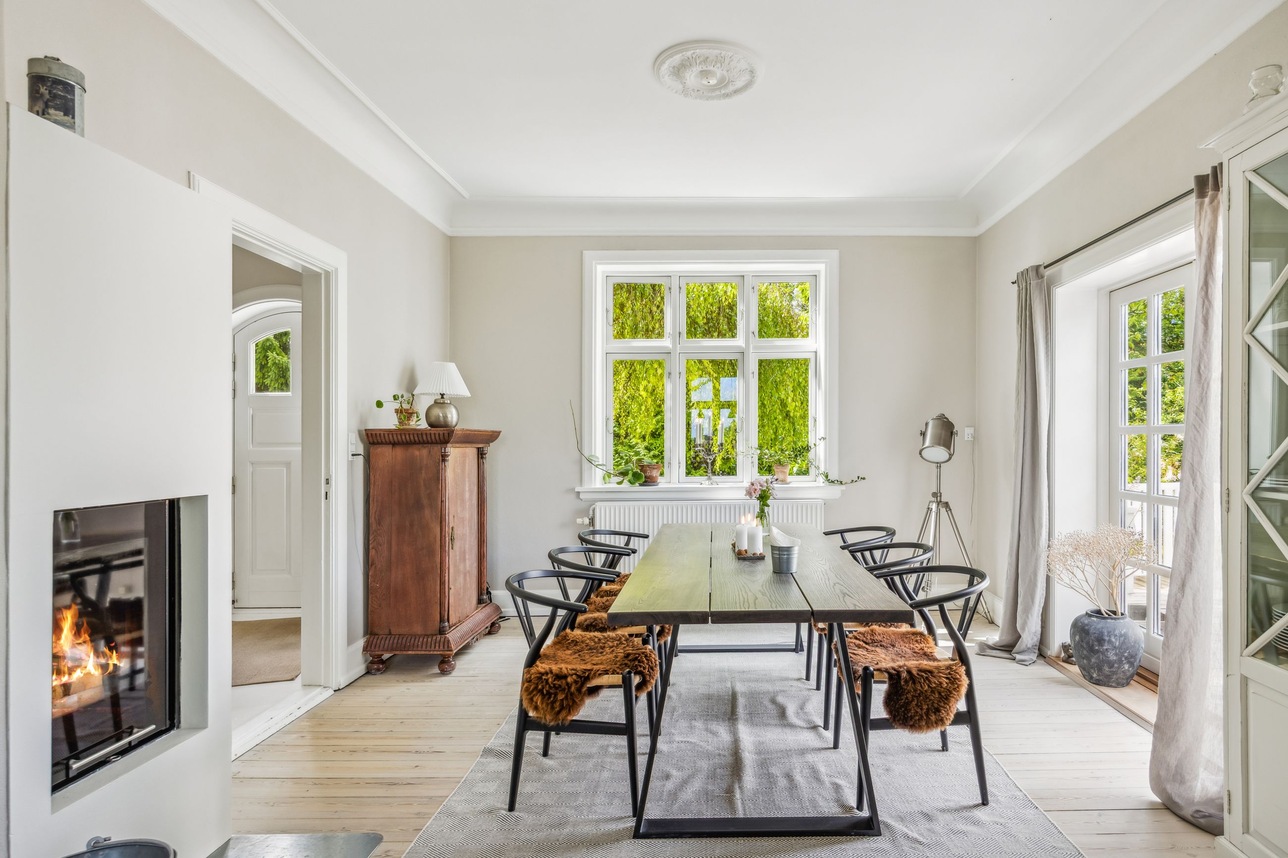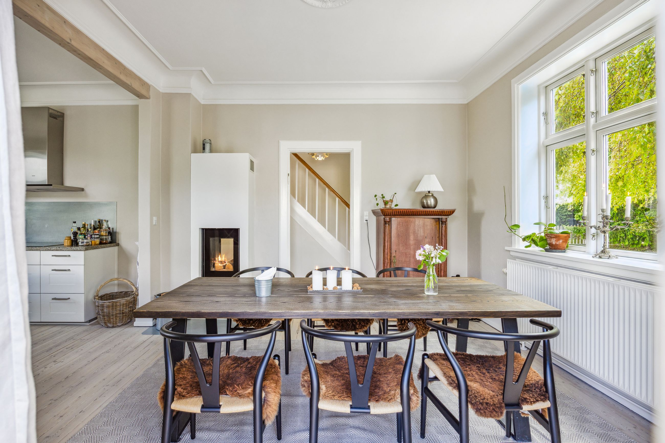 Villaen er opført i 1927 og strækker sig over et imponerende boligareal på 214 kvadratmeter samt 44 kvadratmeter høj og tør kælder. Her finder du den perfekte ramme for familielivet med god planløsning, med blandt andet 2 gode badeværelser og flere lyse værelser. Huset byder på 3 hjerterum, 1) førstesalens multirum med fritlæggende bjælker og plads til alverdens aktiviteter, 2) Stueetagens store stue, indrettet med imponerende loftshøjde, stuk og høje paneler, 3) Det store køkken/alrum med tunnelpejs og udsigt til marken.