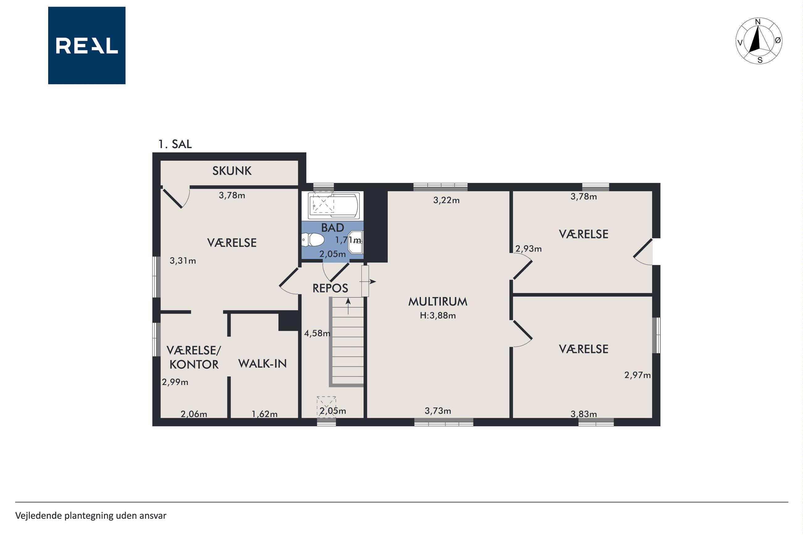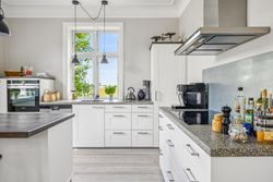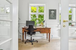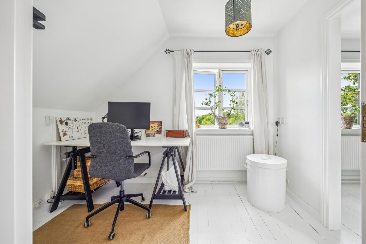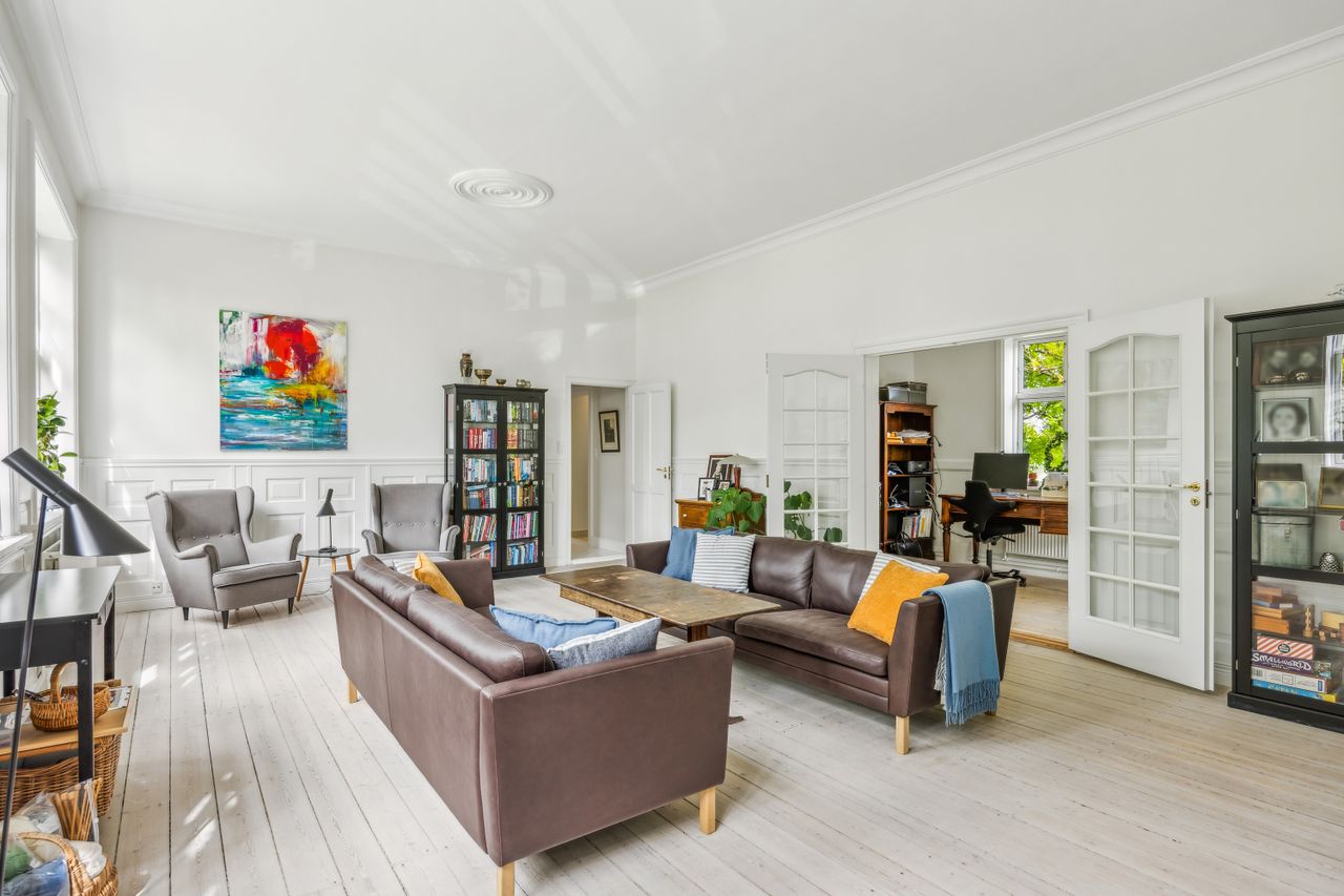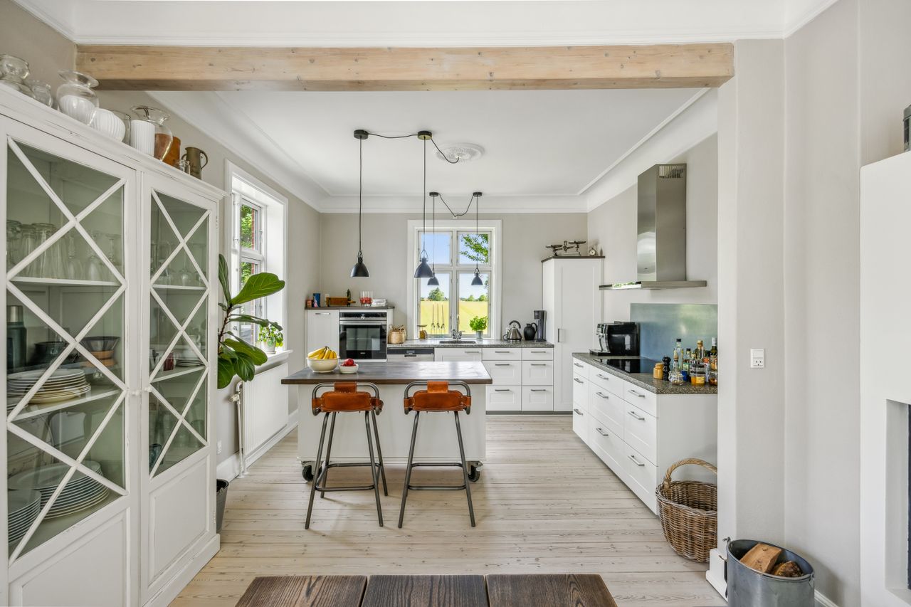 Villaen er opført i 1927 og strækker sig over et imponerende boligareal på 214 kvadratmeter samt 44 kvadratmeter høj og tør kælder. Her finder du den perfekte ramme for familielivet med god planløsning, med blandt andet 2 gode badeværelser og flere lyse værelser. Huset byder på 3 hjerterum, 1) førstesalens multirum med fritlæggende bjælker og plads til alverdens aktiviteter, 2) Stueetagens store stue, indrettet med imponerende loftshøjde, stuk og høje paneler, 3) Det store køkken/alrum med tunnelpejs og udsigt til marken.