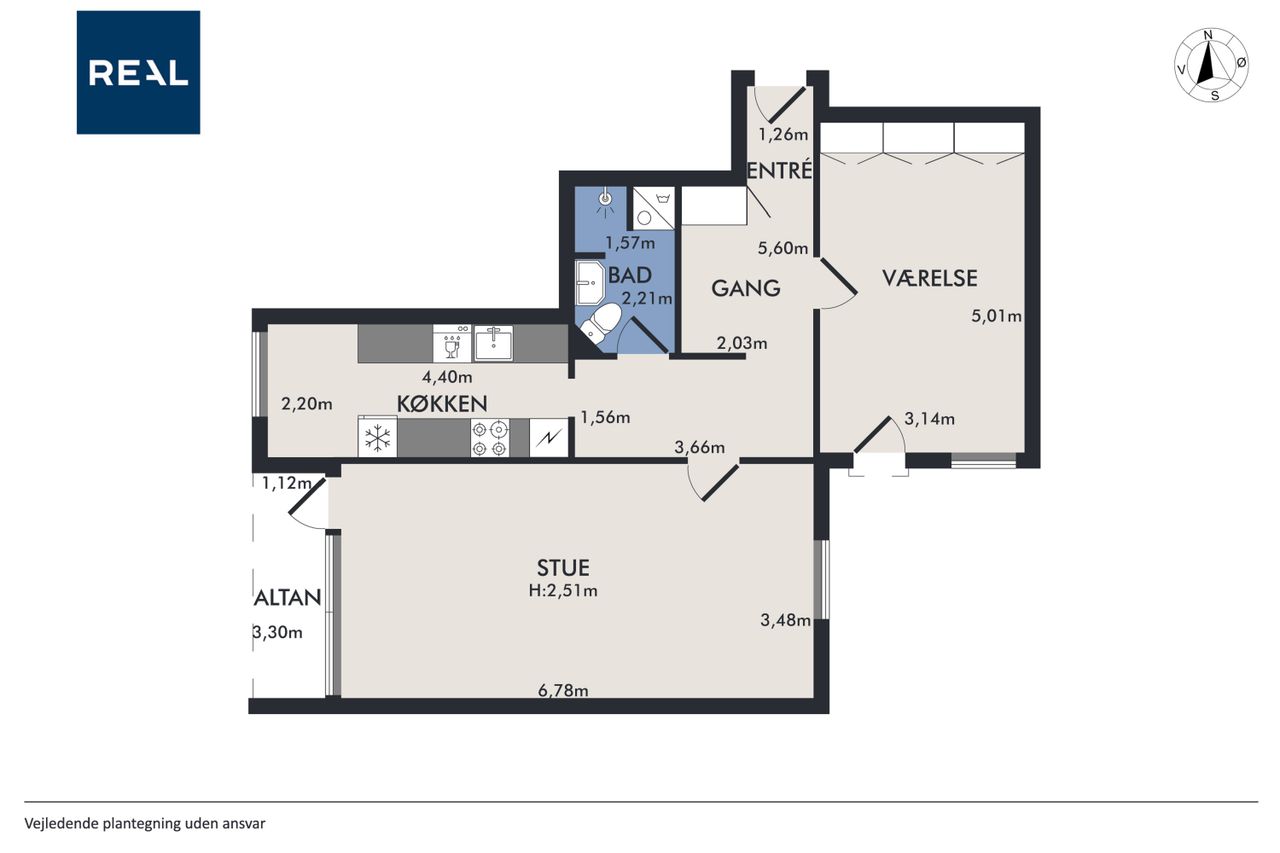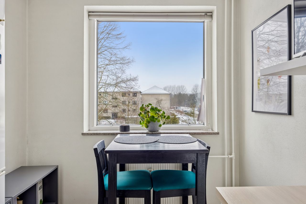 Lejligheden består af et stort soveværelse med rigelig plads til garderobeskabe og personlige ejendele. Den lyse og indbydende stue giver masser af plads til afslapning og underholdning, hvor du kan nyde hyggelige aftener med venner og familie. Det moderne badeværelse er udstyret med alt nødvendigt inventar, mens køkkenet tilbyder god opbevaringsplads samt mulighed for at udfolde dine kulinariske evner.