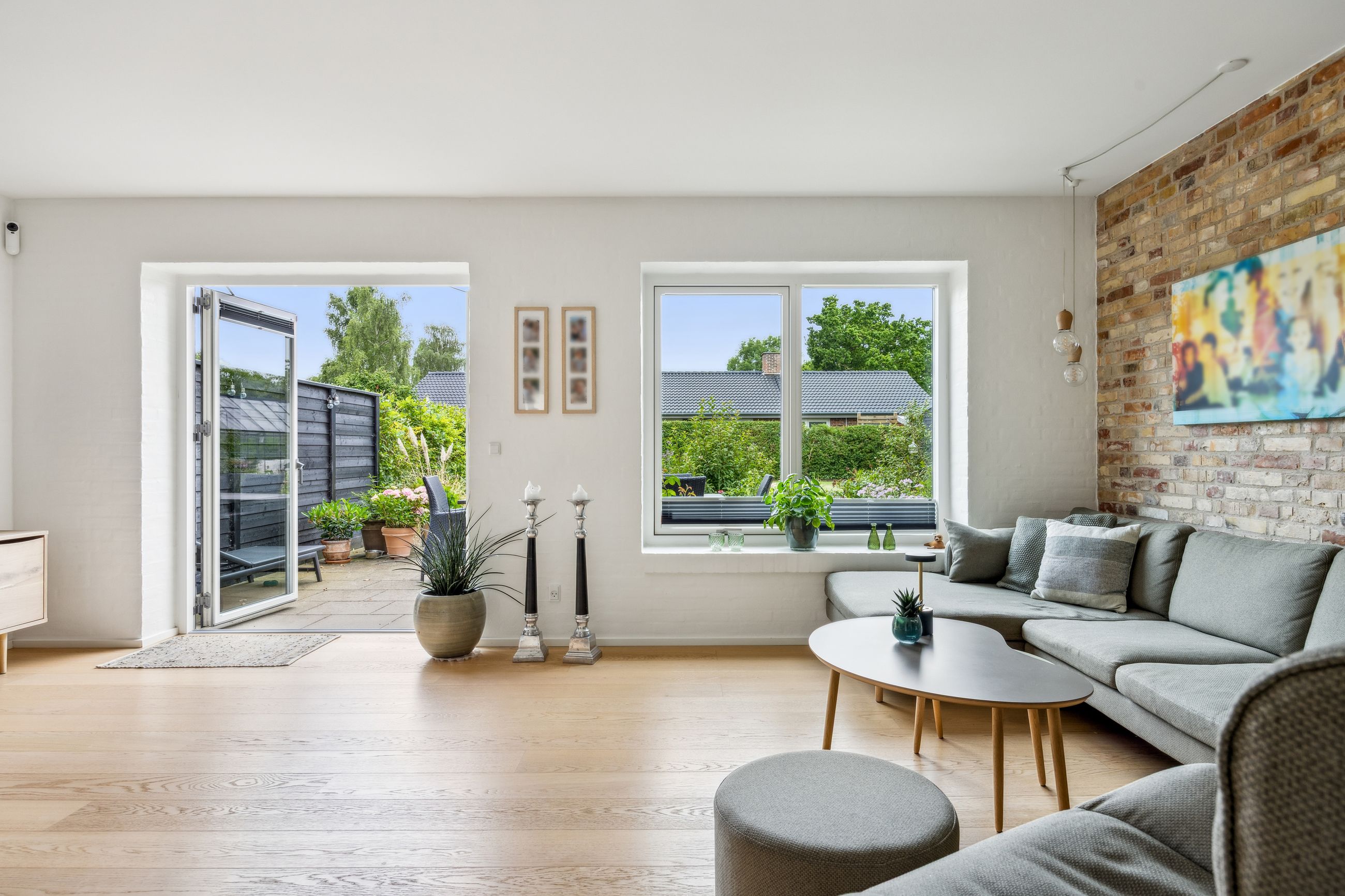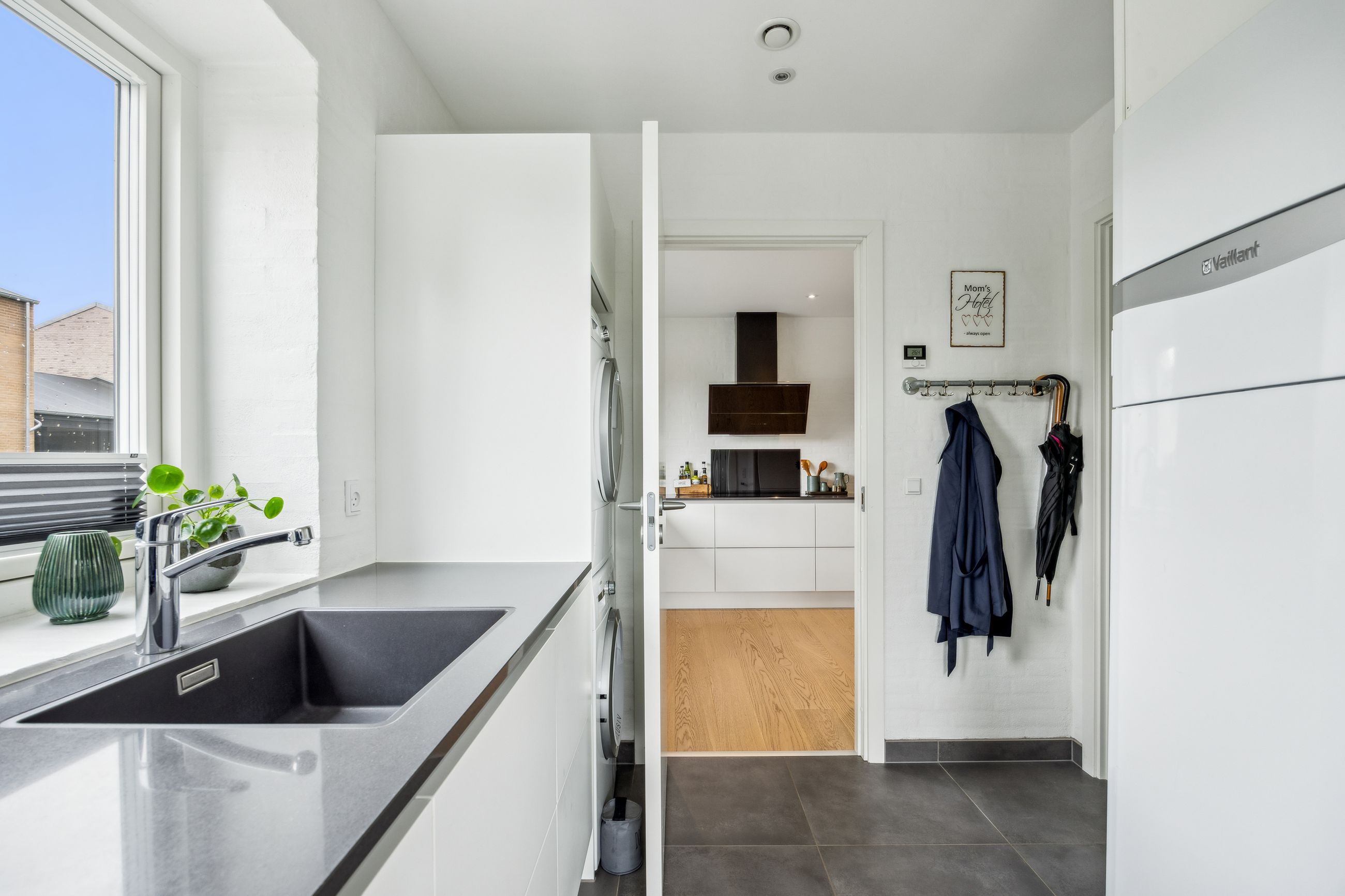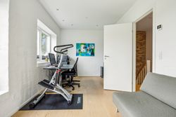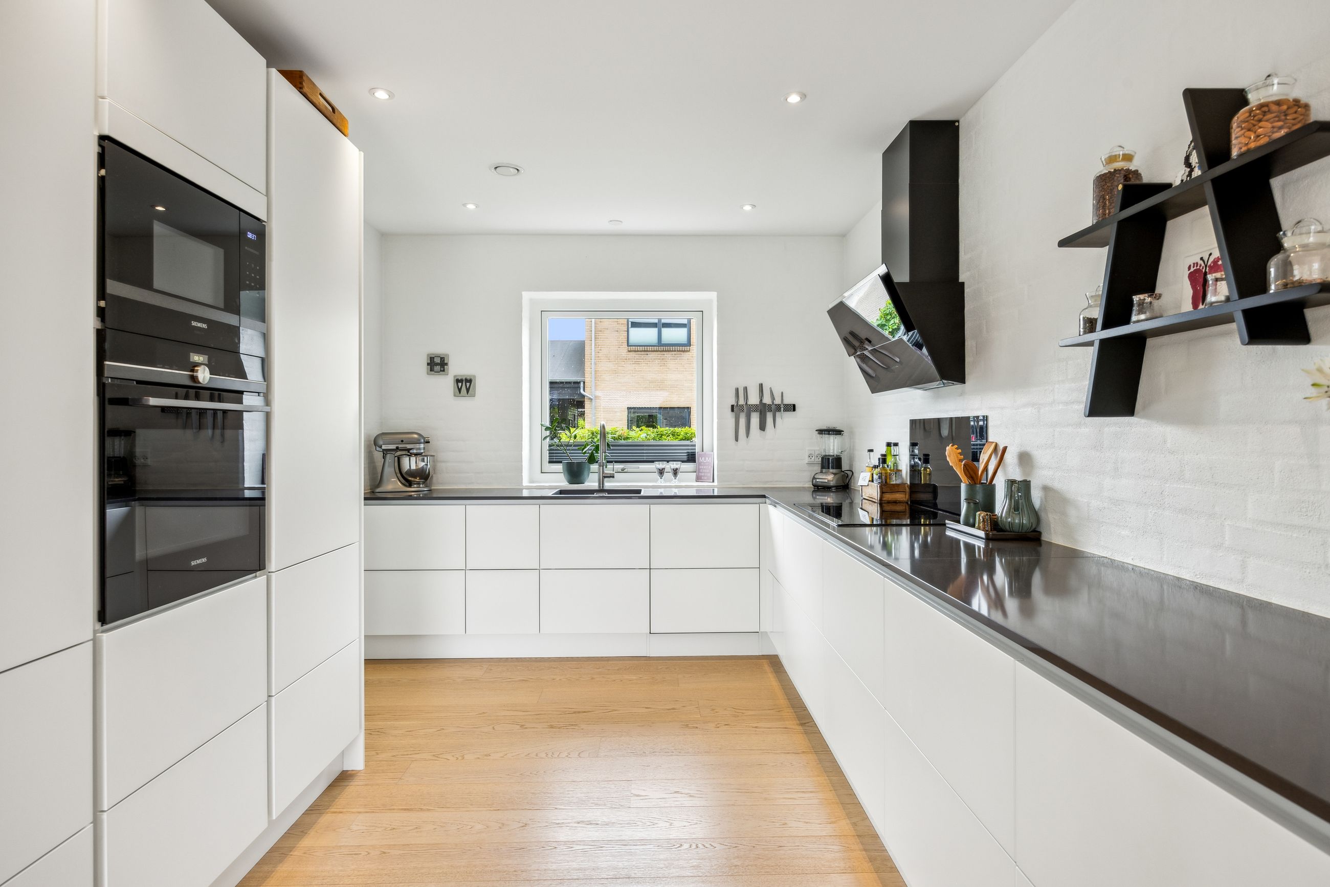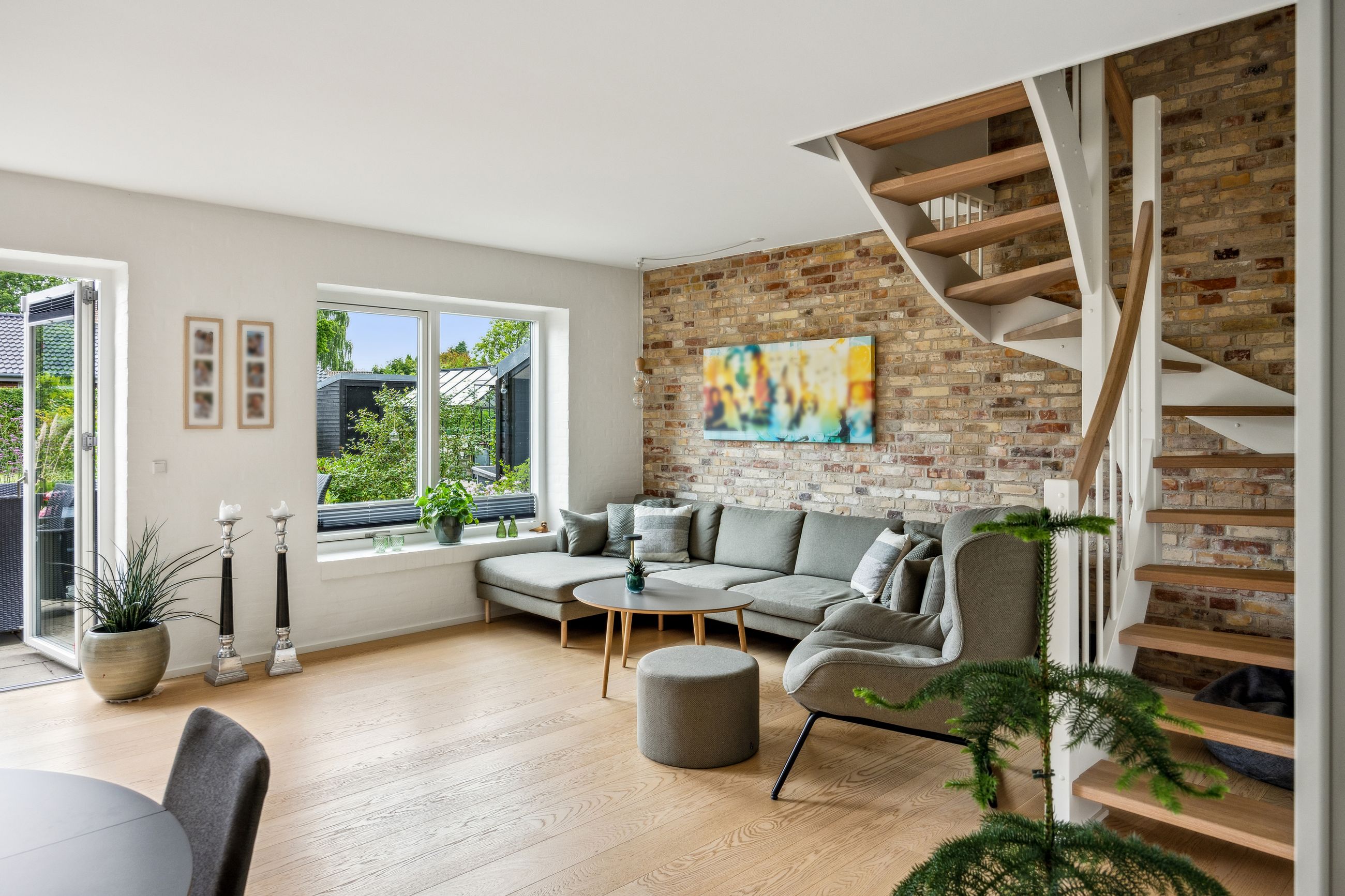 Stuen prydes af en imponerende New Yorker væg, som skaber en stilfuld atmosfære og leder videre til haven gennem en elegant dobbelt terrassedør. Køkkenet er fra Svane og udstyret med alle de moderne bekvemmeligheder, herunder en Quooker med kølerfunktion både med og uden brus samt centralstøvsuger for optimal komfort. Boligen er udstyret med gulvvarme over det hele. Parketgulvene gennem huset sikrer en varm og indbydende stemning.