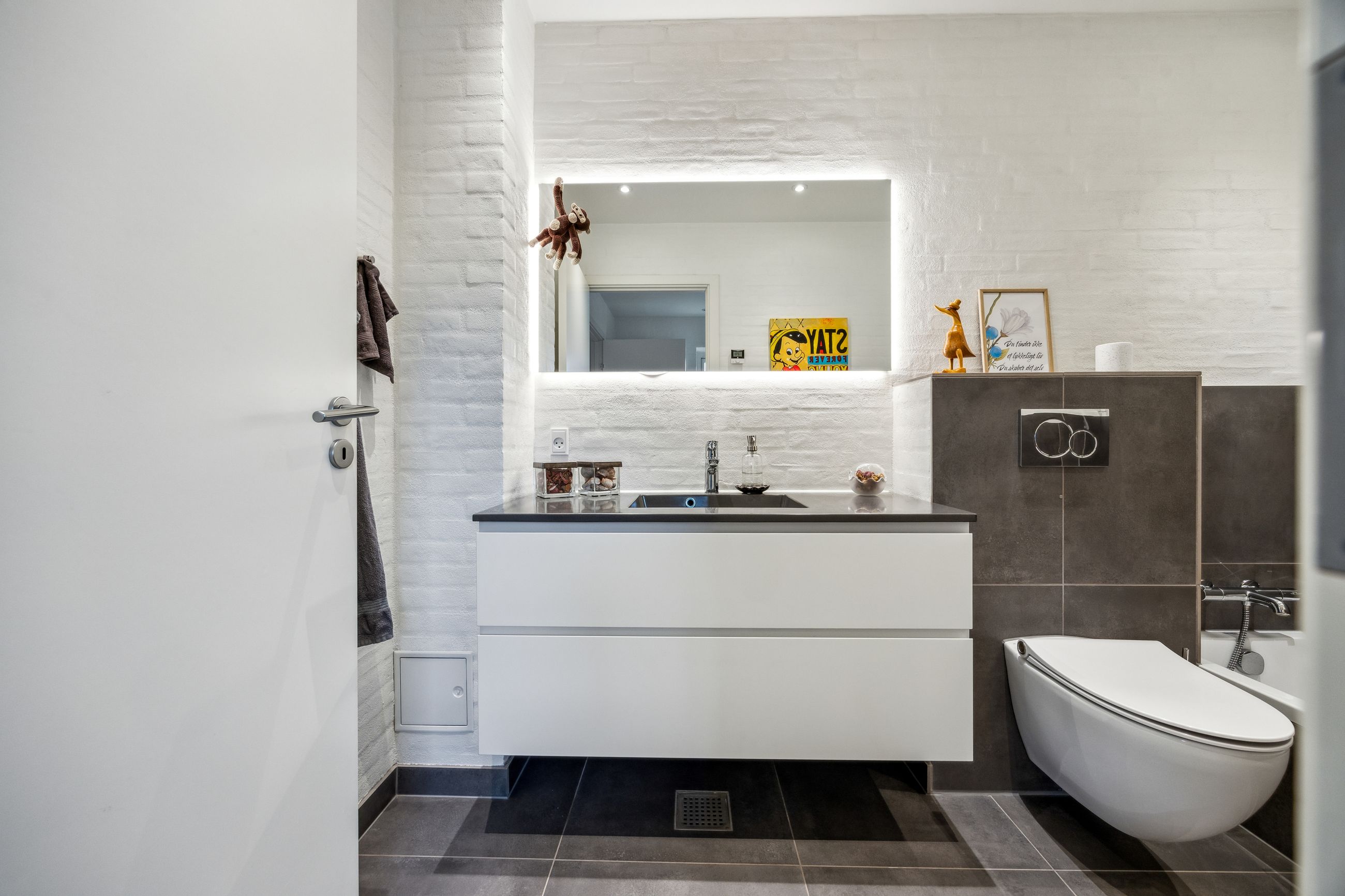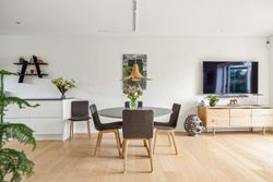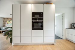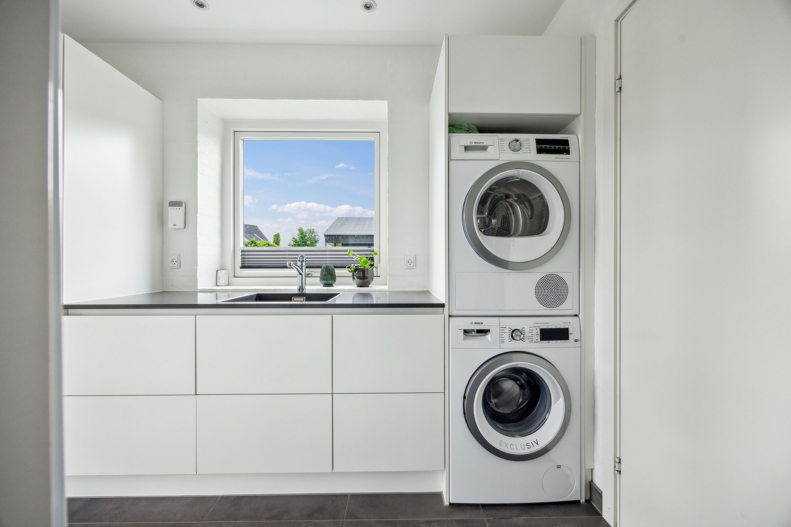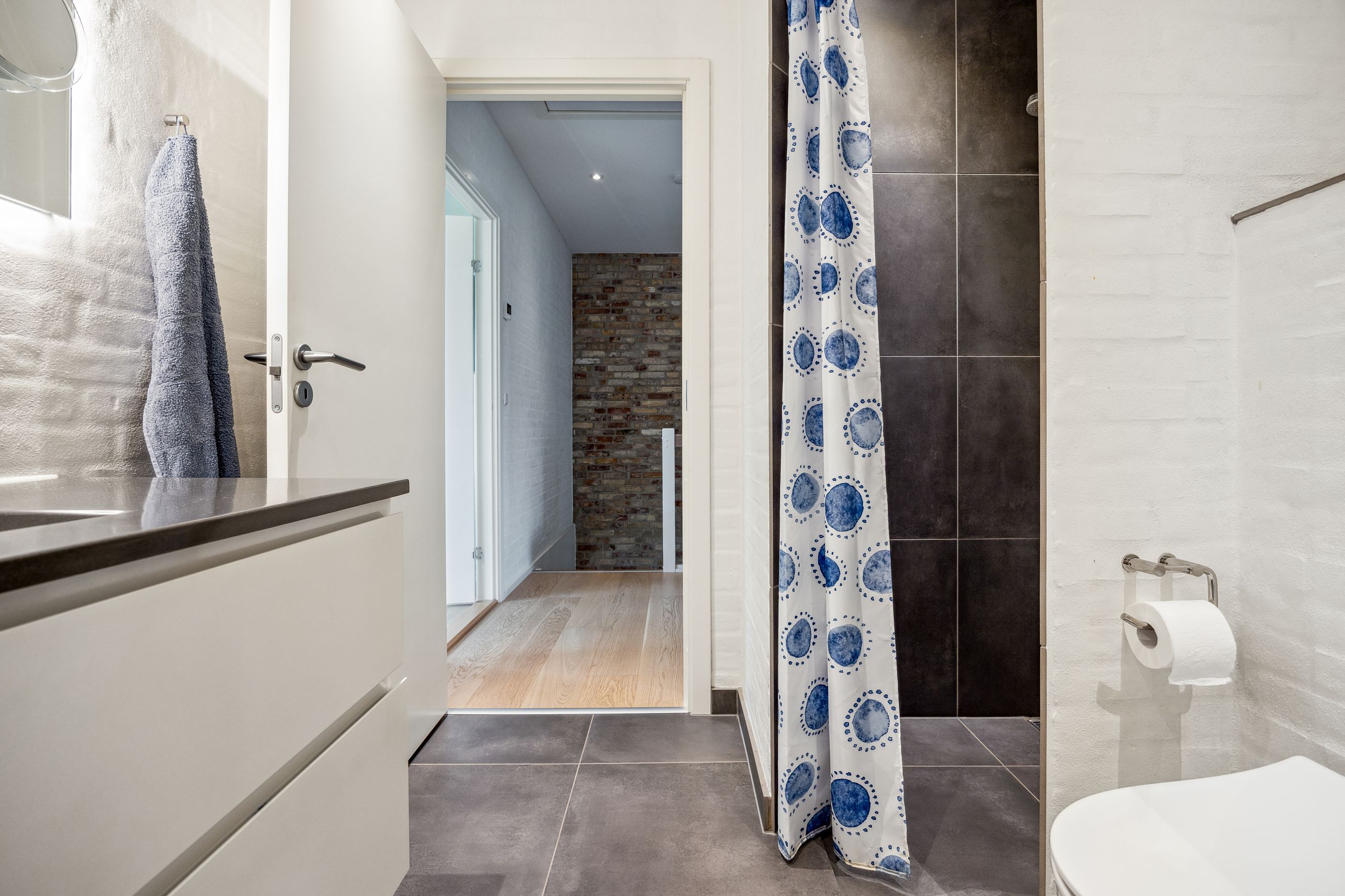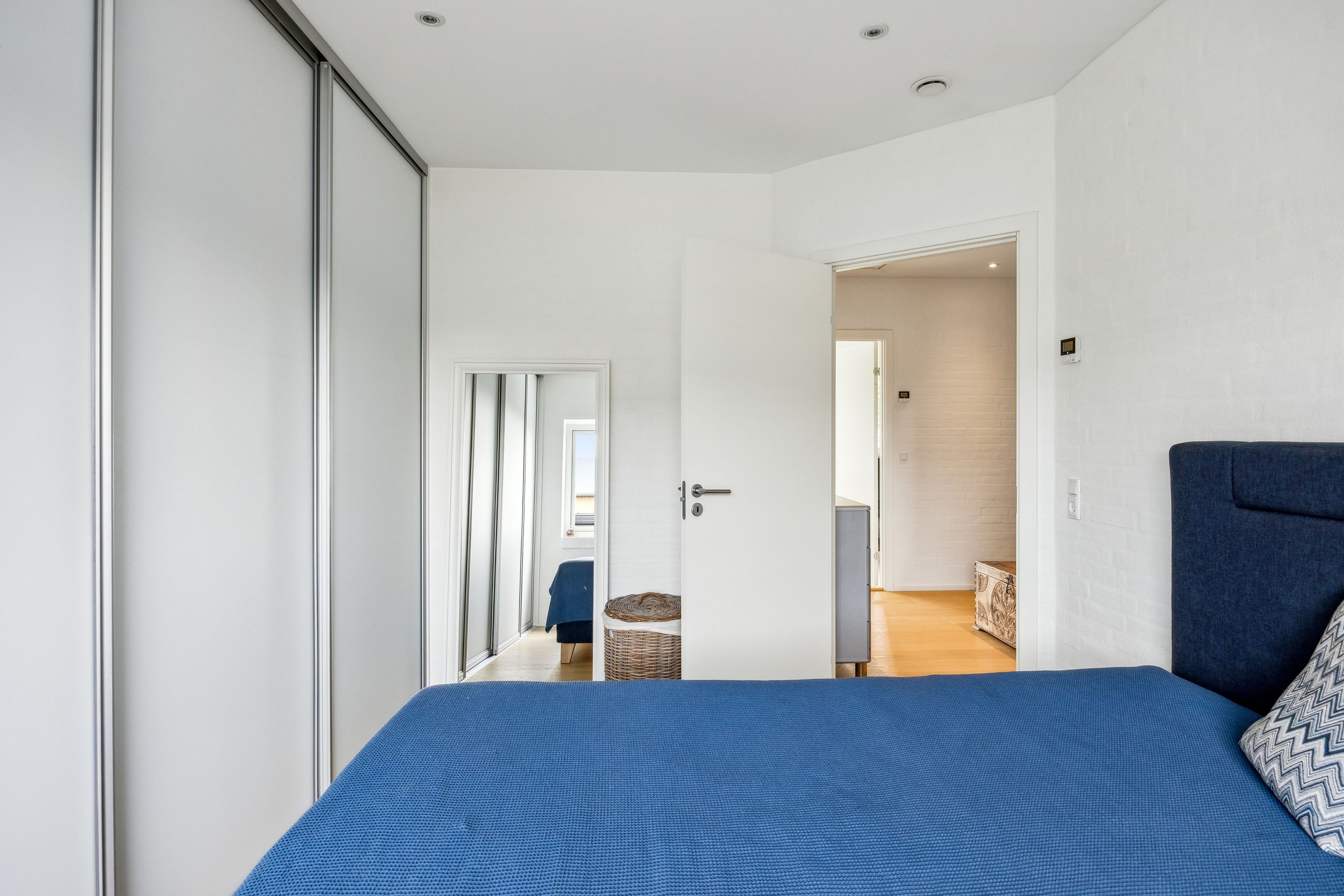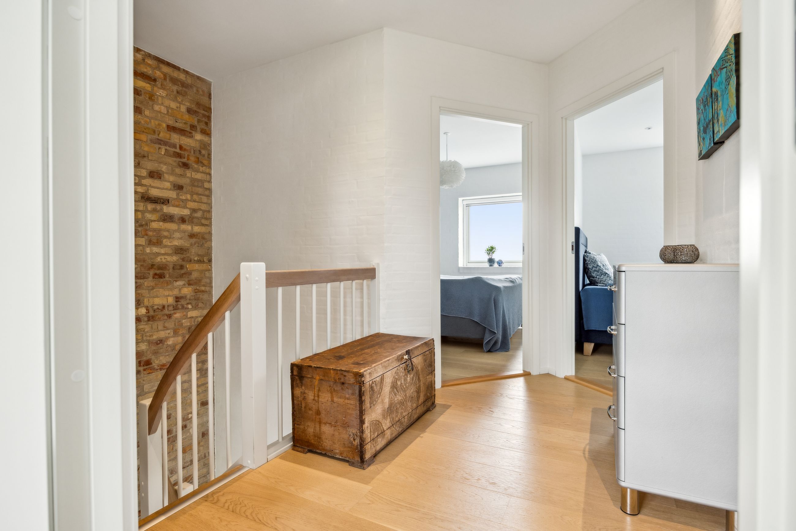 Stuen prydes af en imponerende New Yorker væg, som skaber en stilfuld atmosfære og leder videre til haven gennem en elegant dobbelt terrassedør. Køkkenet er fra Svane og udstyret med alle de moderne bekvemmeligheder, herunder en Quooker med kølerfunktion både med og uden brus samt centralstøvsuger for optimal komfort. Boligen er udstyret med gulvvarme over det hele. Parketgulvene gennem huset sikrer en varm og indbydende stemning.
