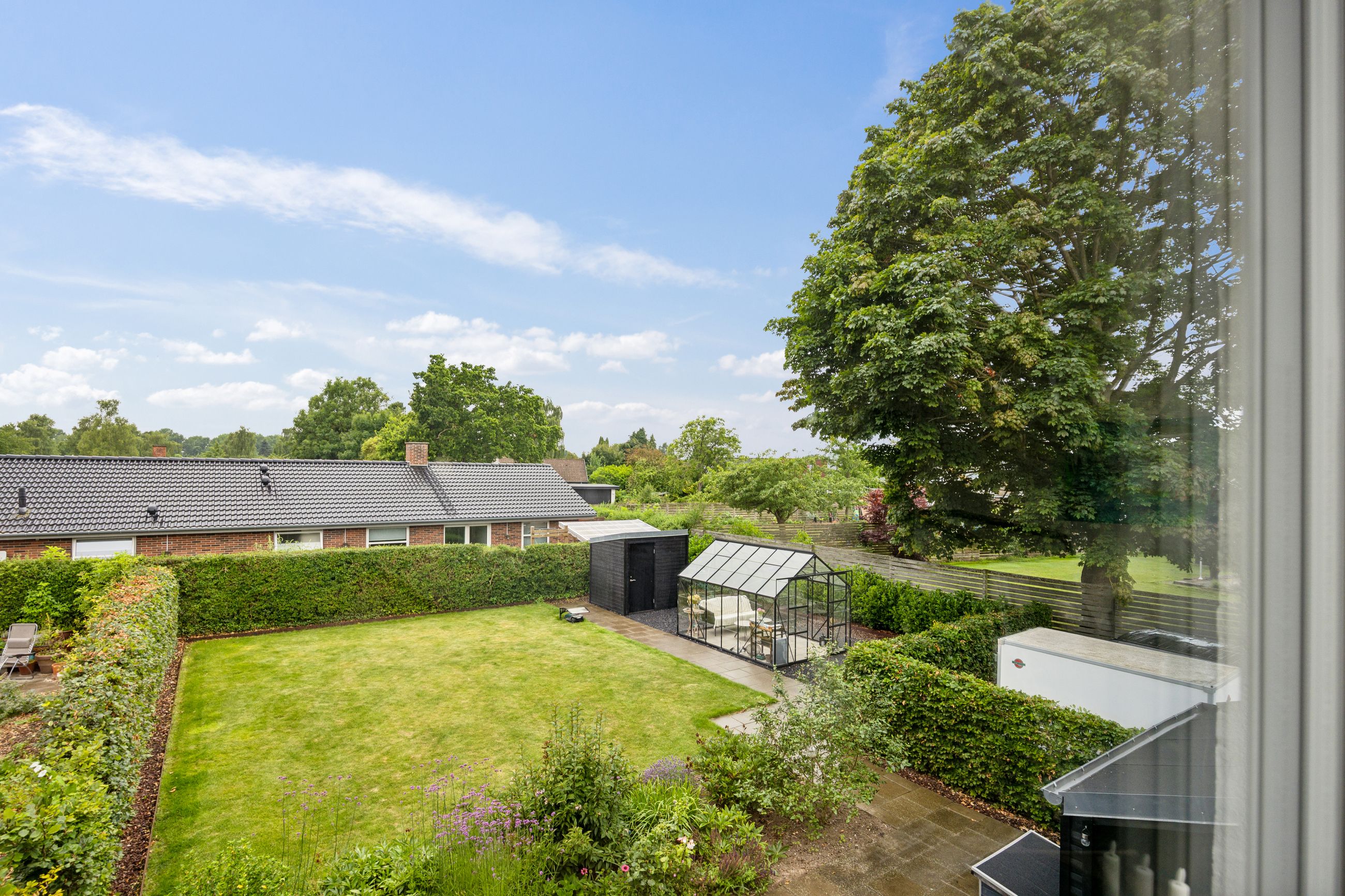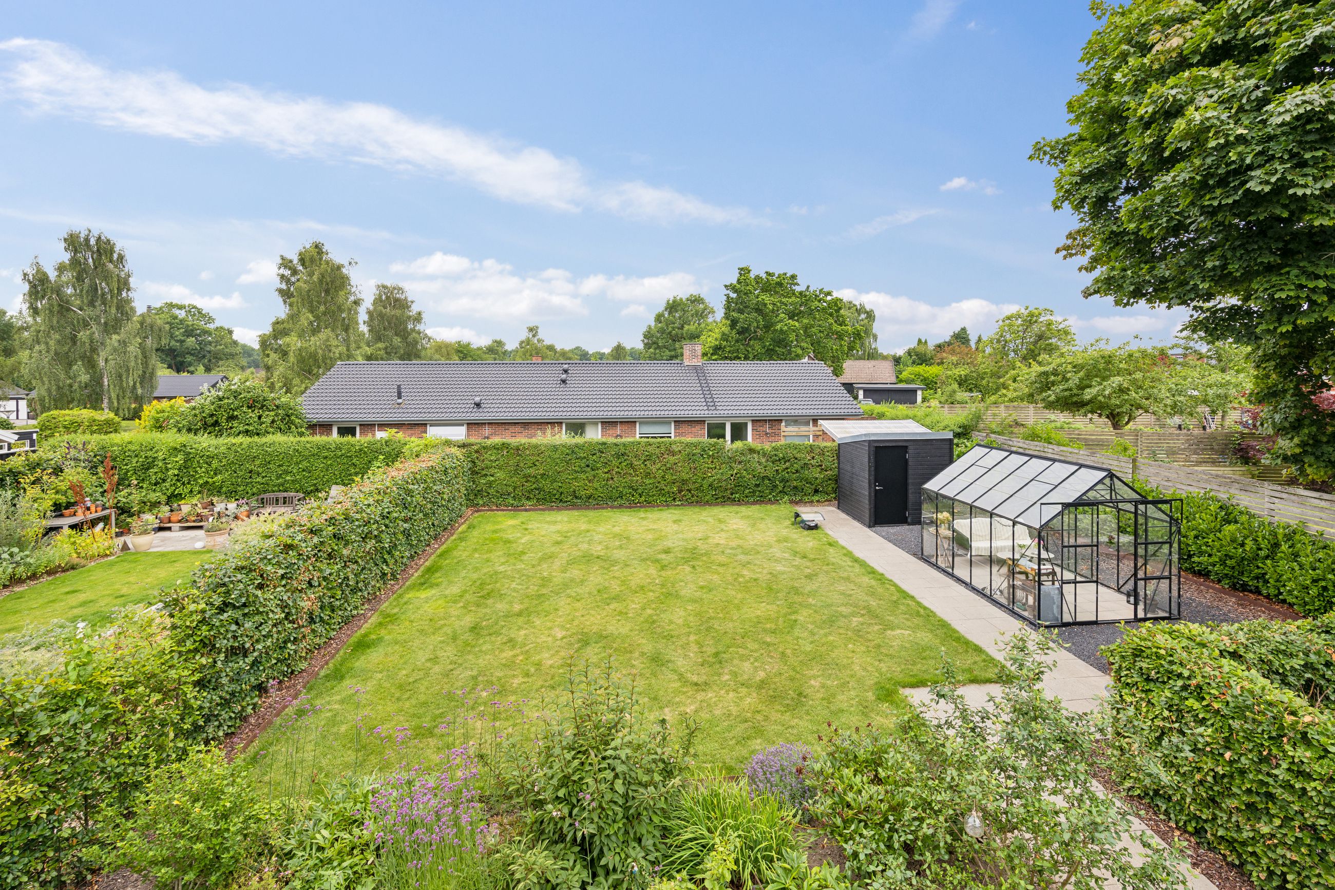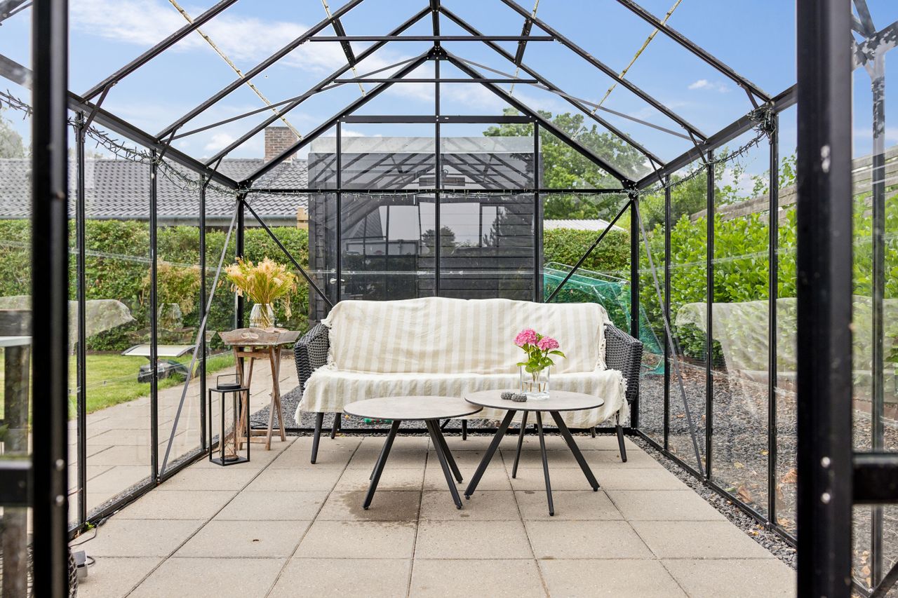 Ejendommen rummer to badeværelser, hvoraf det ene har badekar – perfekt til afslapning efter en lang dag. Udenfor venter den store dejlige have, komplet med drivhus for dem der elsker at dyrke egne grøntsager eller blomster.