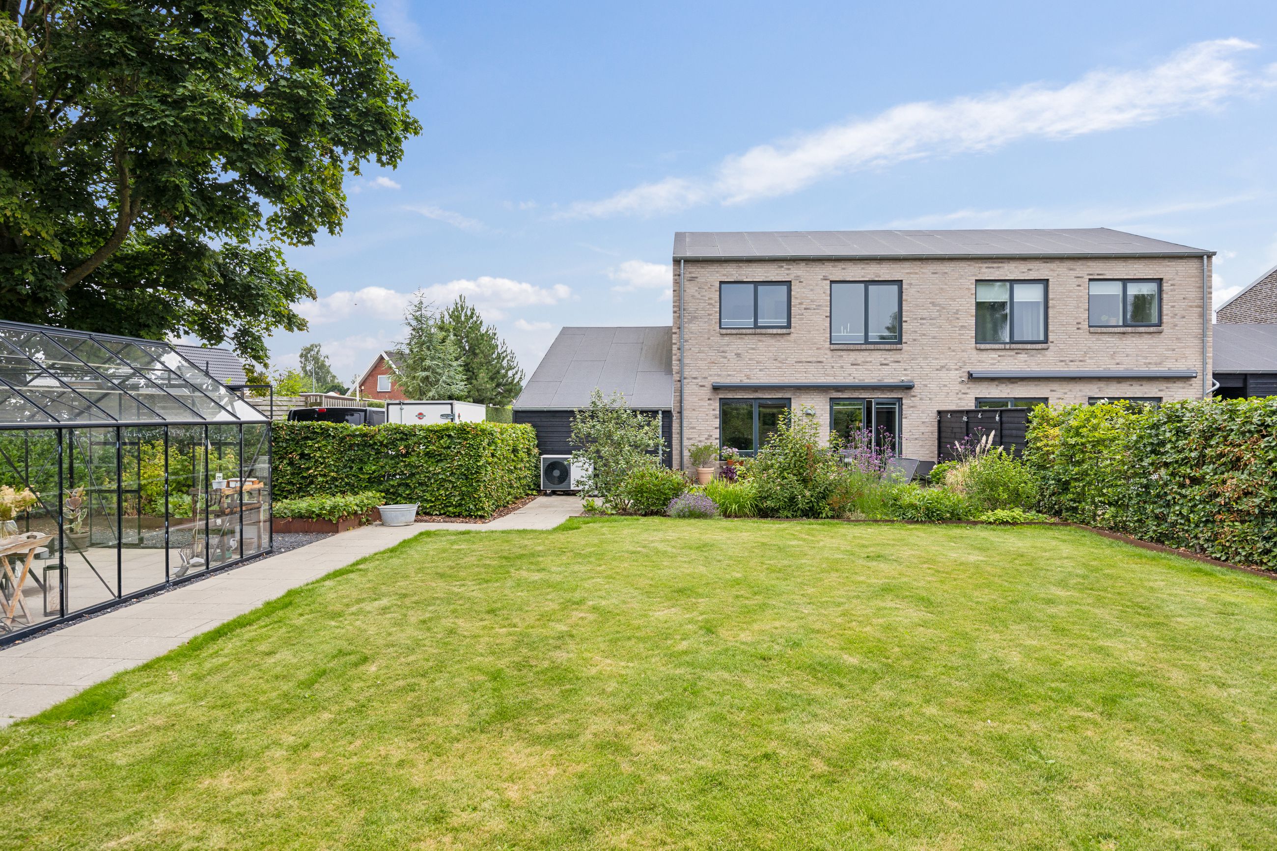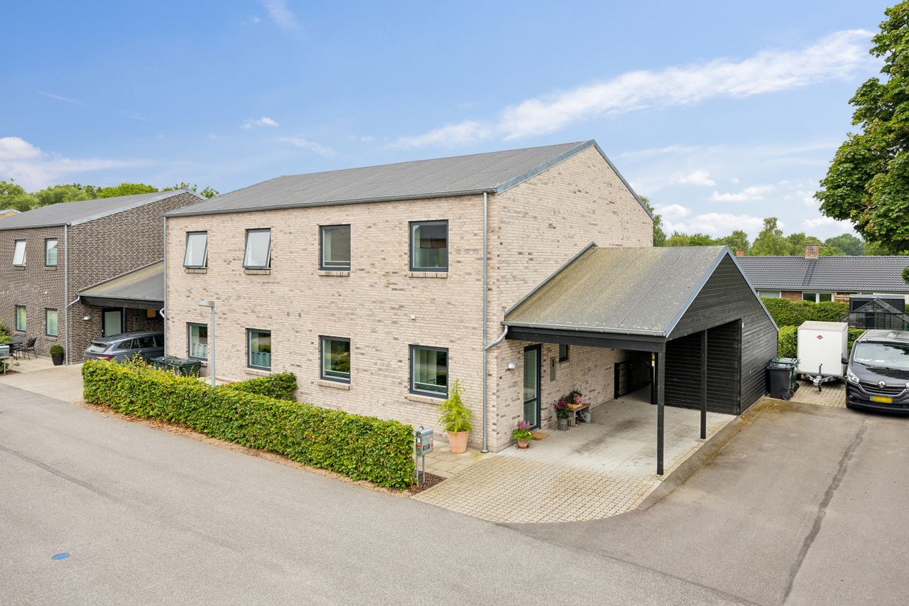 Husets carport har ikke kun plads til bilen men også et stort isoleret skur samt loftsrum for ekstra opbevaring. Carporten er desuden forberedt til el-bil opladning – ideelt for den miljøbevidste familie.