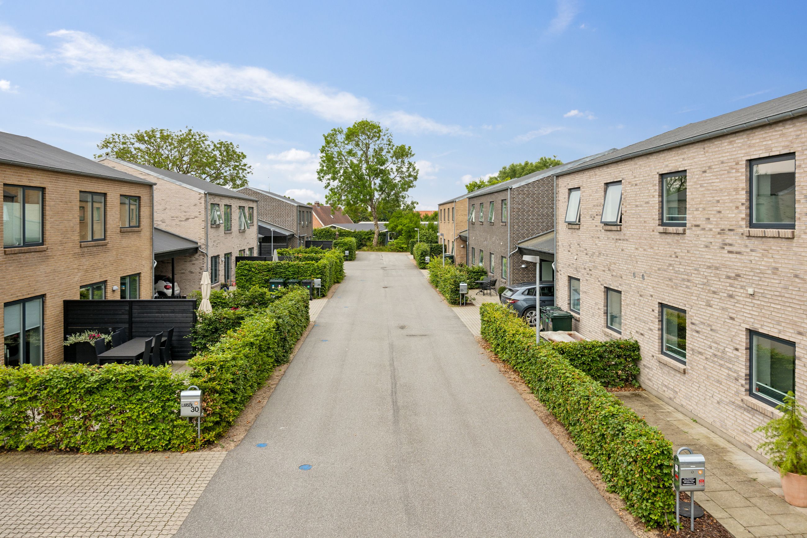 Velkommen til dette enestående enderækkehus, der kombinerer moderne design med praktiske løsninger. Ejendommen er opført i 2019 og byder på et boligareal på hele 134 kvadratmeter fordelt over to fulde etager. Huset er bygget i flotte, elegante mursten, der giver det et tidløst udtryk. Med ekstra loftshøjde på 260 cm opleves rummene både lyse og luftige.