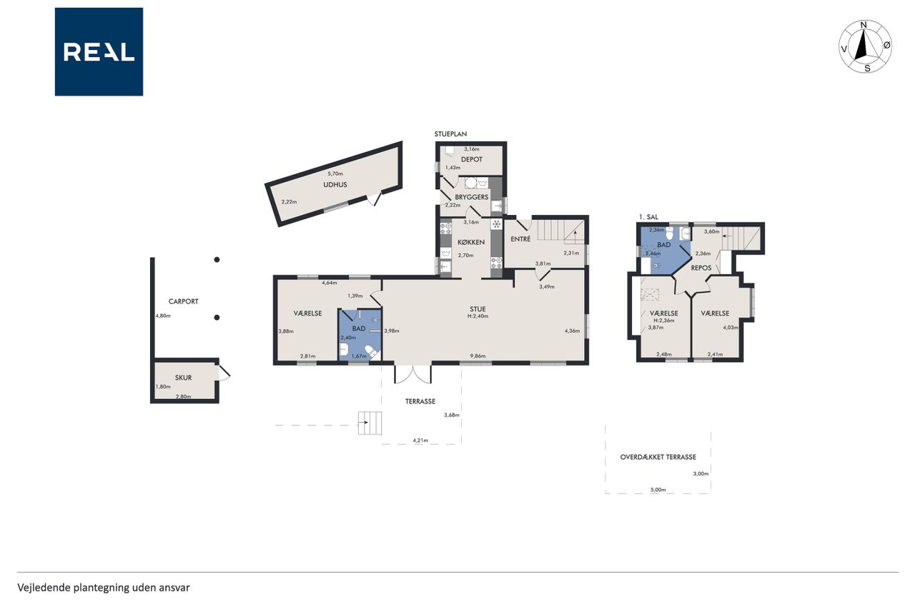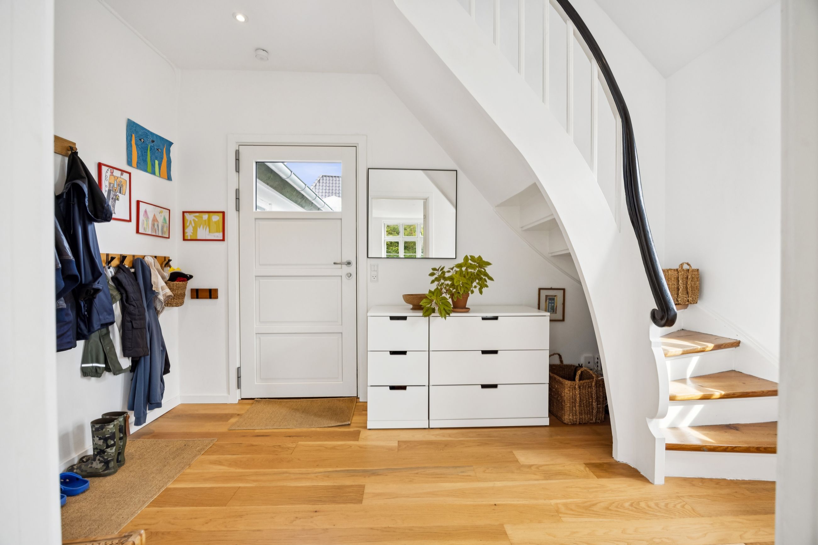 På første sal venter to rummelige værelser samt en repos og endnu et badeværelse. Dette område er ideelt til børn eller gæster, der ønsker deres egen private oase. Hele huset fremstår indflytningsklart men giver samtidig mulighed for at sætte dit helt eget præg.