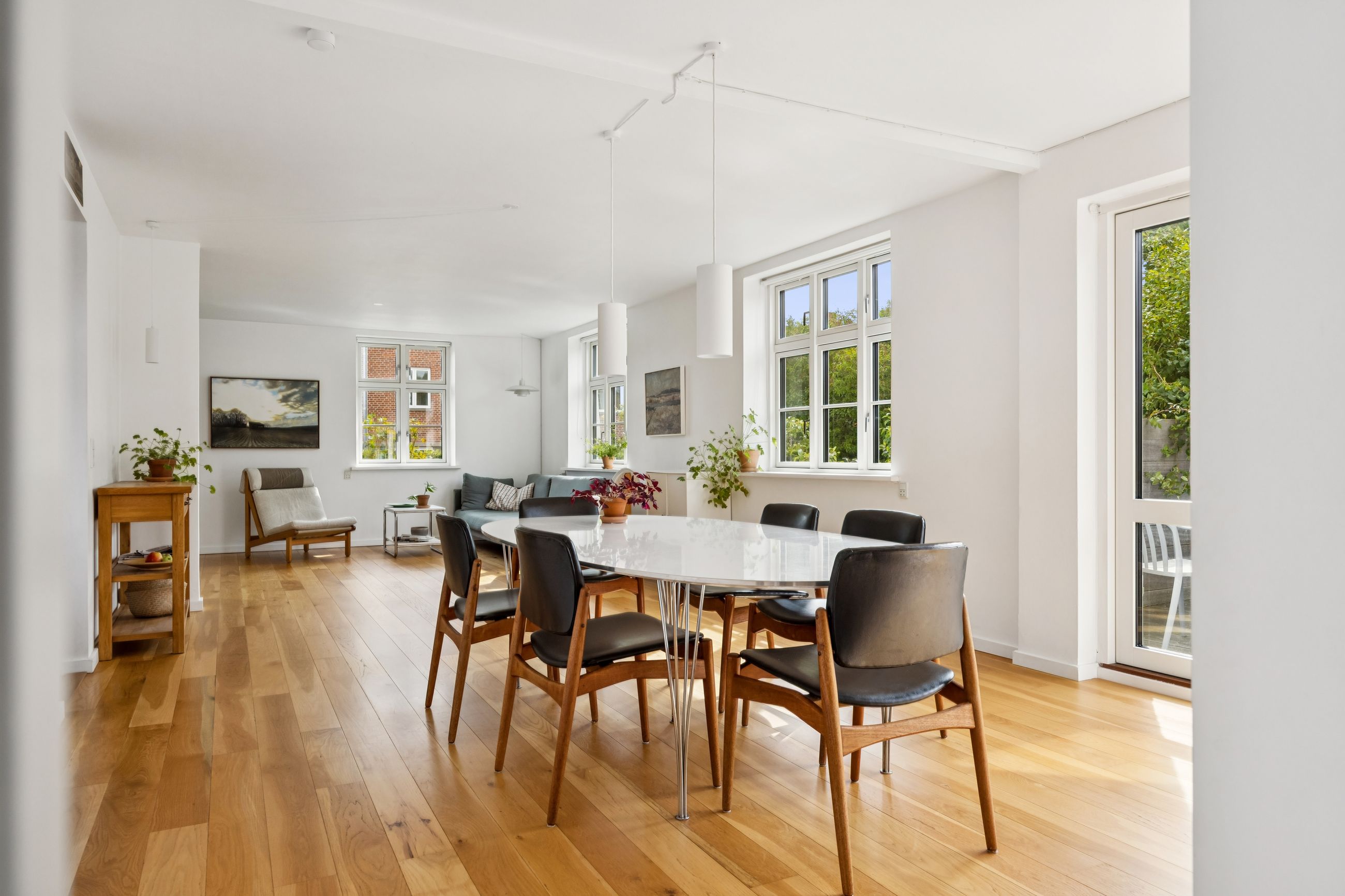 Udenfor finder du en charmerende lukket have – perfekt for dem med grønne fingre eller som legeparadis for børnene. Haven rummer endda plads til eget hønsehold! Med kort gåafstand til Køge Torv, stranden, åsen og havnemiljøet får du her den perfekte kombination af natur og byliv lige udenfor døren.