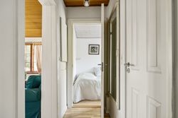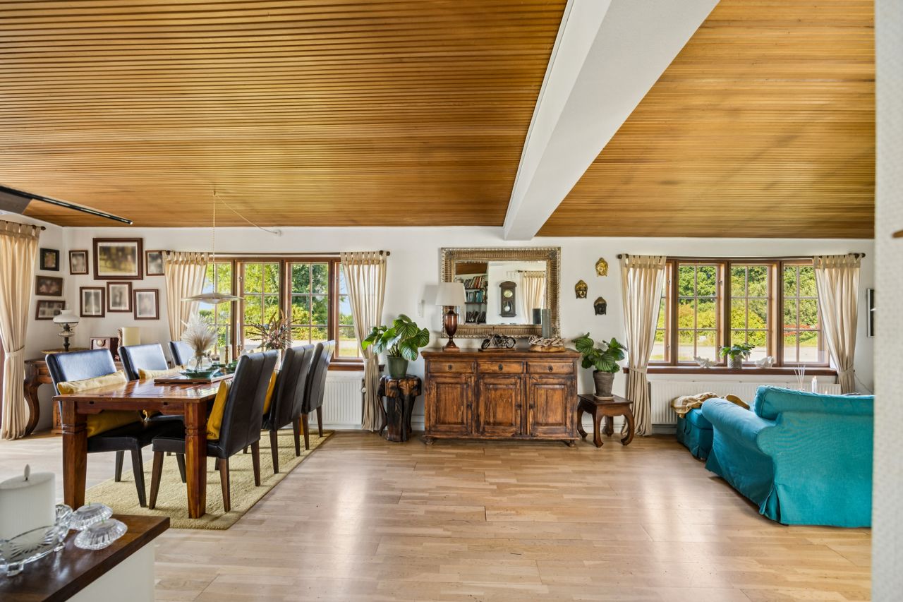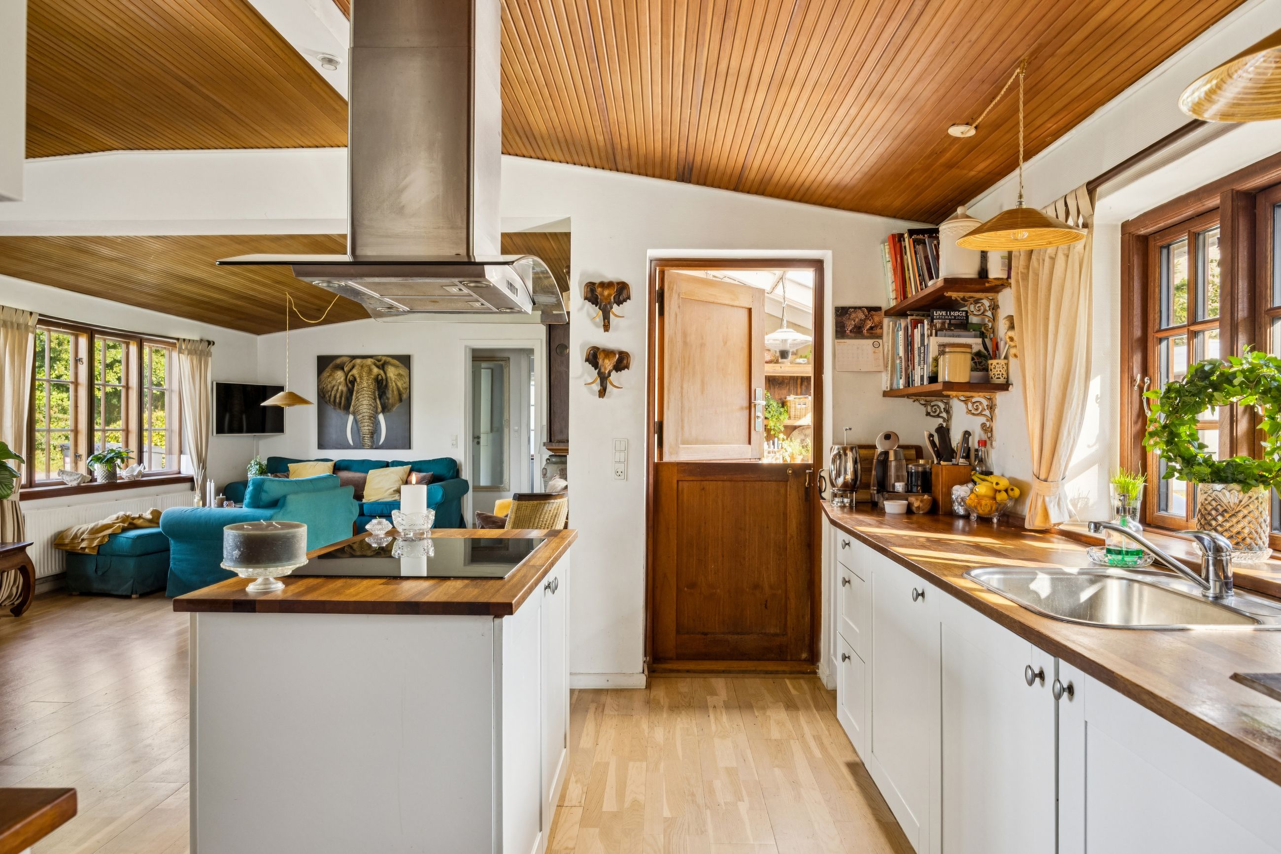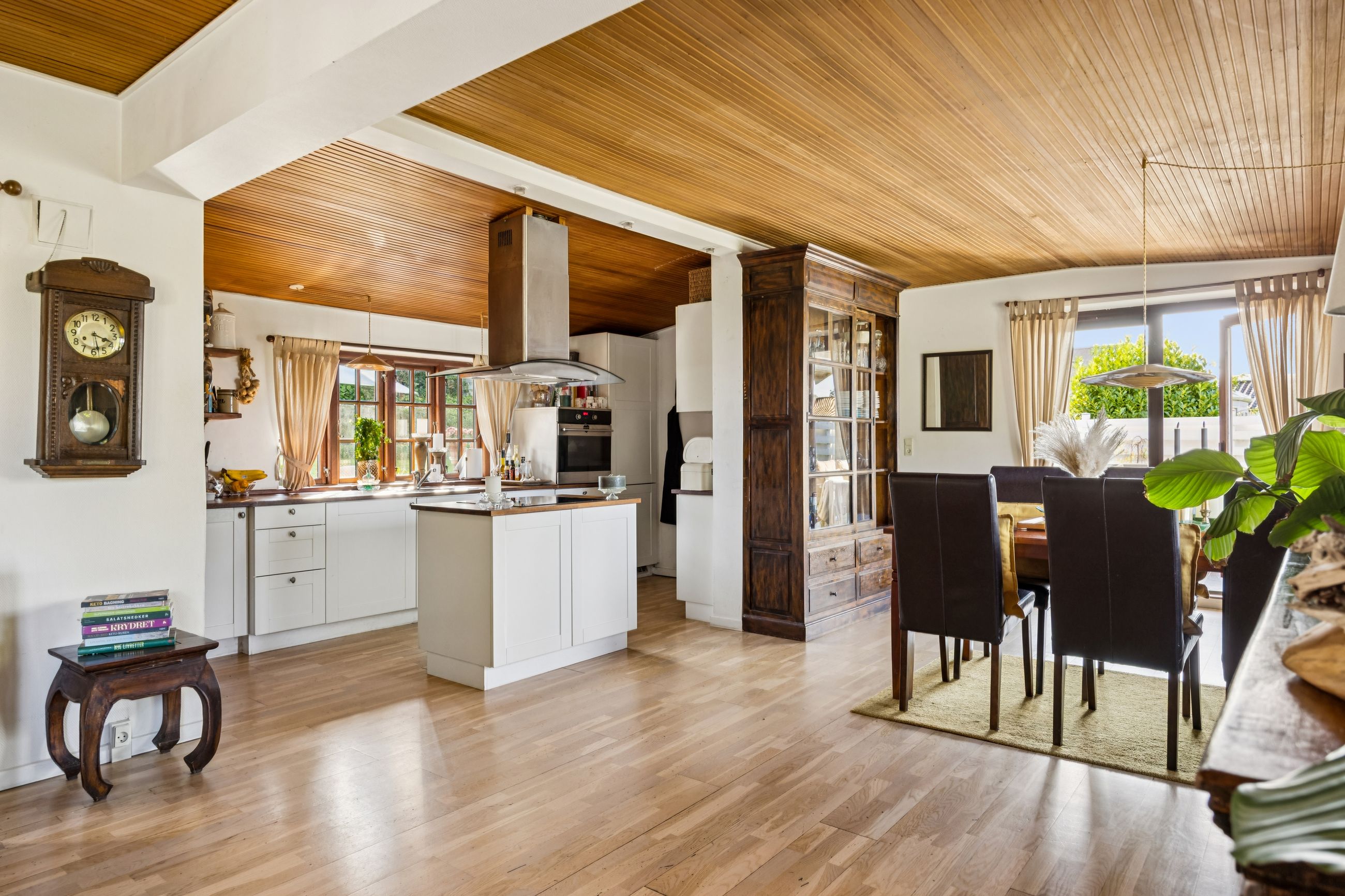 Indenfor finder du et stort åbent køkken-alrum med loft til kip, der skaber en lys og rummelig atmosfære. Fra alrummet har du også direkte udsigt til vandet, hvilket gør det til et perfekt sted at samles med familie og venner. Boligen rummer tre gode soveværelser samt et moderne brusebadeværelse, alt sammen indrettet med stilfulde gulve og trælofter, der giver en varm og indbydende stemning.