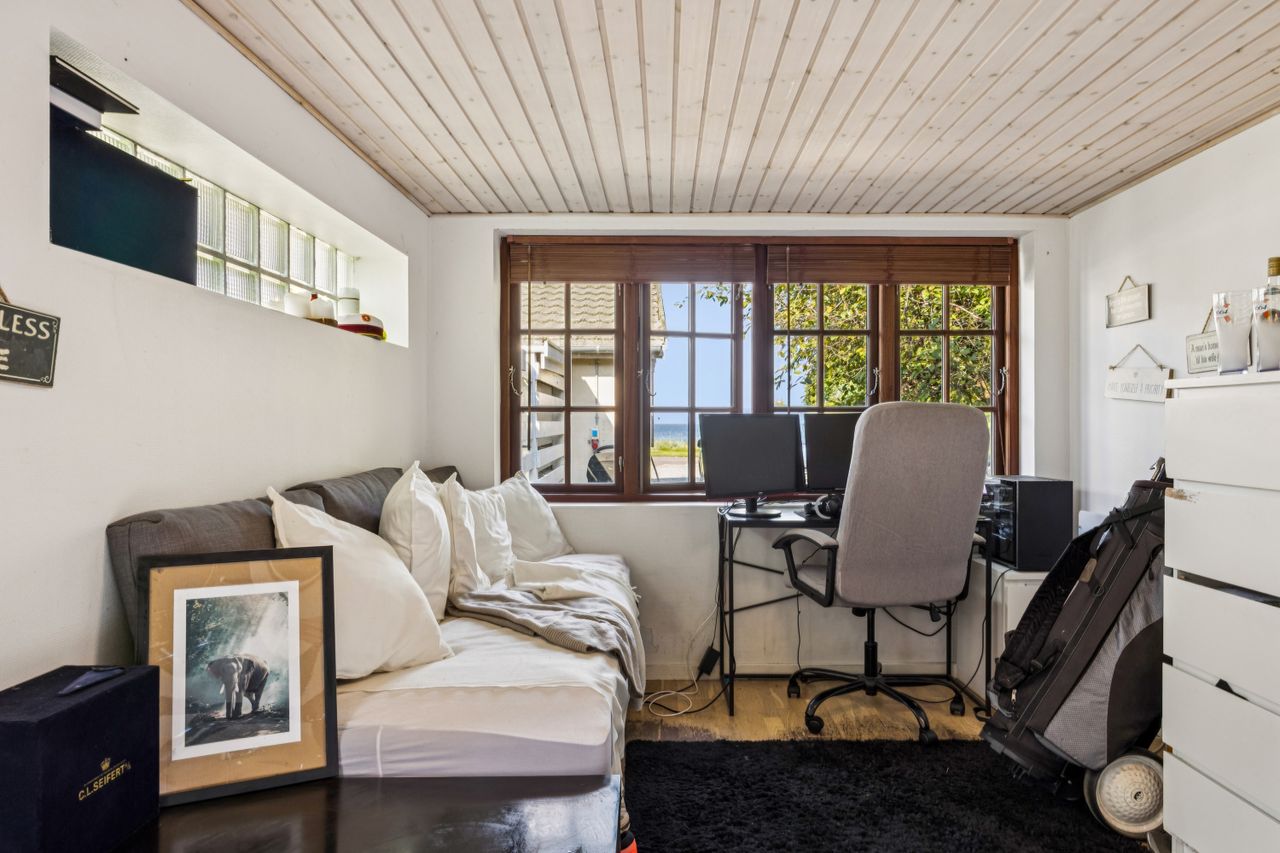 Velkommen til denne enestående fritidsbolig, der byder på et boligareal på 89 kvm, opført i filset mursten med bredsiden mod det glitrende vand. Ejendommen er beliggende på en imponerende 2157 kvm stor privat strandgrund, hvor du kan nyde den mest fantastiske udsigt over vandet fra flere terrasser under huset. Her får du muligheden for at leve tæt på naturen og nyde de smukke omgivelser året rundt.