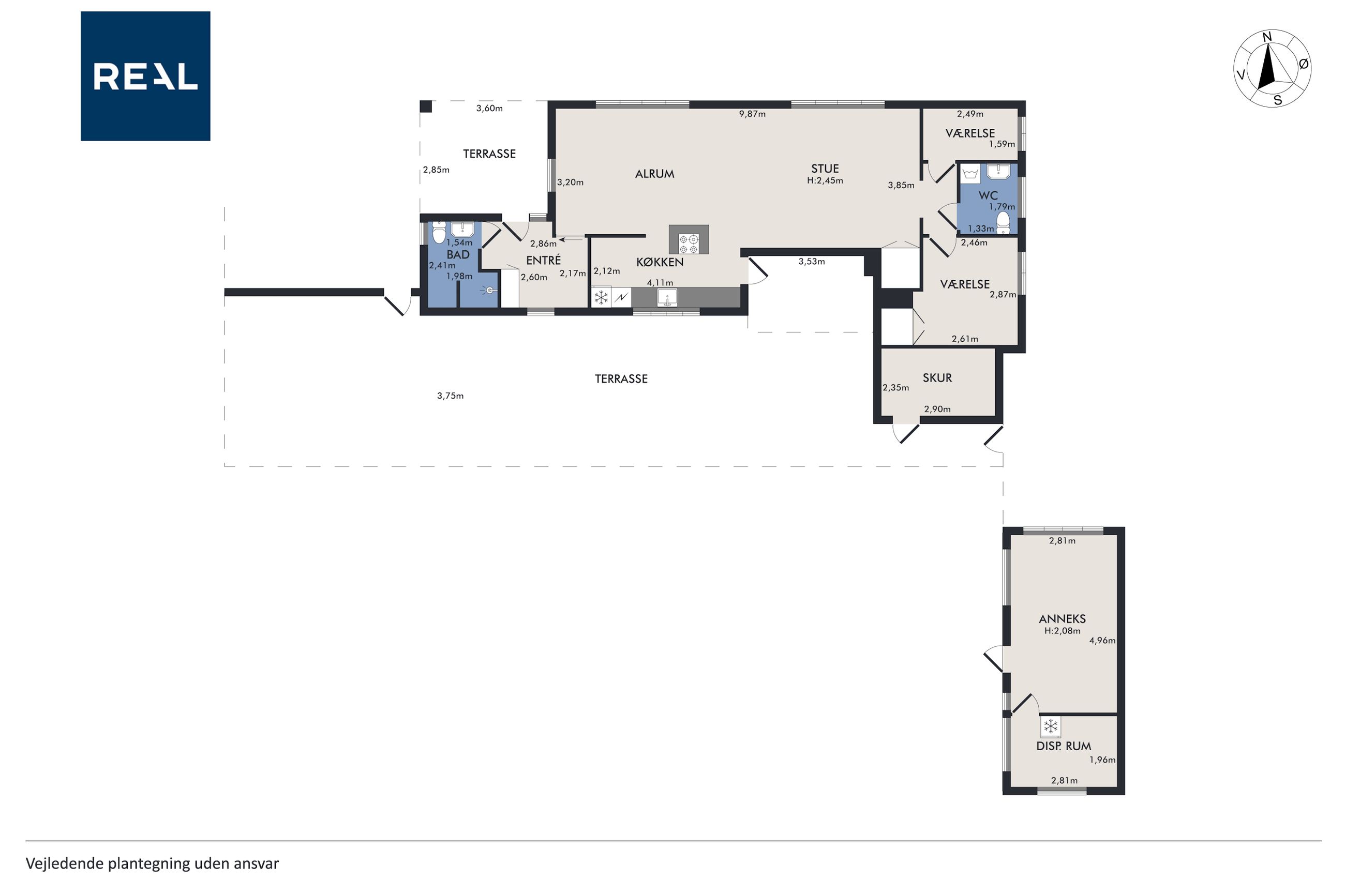 Den store private strandgrund tilbyder uanede muligheder for udendørsaktiviteter som solbadning, eller måske endda en dukkert i bølgerne. Desuden kan du udforske den charmerende ugernerte baghave med sin store fliseterrasse med plads til familiehygge, grillning eller bare afslapning med en god bog. Derudover er ligeledes adgang til et isoleret anneks – ideelt som gæstehus eller atelier.