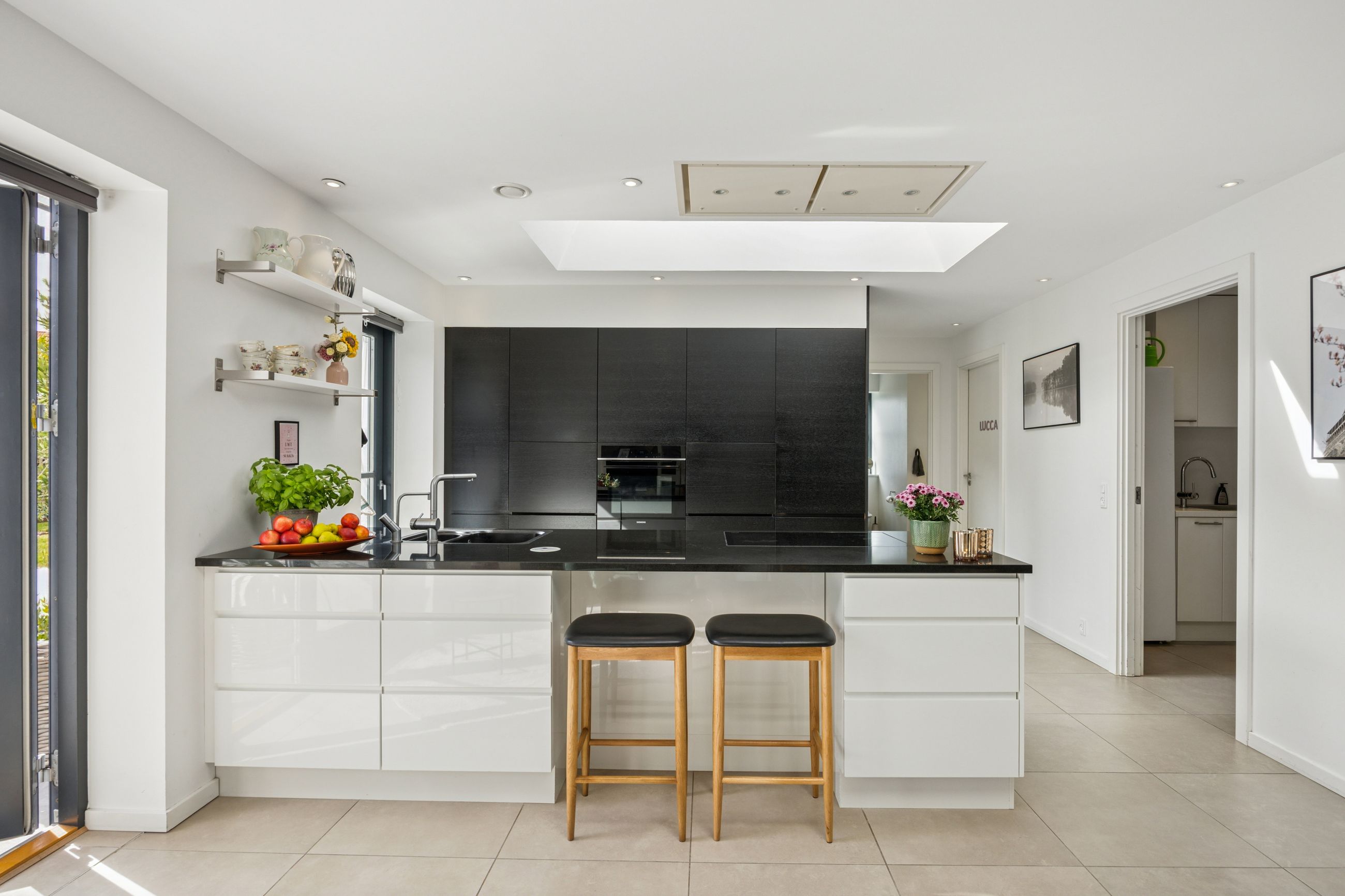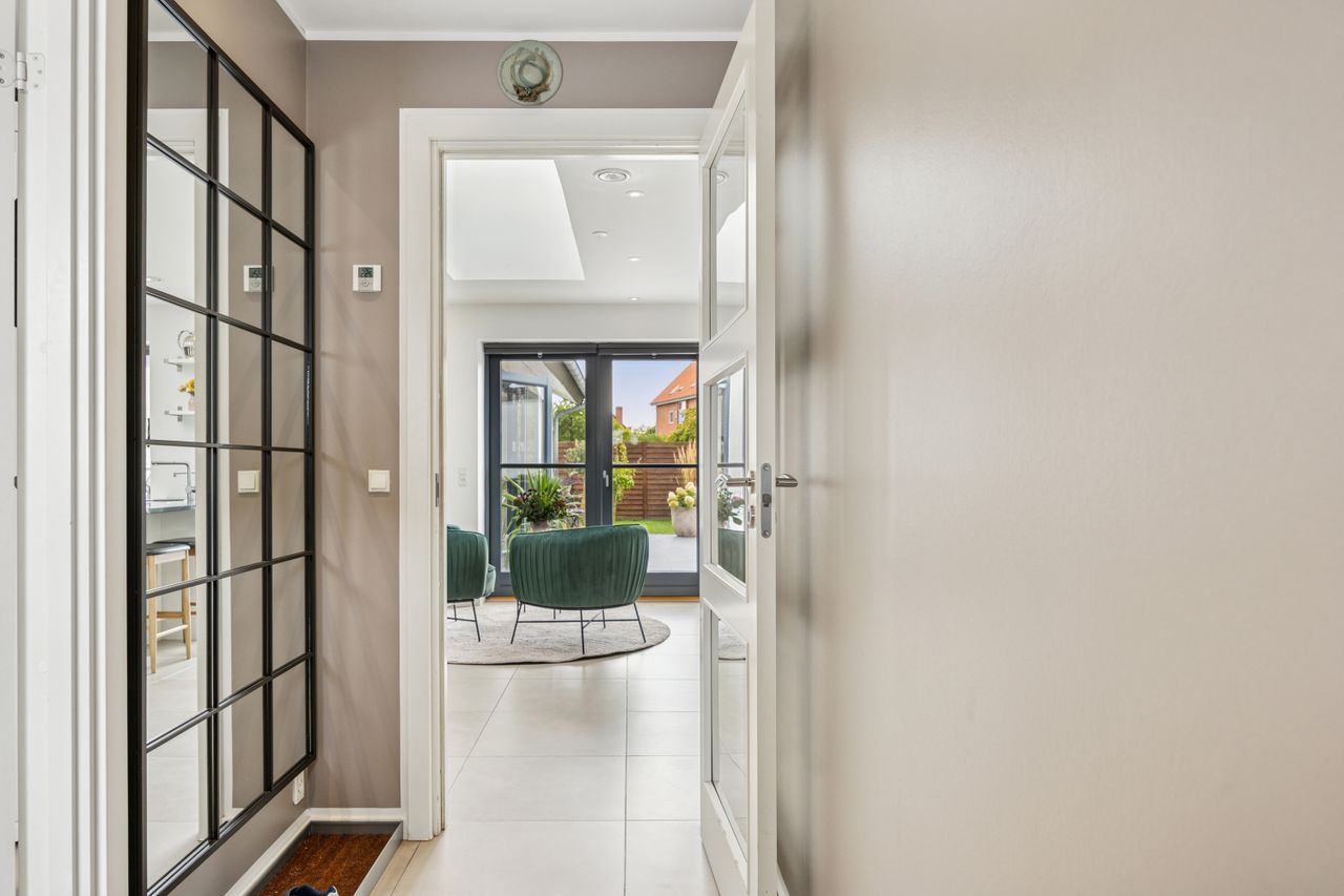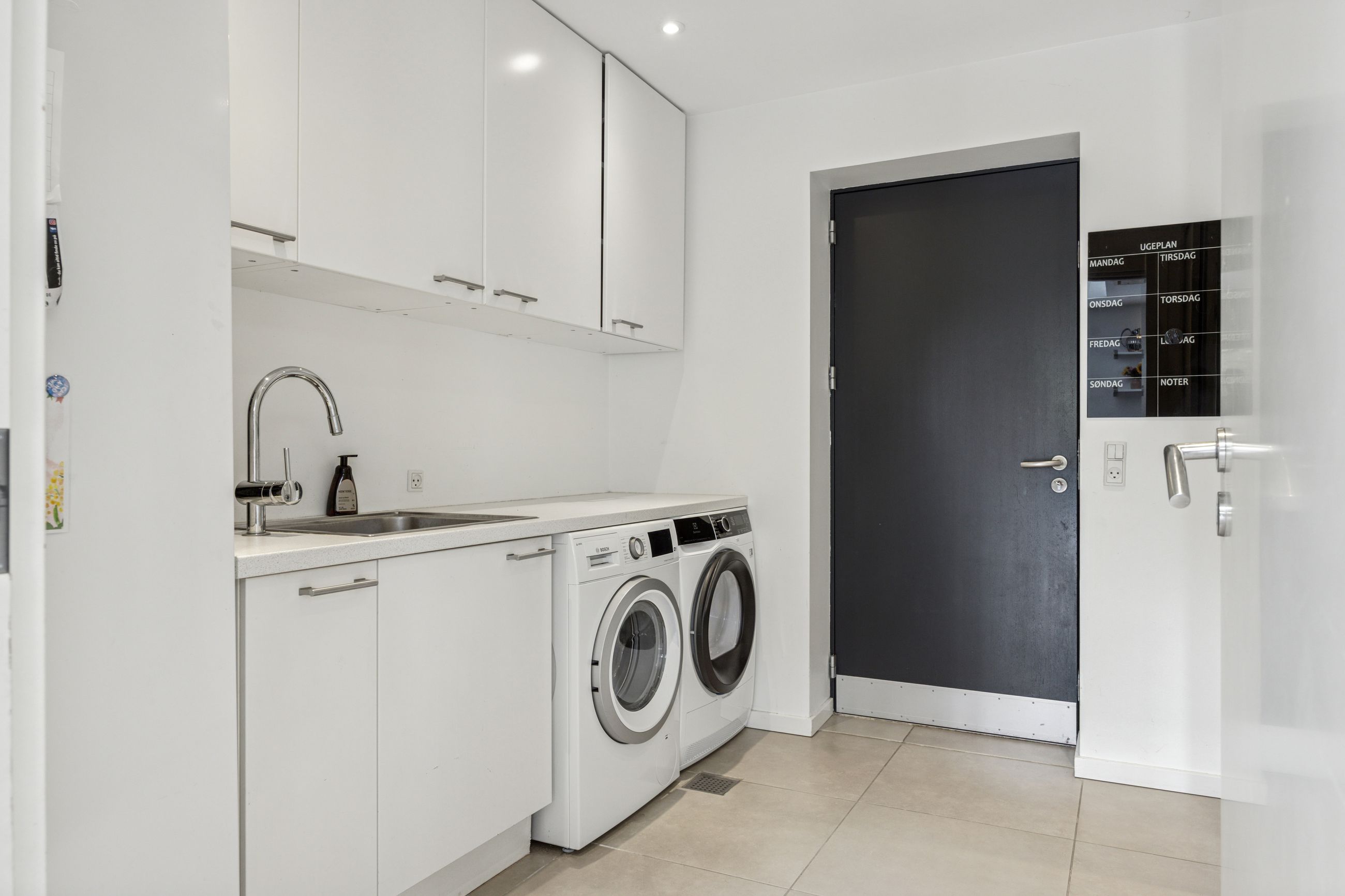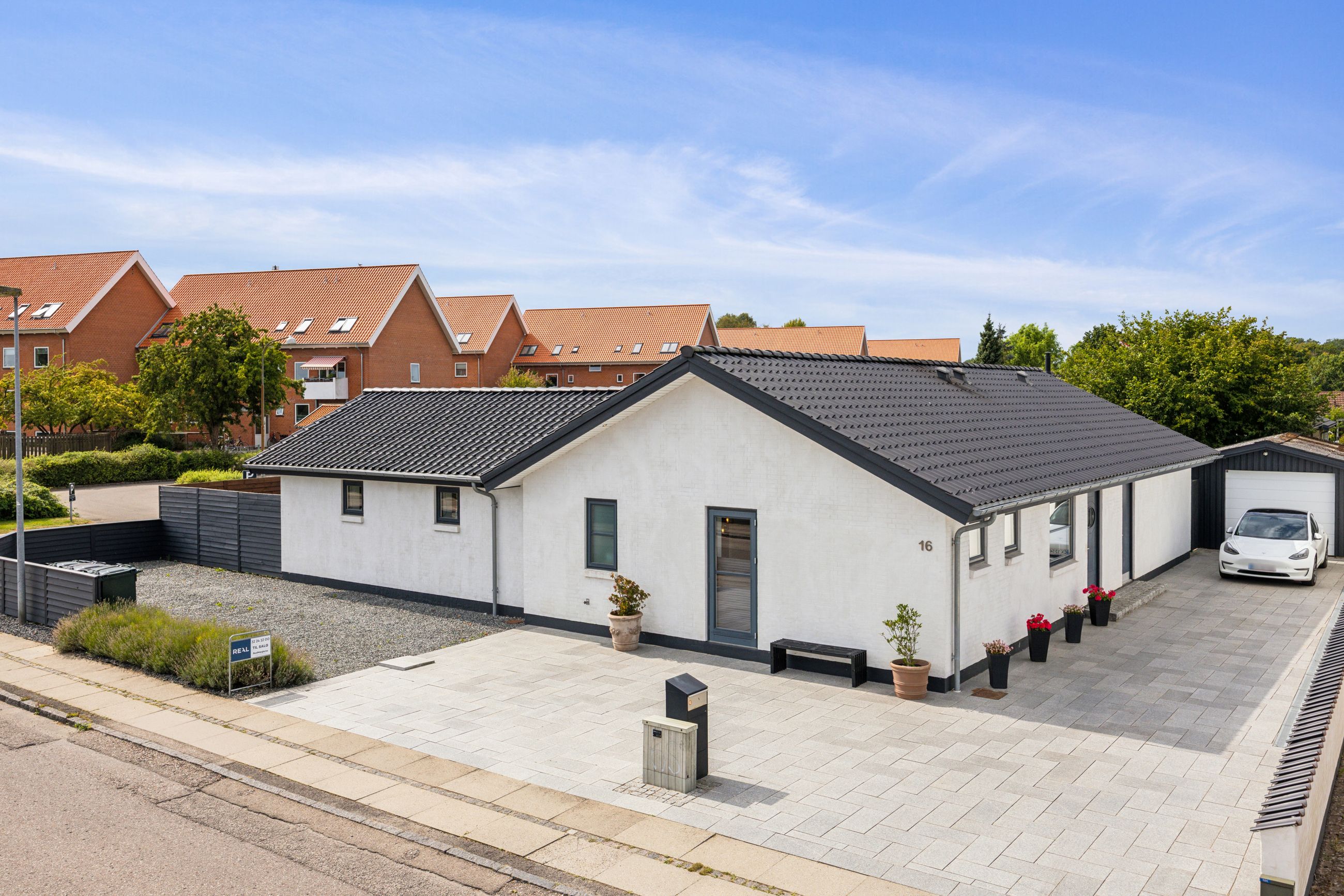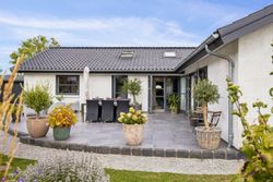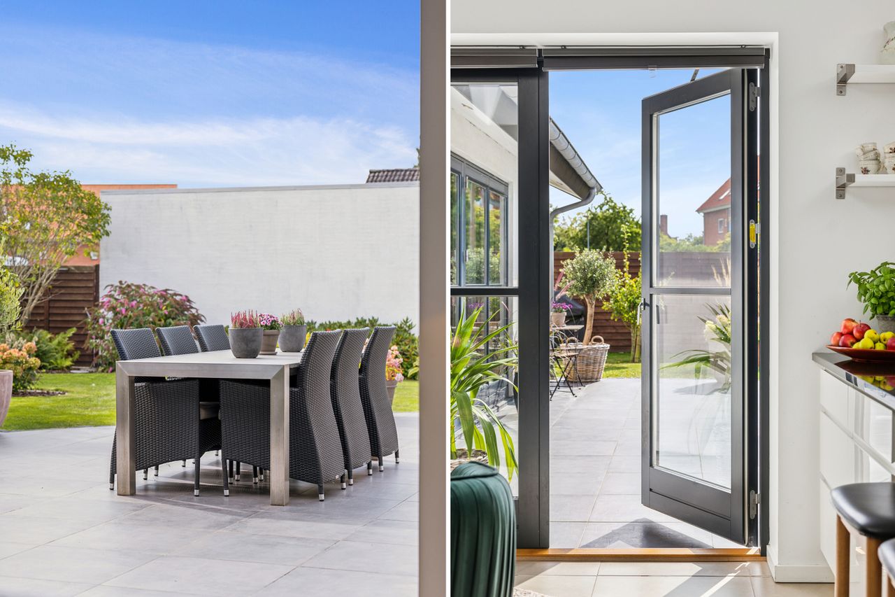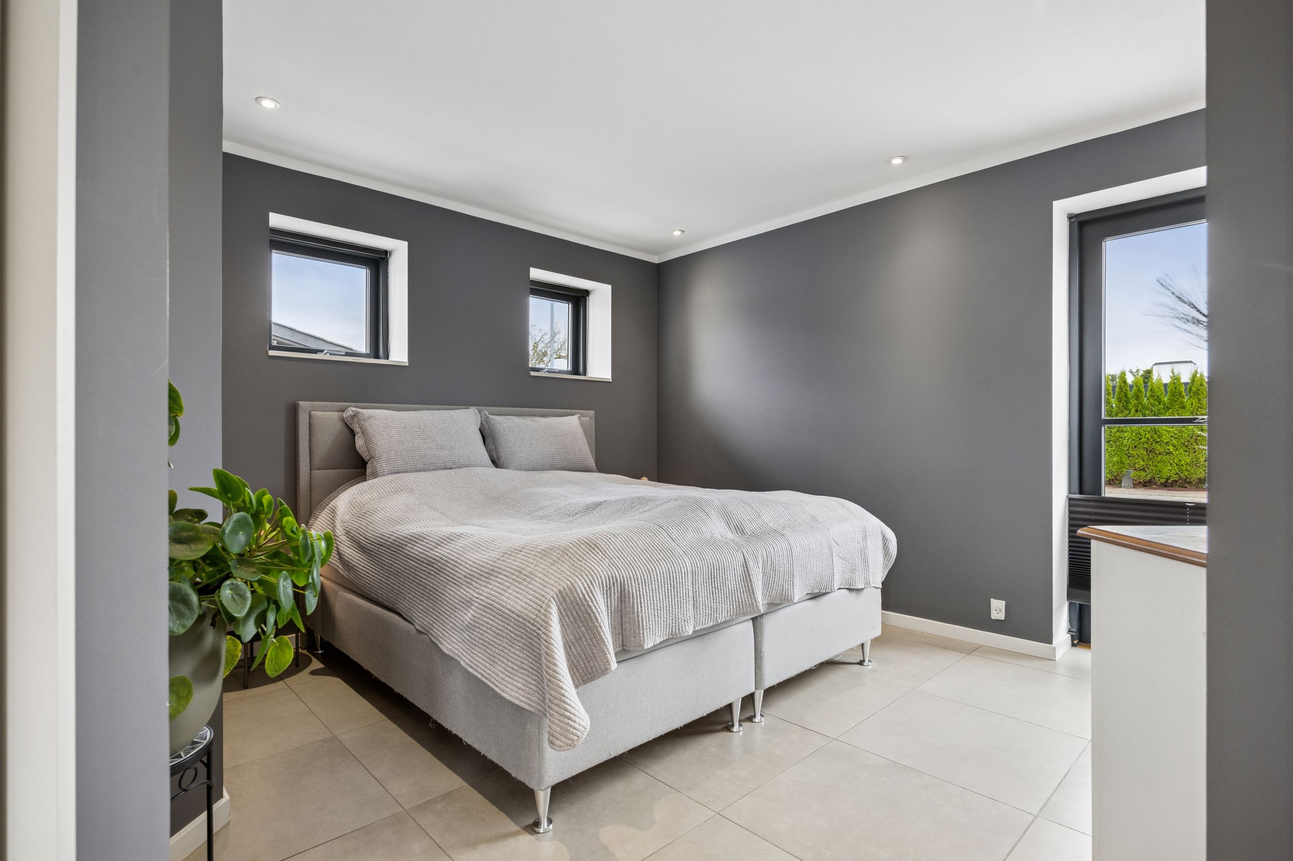Indenfor byder villaen på en fantastisk indretning med et stort køkken-alrum udstyret med et stilfuldt køkken fra INVITA. Herfra er der direkte adgang til en skøn sydlandsk terrasse, som inviterer til hyggelige stunder under åben himmel. Stuen imponerer med loft til kip og ovenlys, hvilket giver rummet et enormt lyst og luftigt udtryk. Fra stuen er der ligeledes adgang til terrassen, hvor man kan nyde de solrige dage.