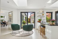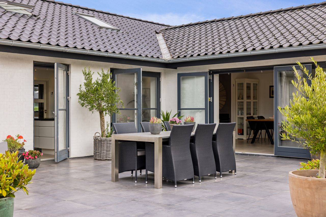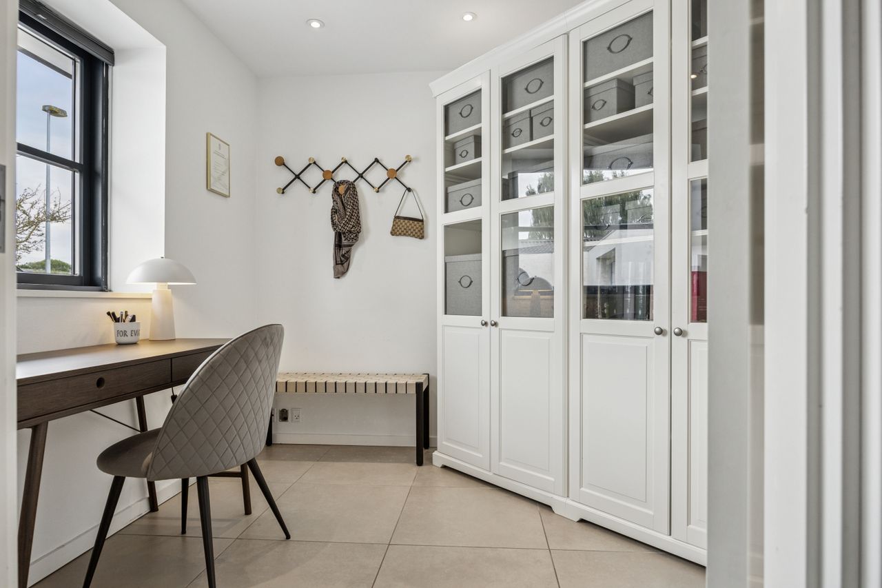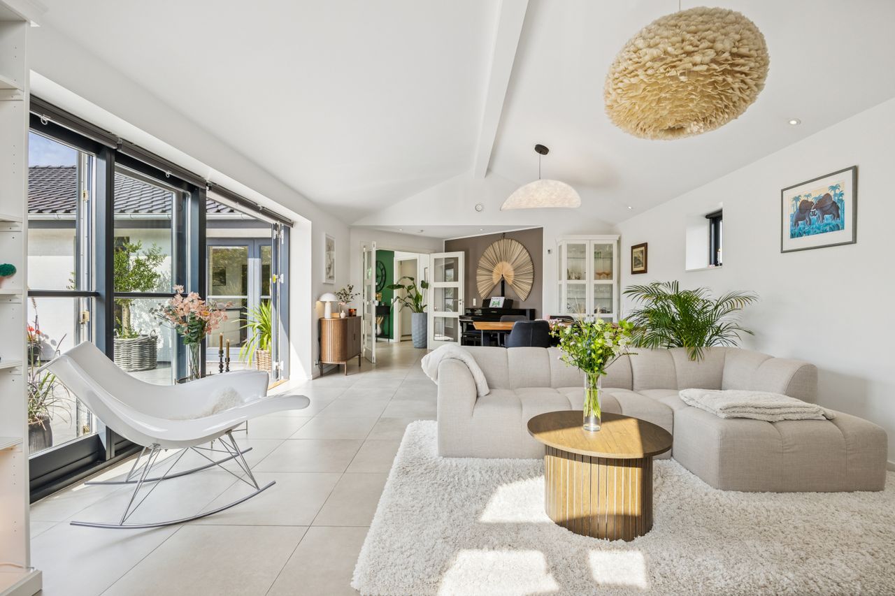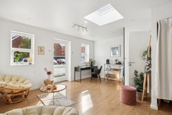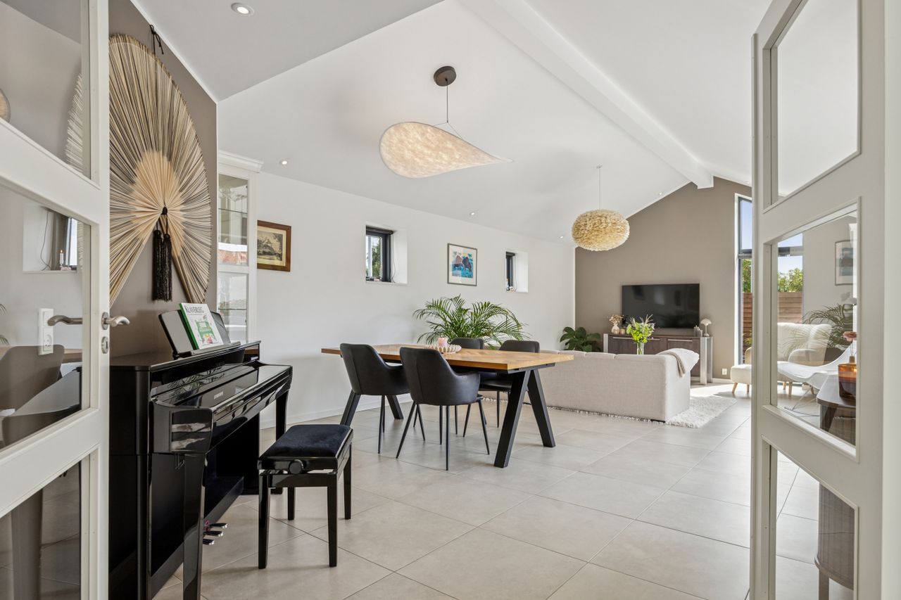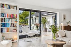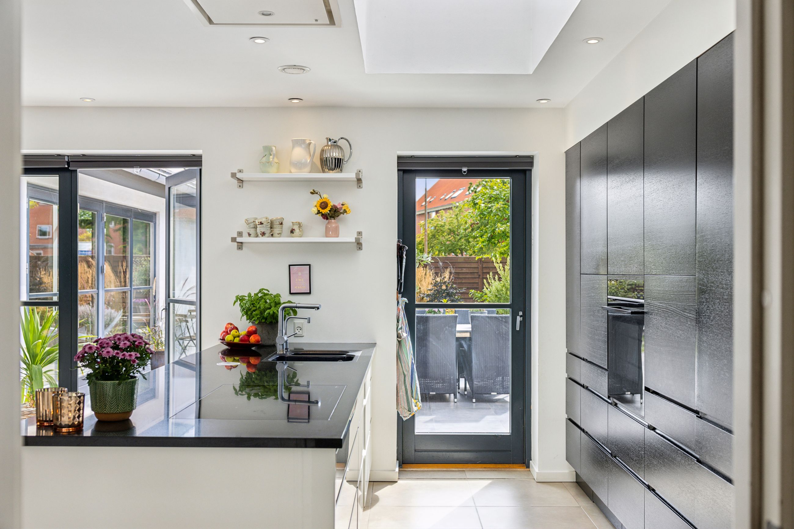Indenfor byder villaen på en fantastisk indretning med et stort køkken-alrum udstyret med et stilfuldt køkken fra INVITA. Herfra er der direkte adgang til en skøn sydlandsk terrasse, som inviterer til hyggelige stunder under åben himmel. Stuen imponerer med loft til kip og ovenlys, hvilket giver rummet et enormt lyst og luftigt udtryk. Fra stuen er der ligeledes adgang til terrassen, hvor man kan nyde de solrige dage.