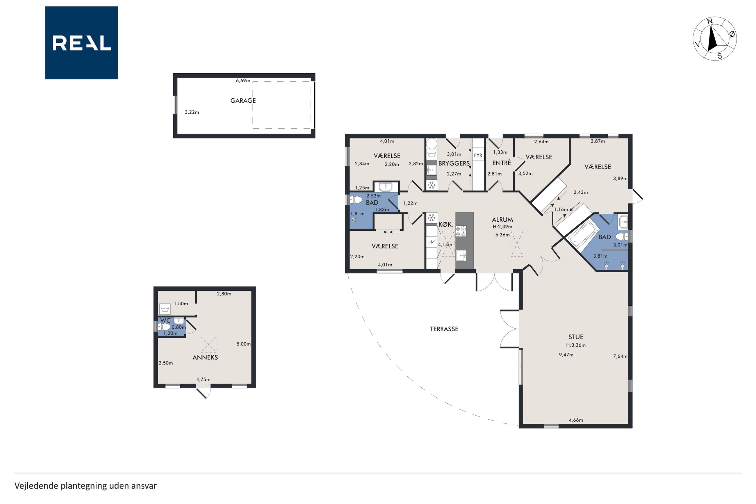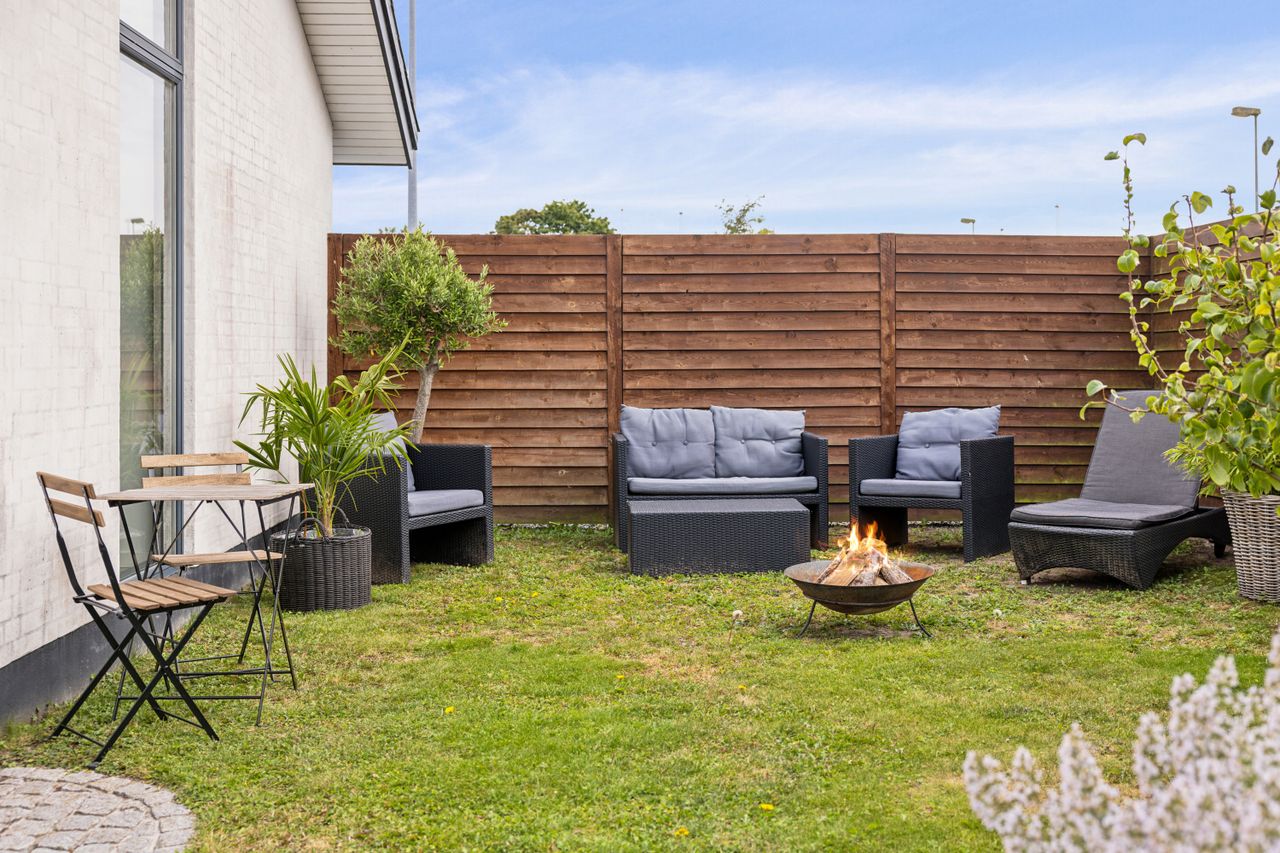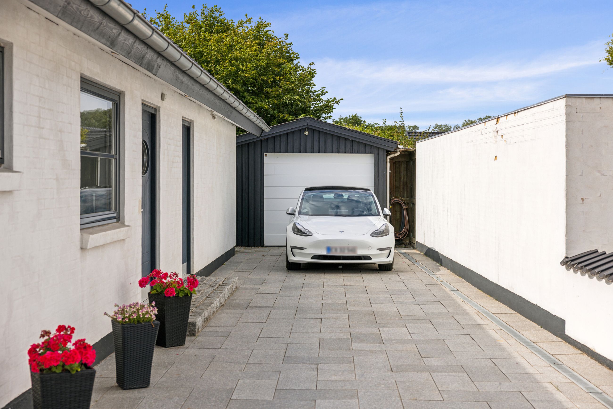 Haven omkring huset er intet mindre end imponerende; den fremstår flot anlagt med sydlandske elementer, der giver en følelse af ferie året rundt. Derudover findes der et stort anneks på grunden, som kan anvendes enten som gæstehus eller andet – desuden med egen indgang.