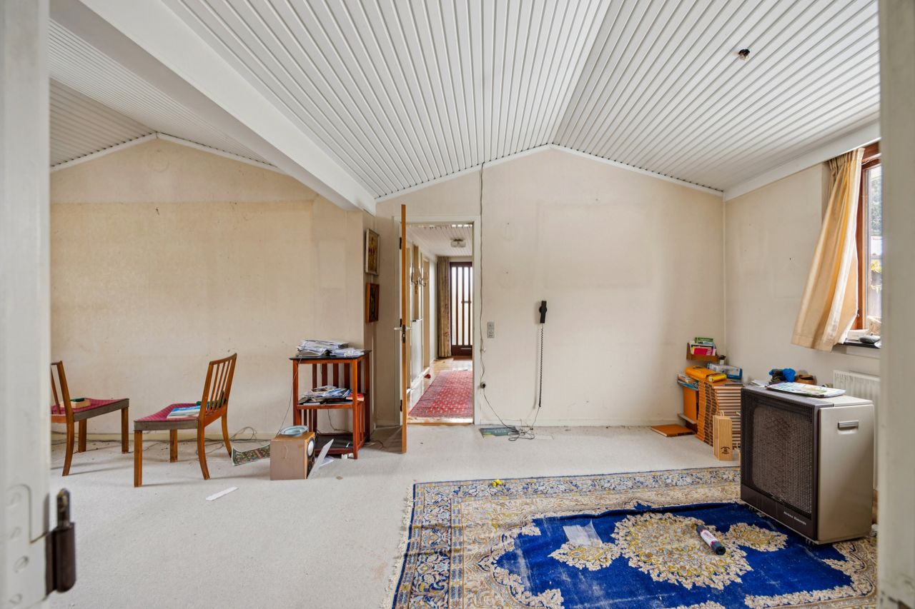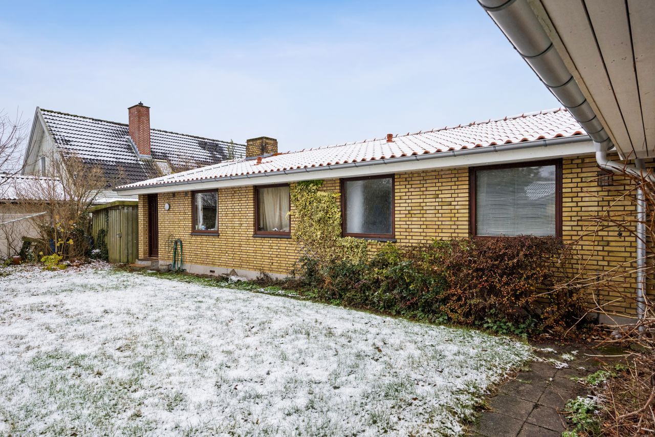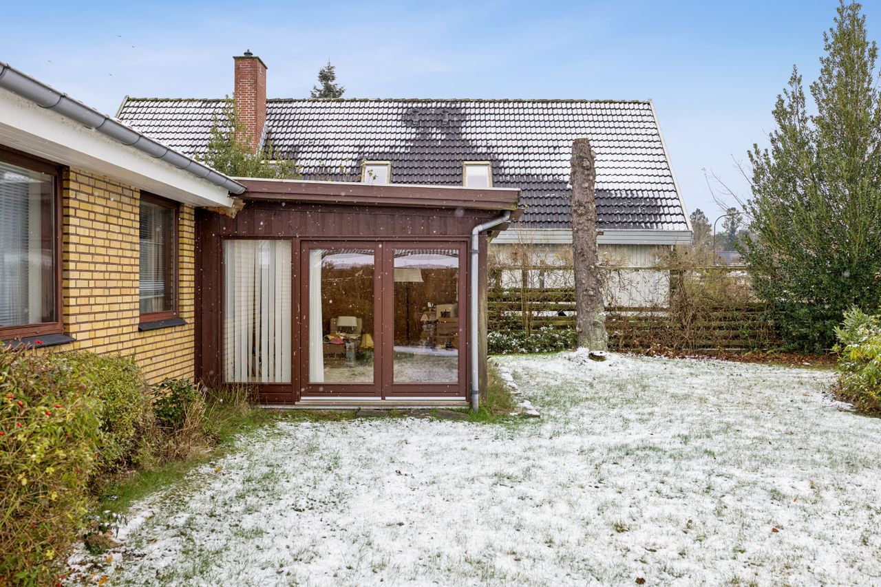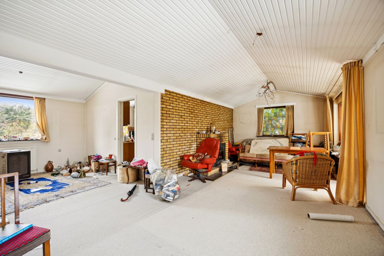 Indenfor finder du tre gode værelser, der alle er lyse og rummelige, samt et badeværelser, som sikrer komfort for hele familien. Den store vinkelstue er hjemmets hjerte med adgang til en hyggelig udestue, hvor du kan nyde udsigten over haven året rundt. Det funktionelle køkken ligger i forbindelse med et stort bryggers, hvilket gør dagligdagen nemmere og mere praktisk. Her er mulighed for at åbne op til køkken alrum.
