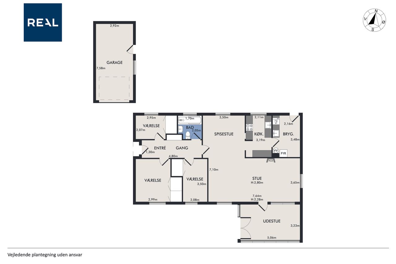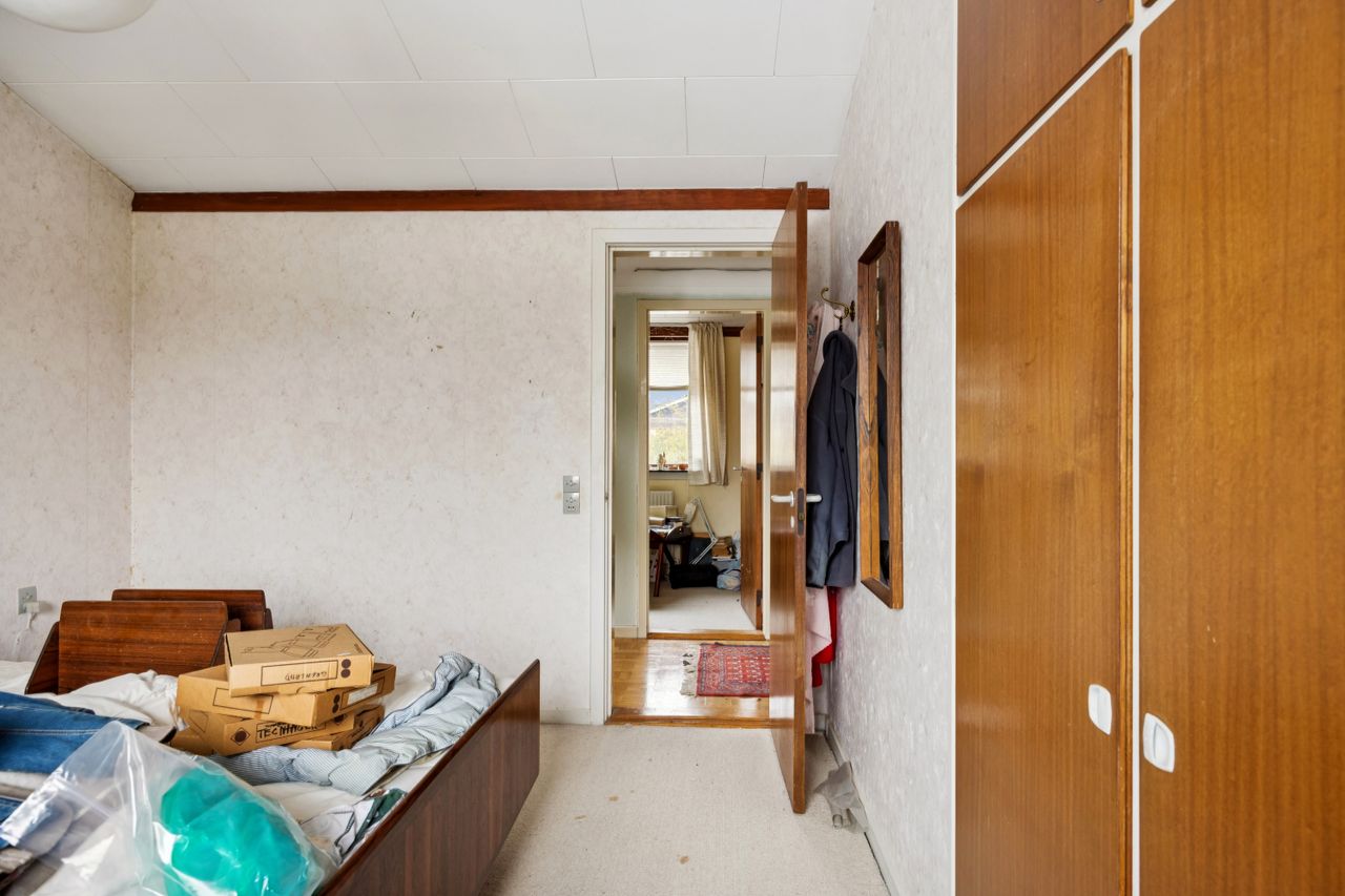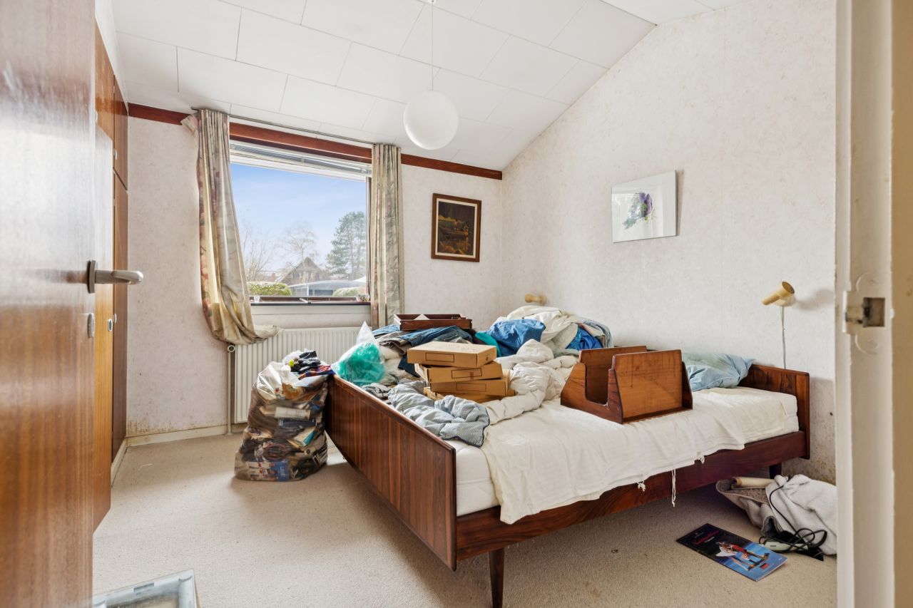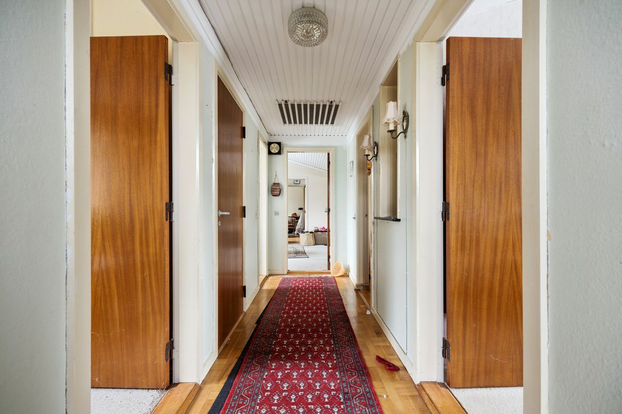 Indenfor finder du tre gode værelser, der alle er lyse og rummelige, samt et badeværelser, som sikrer komfort for hele familien. Den store vinkelstue er hjemmets hjerte med adgang til en hyggelig udestue, hvor du kan nyde udsigten over haven året rundt. Det funktionelle køkken ligger i forbindelse med et stort bryggers, hvilket gør dagligdagen nemmere og mere praktisk. Her er mulighed for at åbne op til køkken alrum.