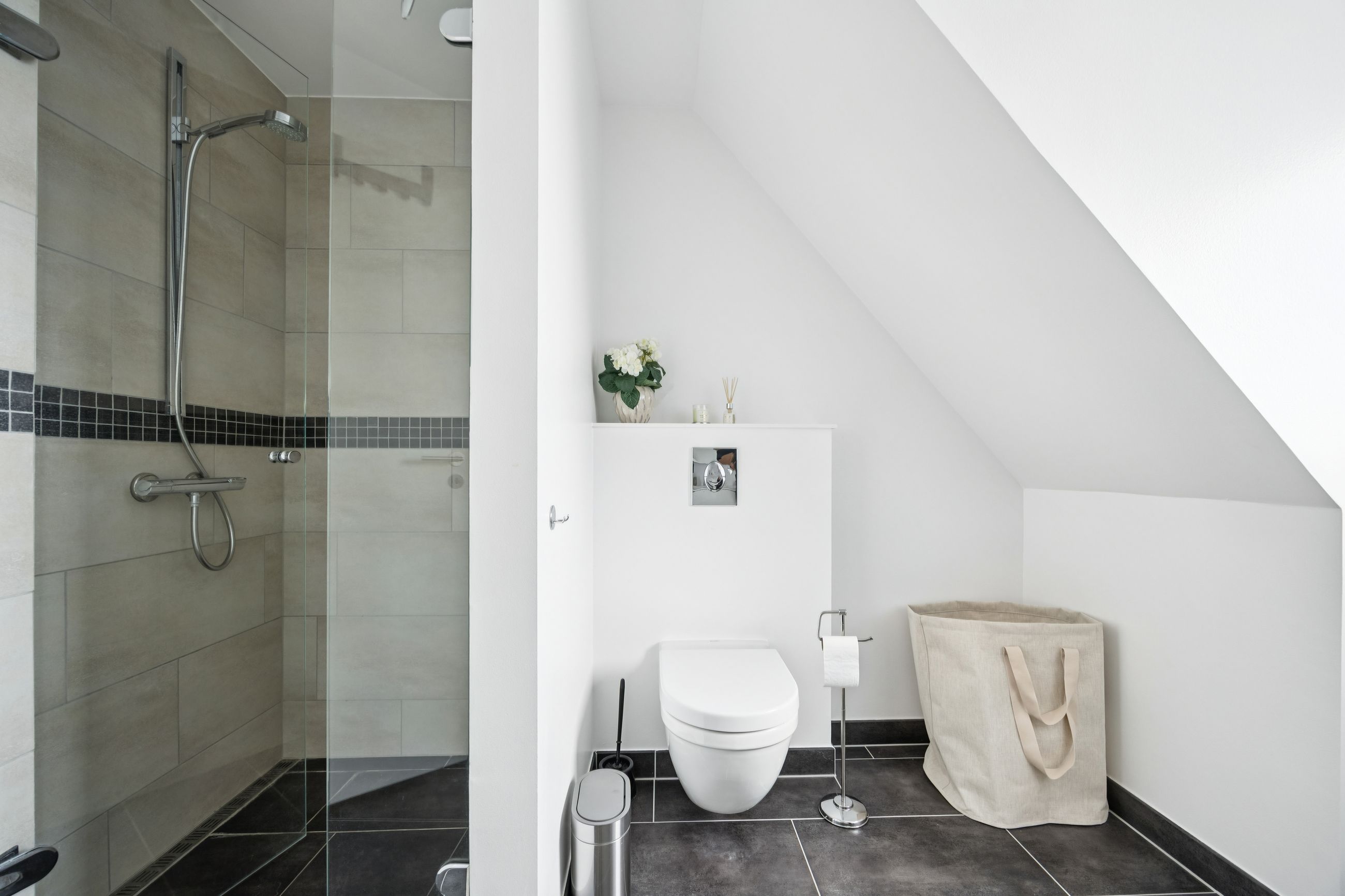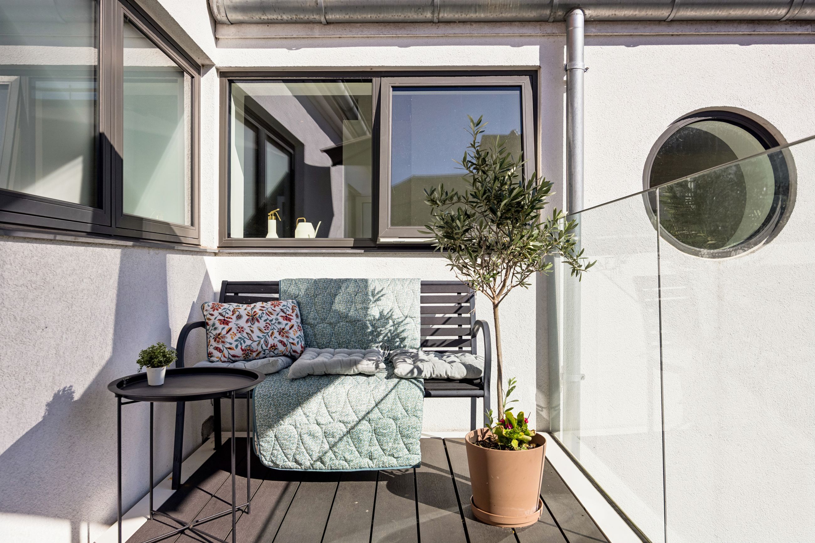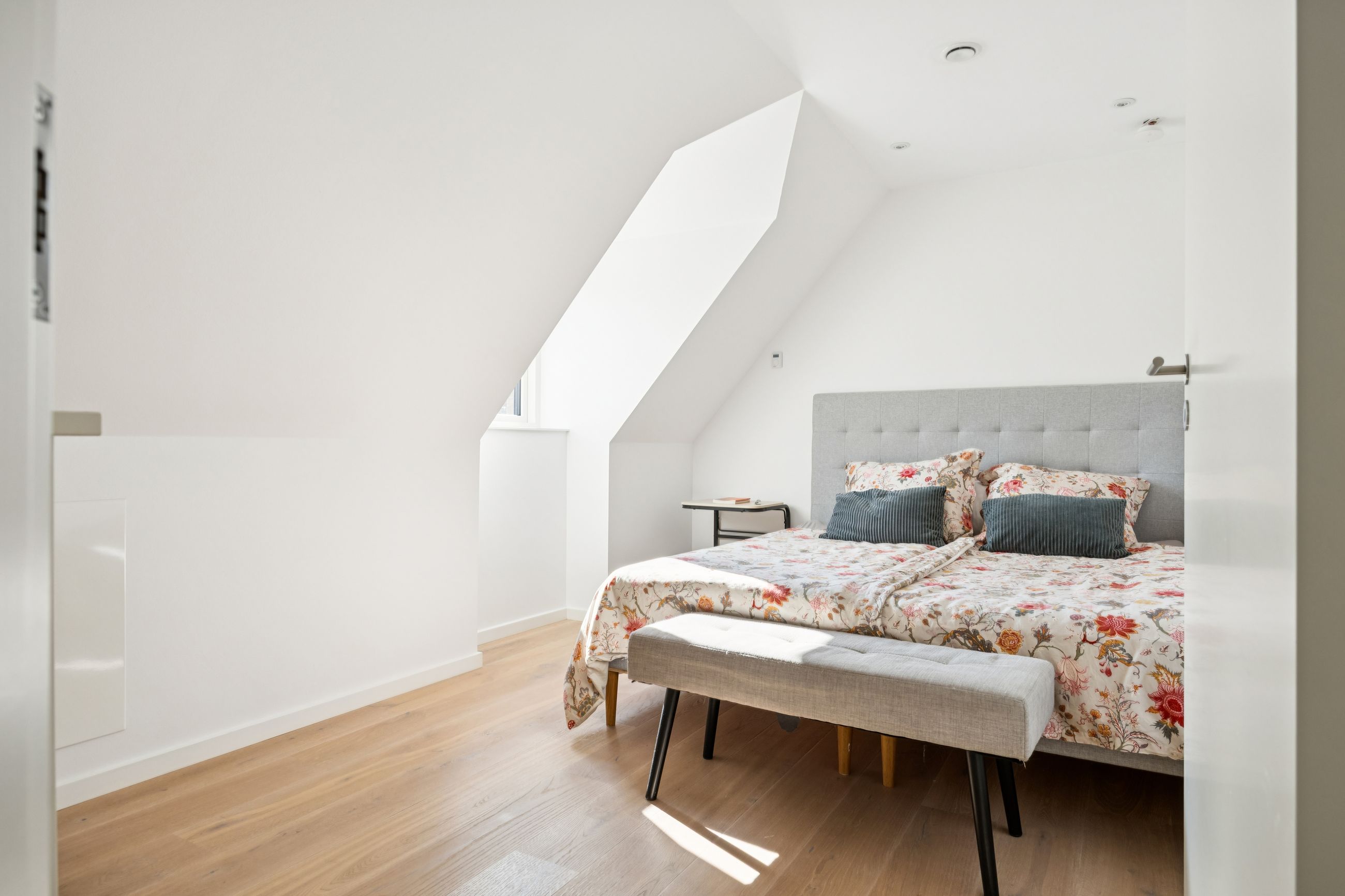 Med gulvvarme overalt sikres en behagelig temperatur året rundt, mens de to moderne badeværelser tilbyder både funktionalitet og stil. En stor solrig altan giver dig mulighed for at nyde udendørslivet midt i byen – perfekt til morgenkaffen eller afslapning efter en lang dag.