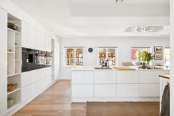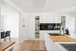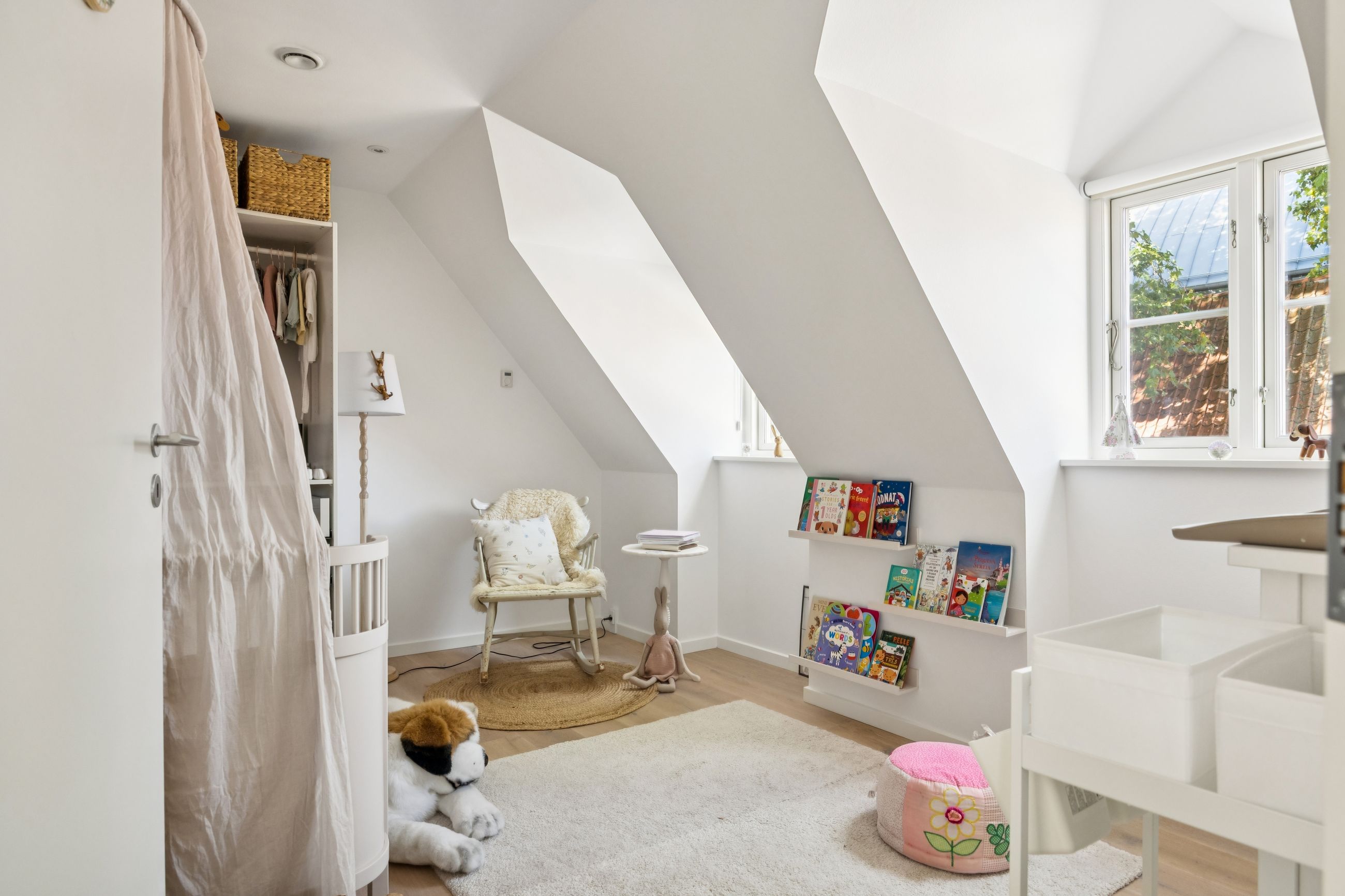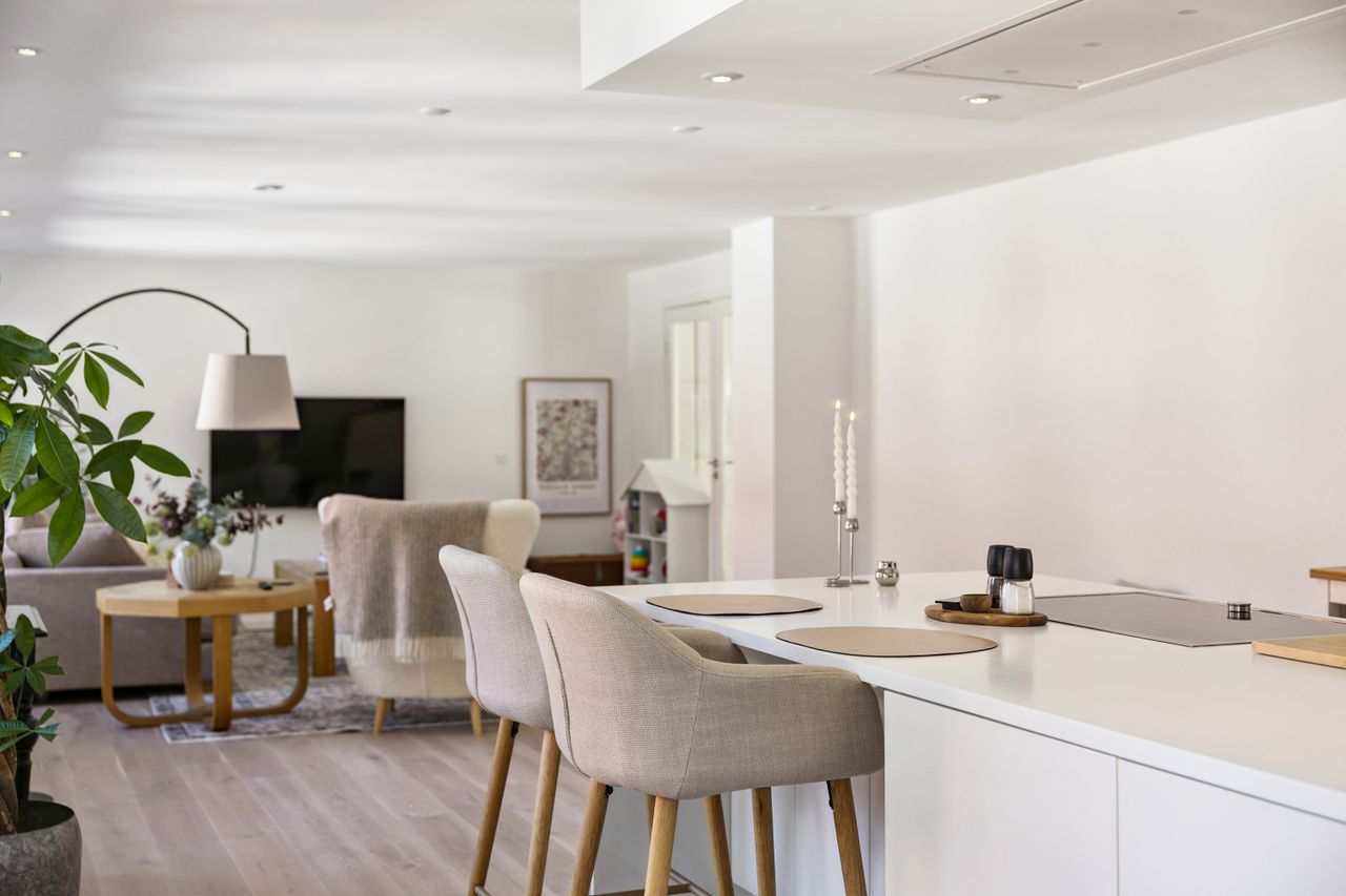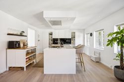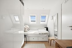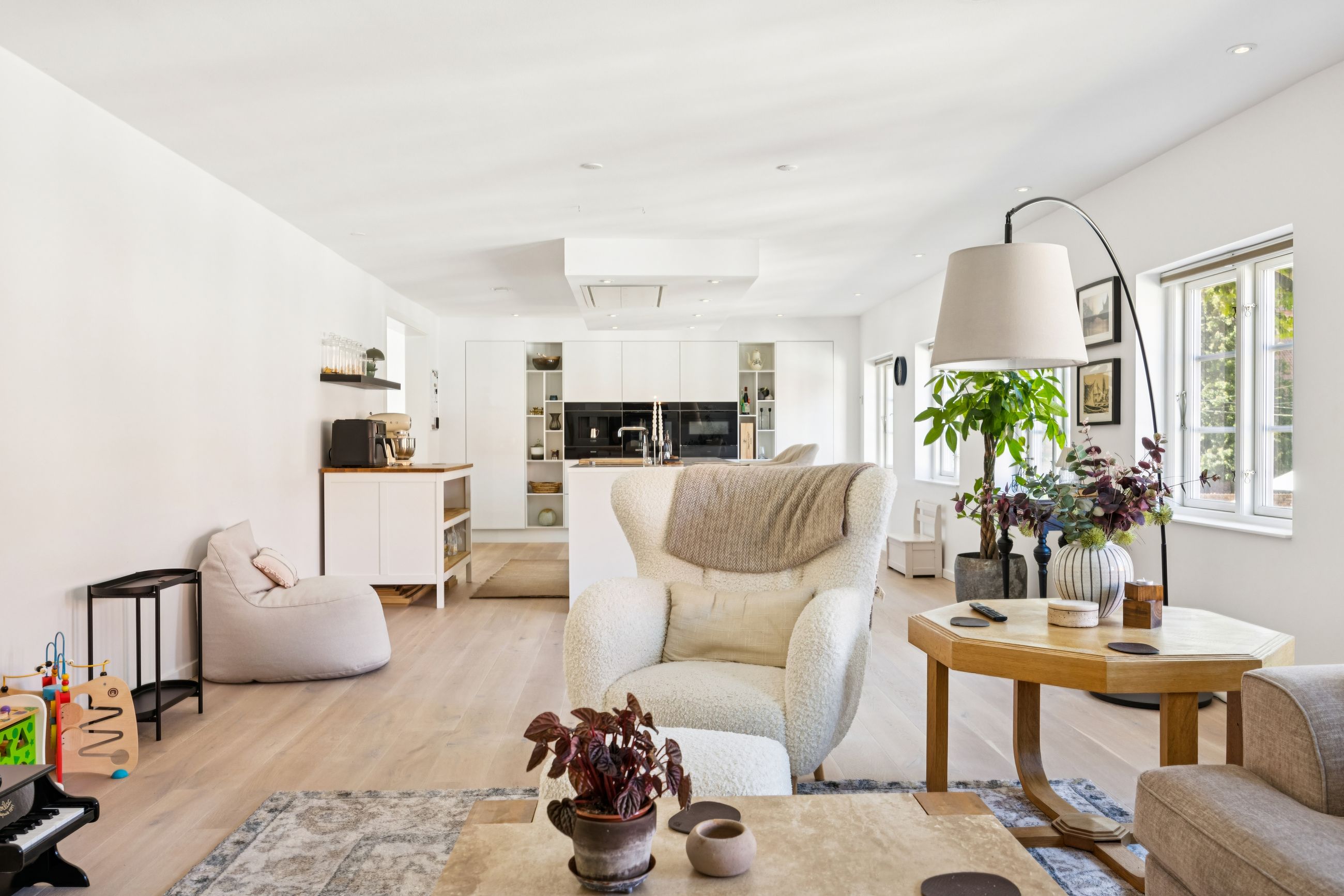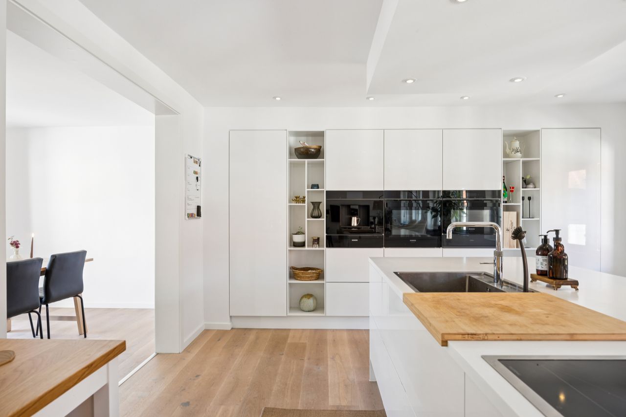 Lejligheden har fire rummelige værelser, der giver mulighed for at skabe både børne- og forældreafdeling efter behov. Det store køkken/alrum er perfekt integreret med stuen, hvilket skaber et åbent og lyst opholdsområde med plads til hjerterum og langbord – ideelt til hyggelige middage eller sociale sammenkomster. Den gode entre byder på rigelig opbevaringsplads, så du nemt kan holde orden i hverdagen. Derudover hører til lejligheden også et godt kælderrum.