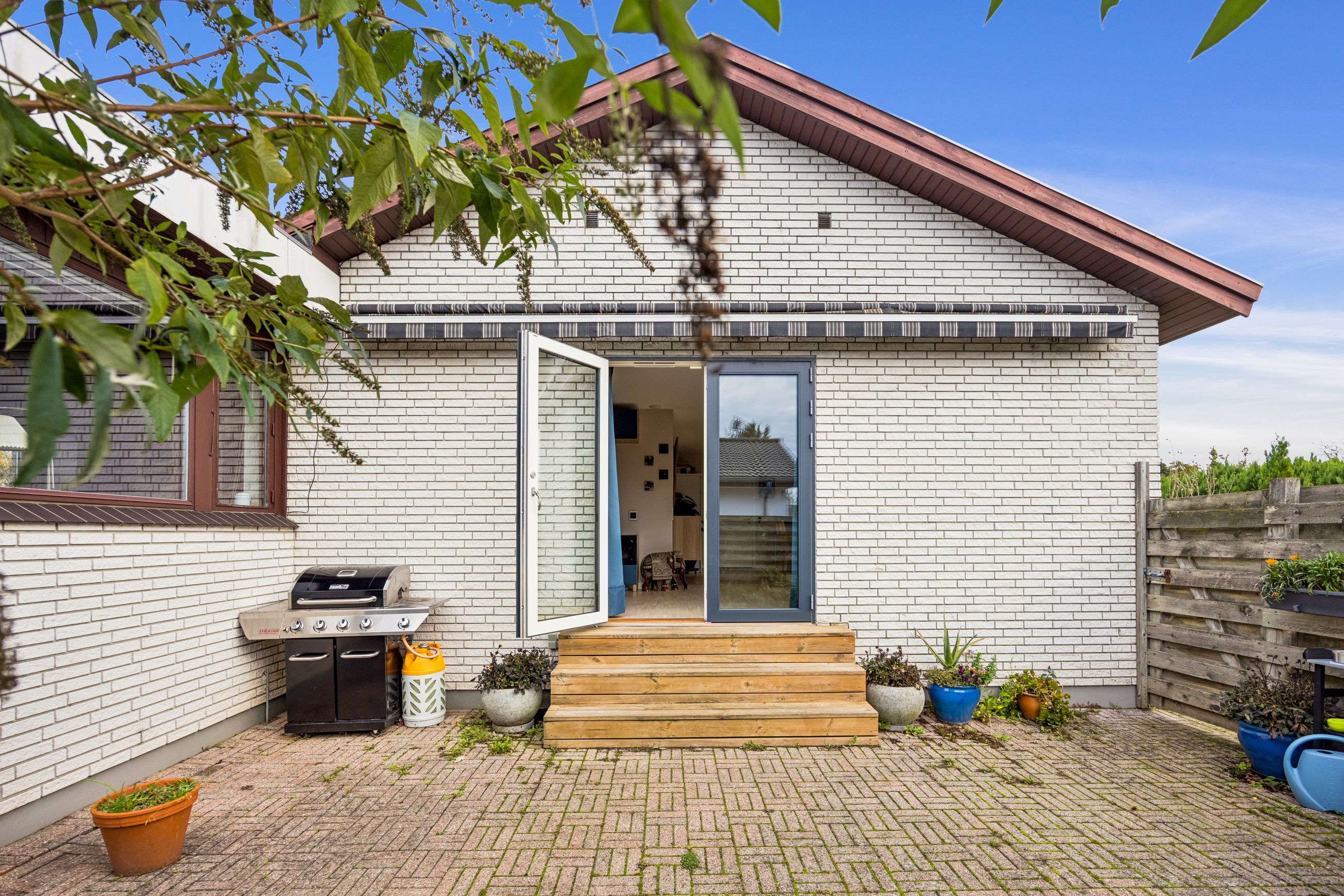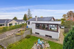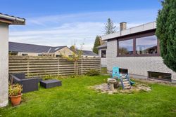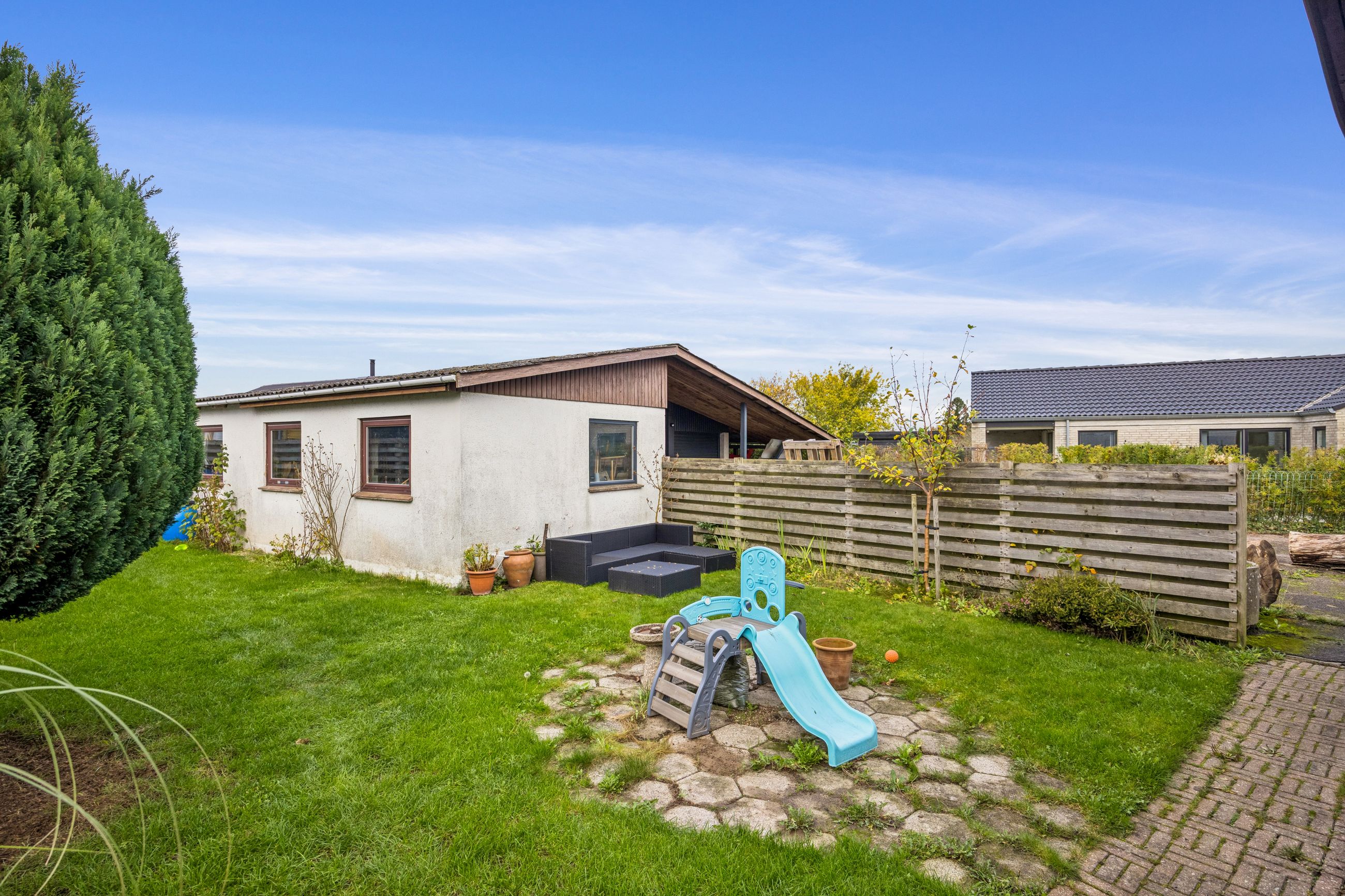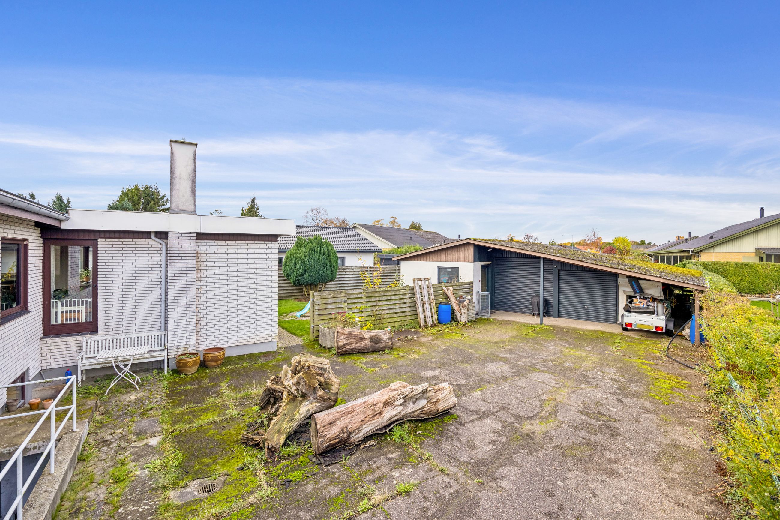 Udenfor finder du en dejlig sydvestvendt have med rigeligt af grønne arealer, perfekt til både afslapning og leg. Haven er ideel til sommerens grillfester eller bare en stille stund med en god bog under åben himmel. Derudover er der også en stor garage med værksted, som vil glæde enhver gør-det-selv entusiast.