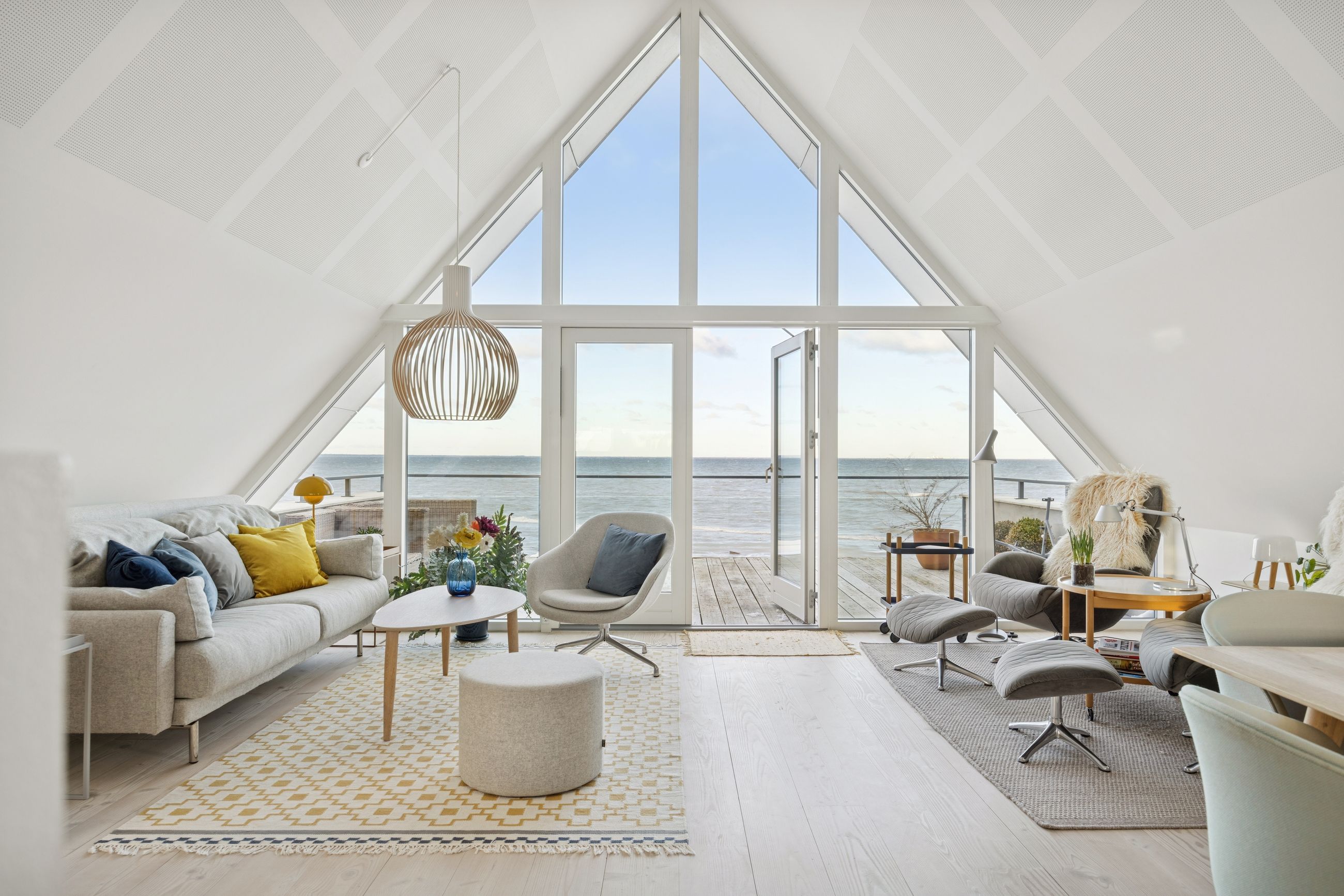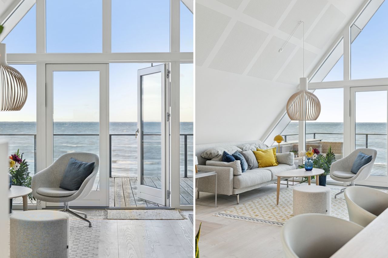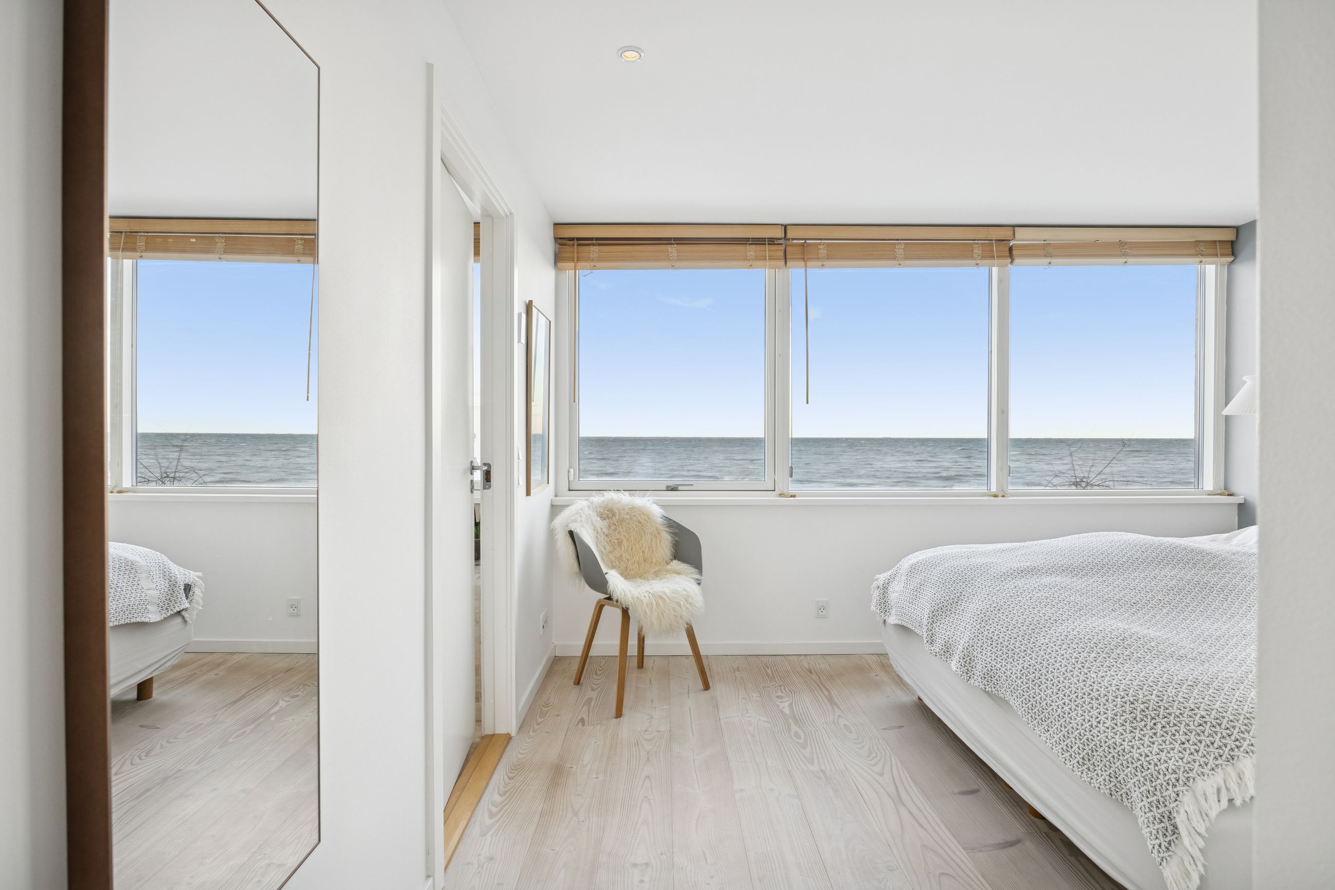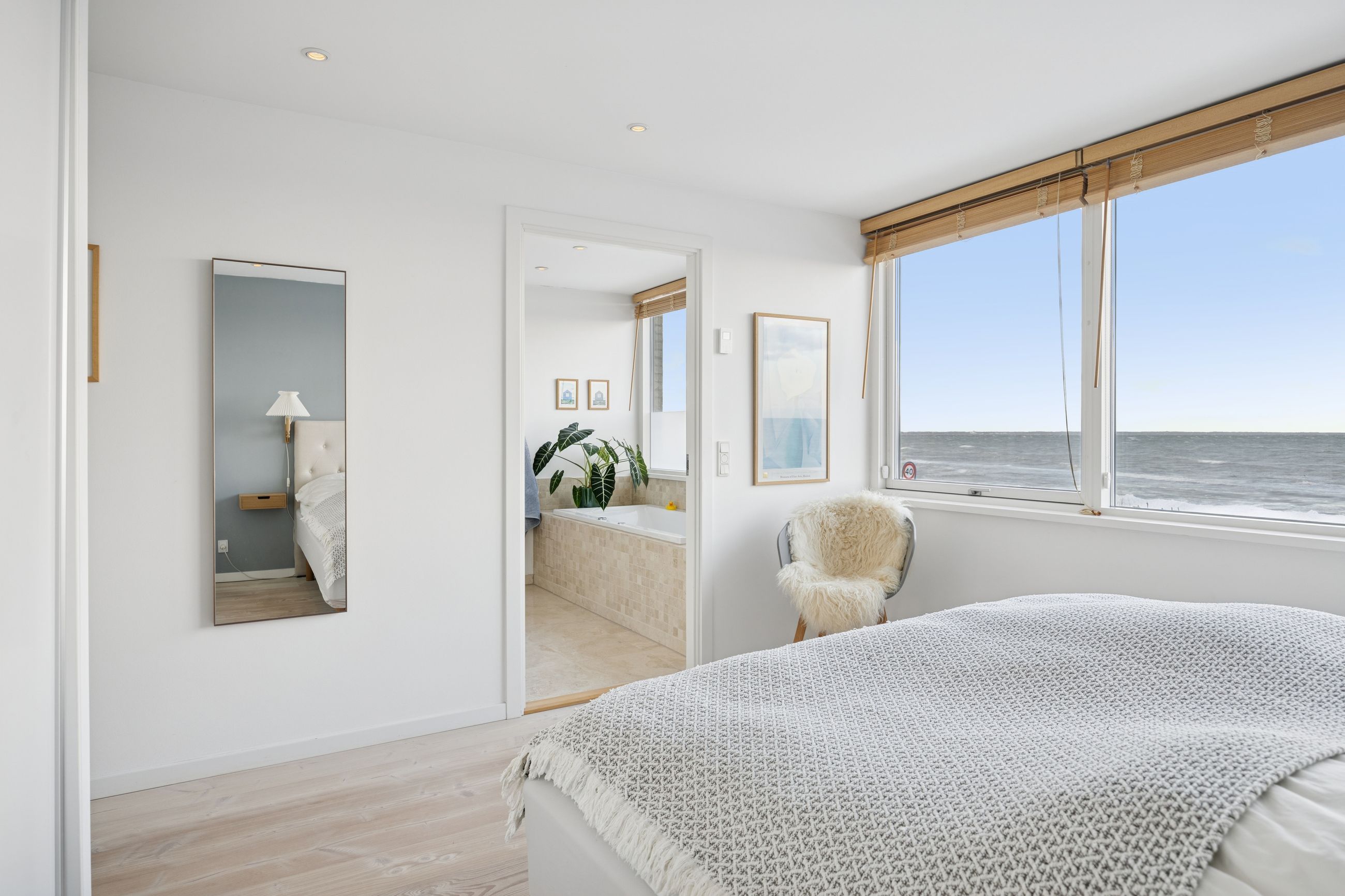 Indenfor mødes du af et velindrettet hjem med gennemtænkte rumløsninger. På første sal finder du det imponerende køkken-alrum med loft til kip og akustikpaneler, som skaber en rummelig atmosfære. Herfra kan du nyde den betagende panoramaudsigt over havet fra de store vinduespartier eller træde ud på den store terrasse for at opleve udsigten under åben himmel. Stueplanet byder på et stort soveværelse med tilstødende badeværelse, hvor du også kan vågne op til synet af bølgerne.