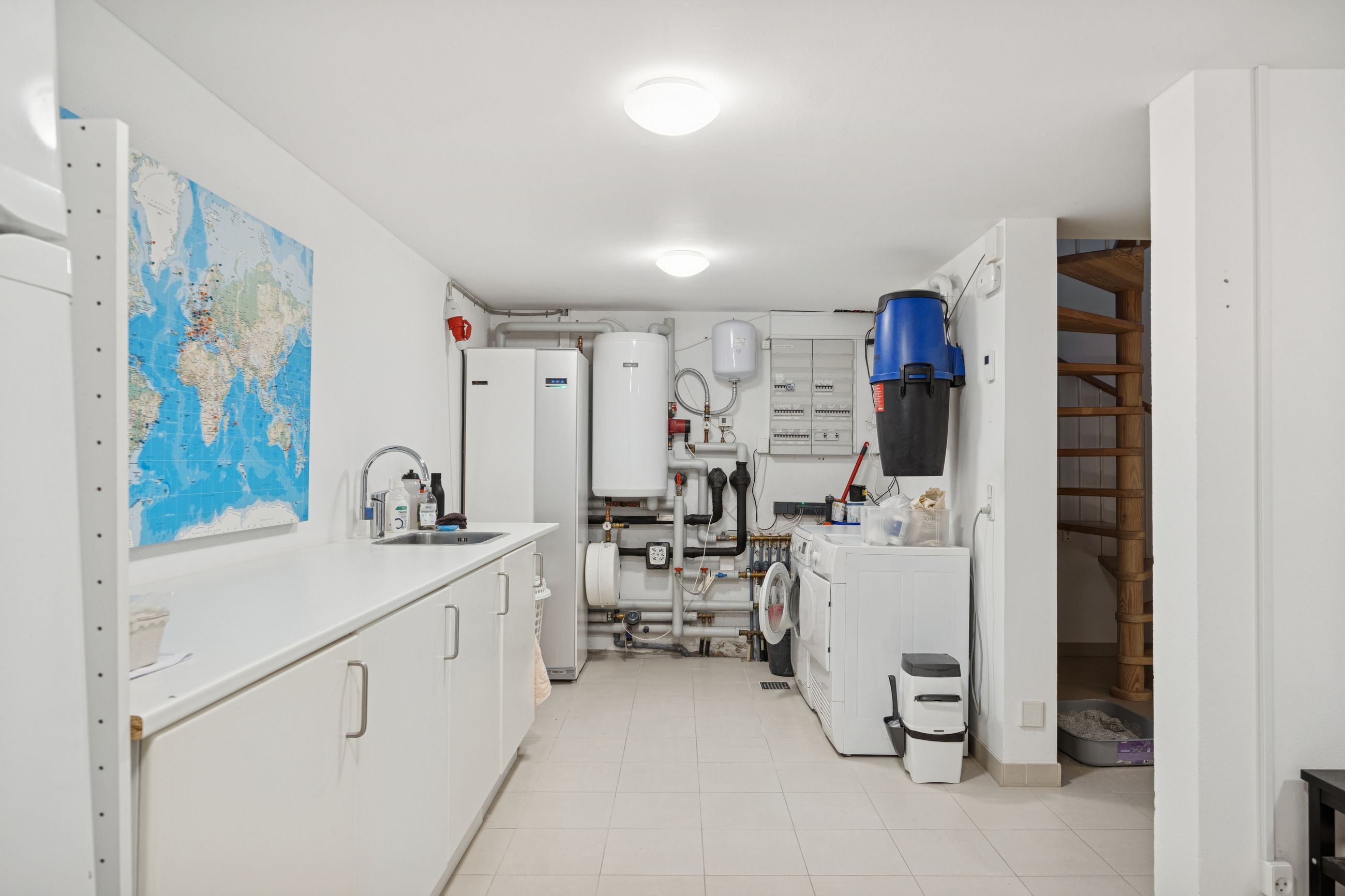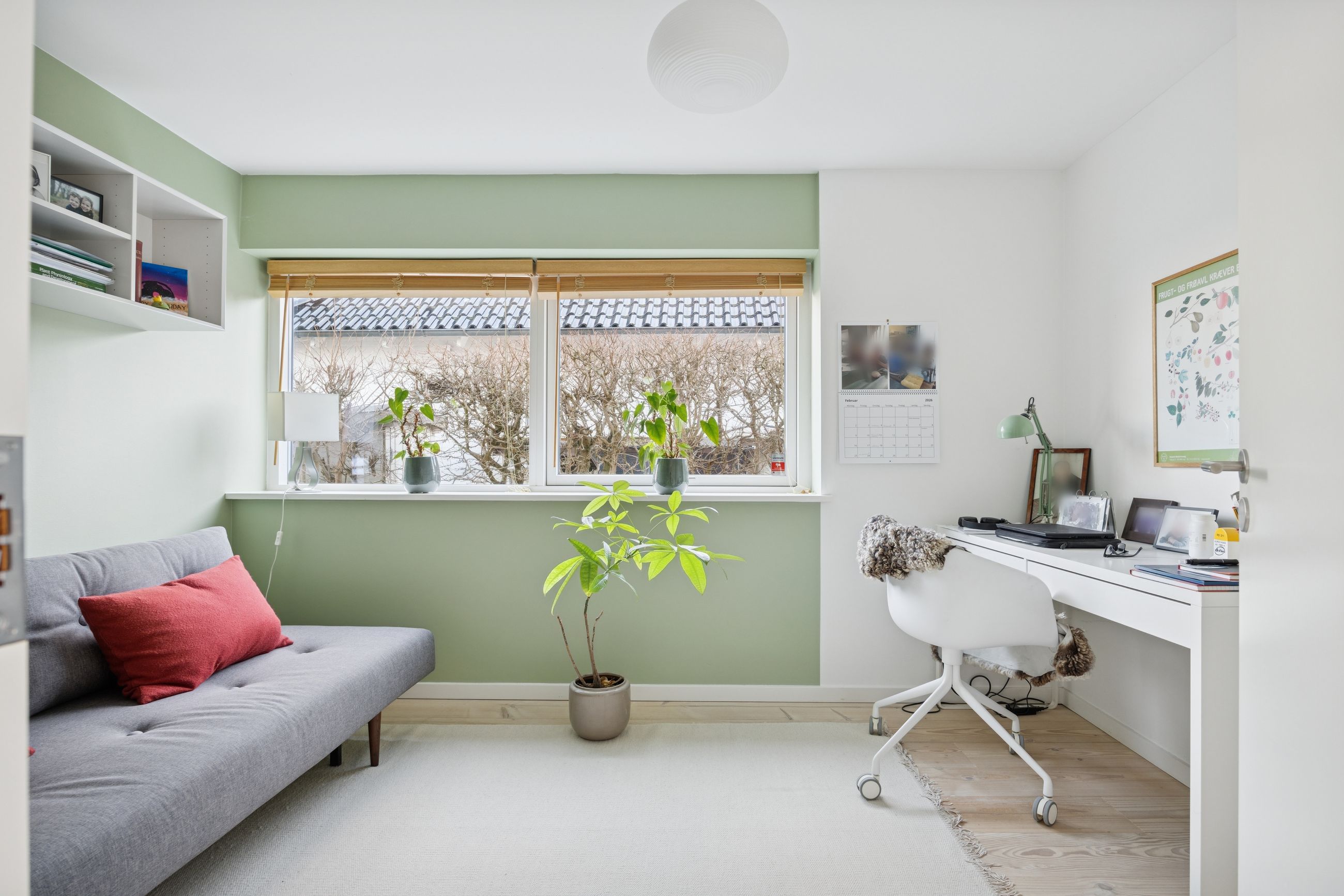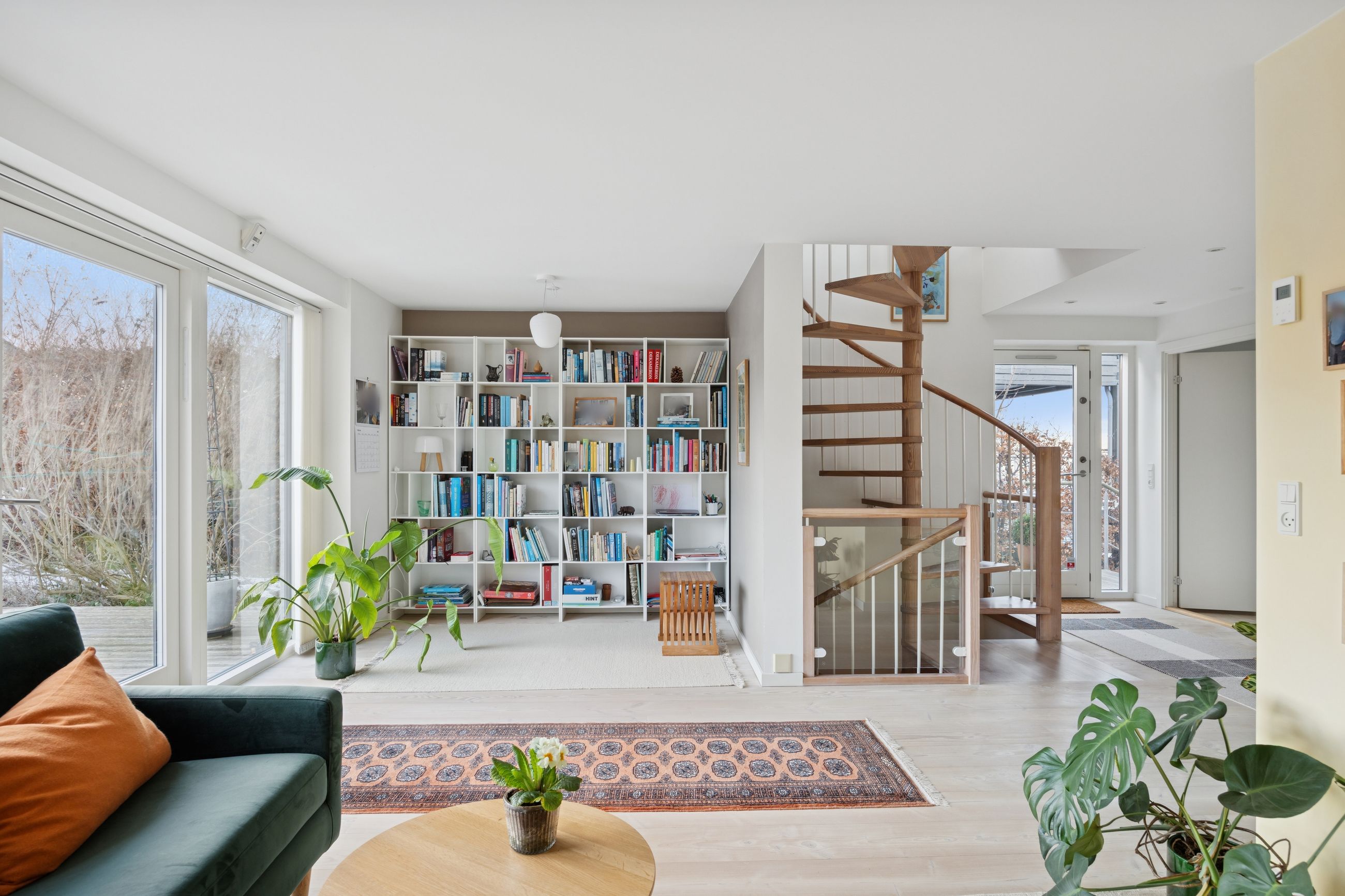 Stueplanets stue har direkte adgang til den skønne have, hvor frodig beplantning og solkroge inviterer til afslapning og hygge. Der er desuden mulighed for at indrette et ekstra værelse efter behov. I kælderen finder du en integreret garage samt bryggersfaciliteter – alt sammen udført i flotte materialer og yderst velholdt stand.