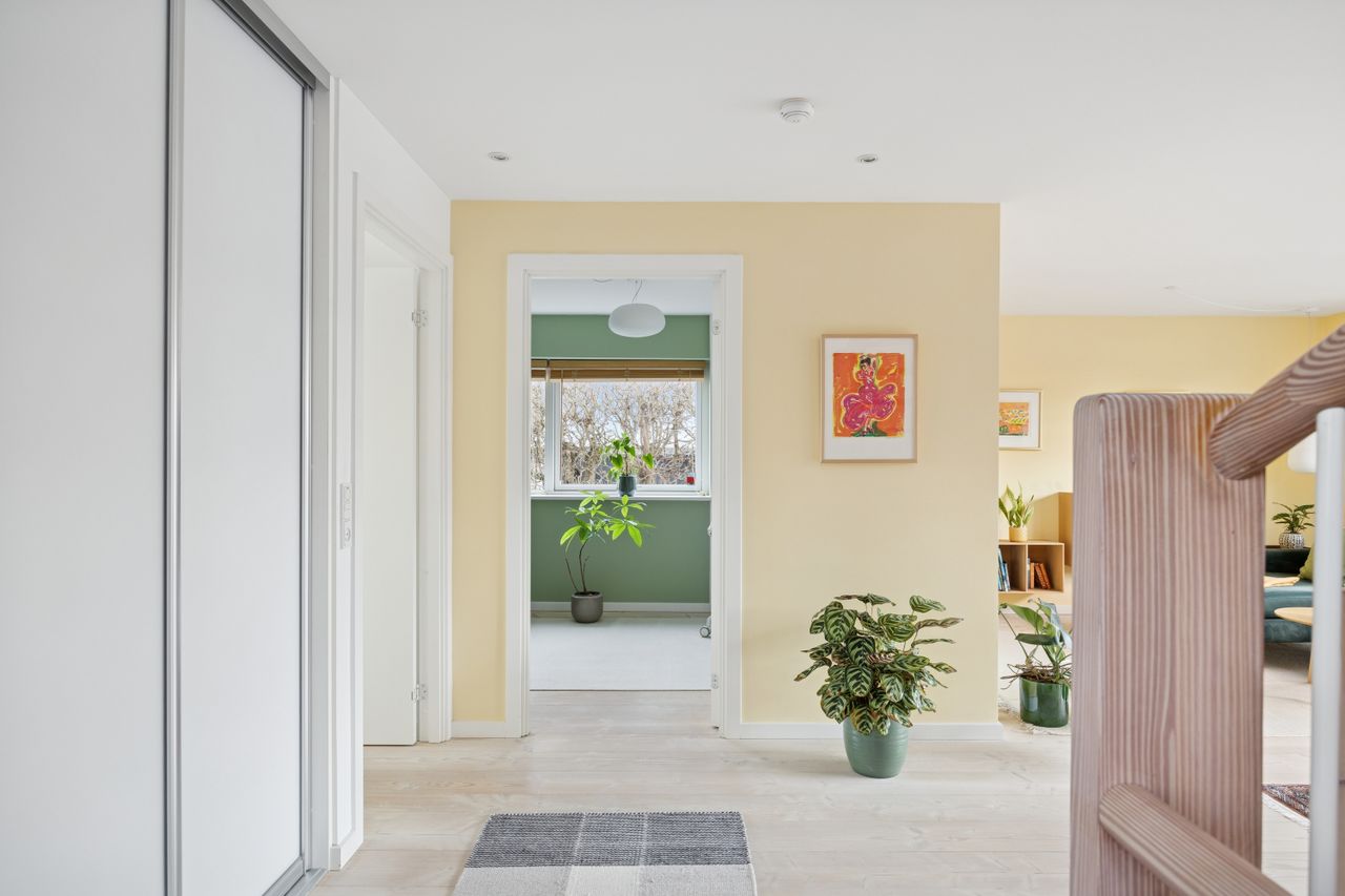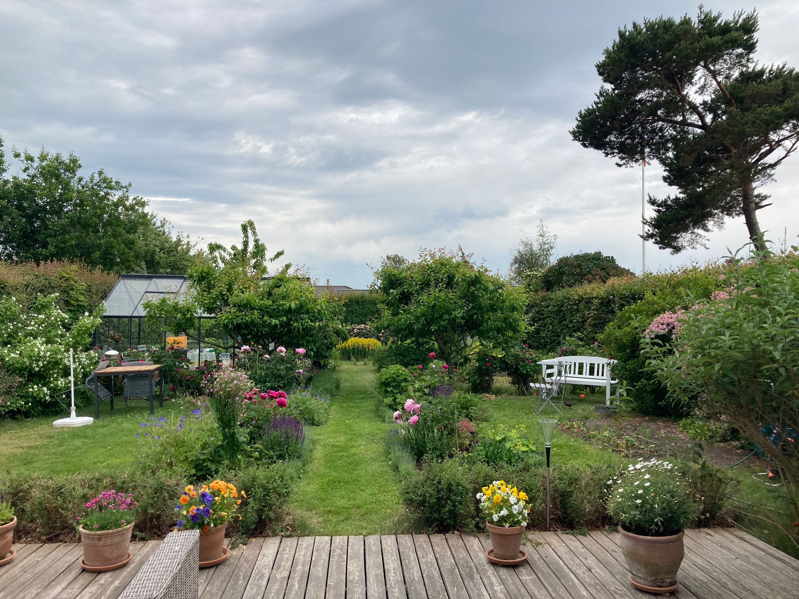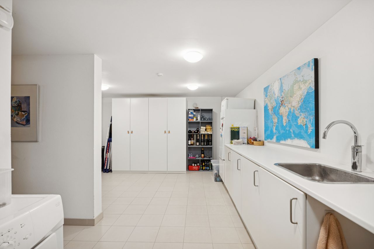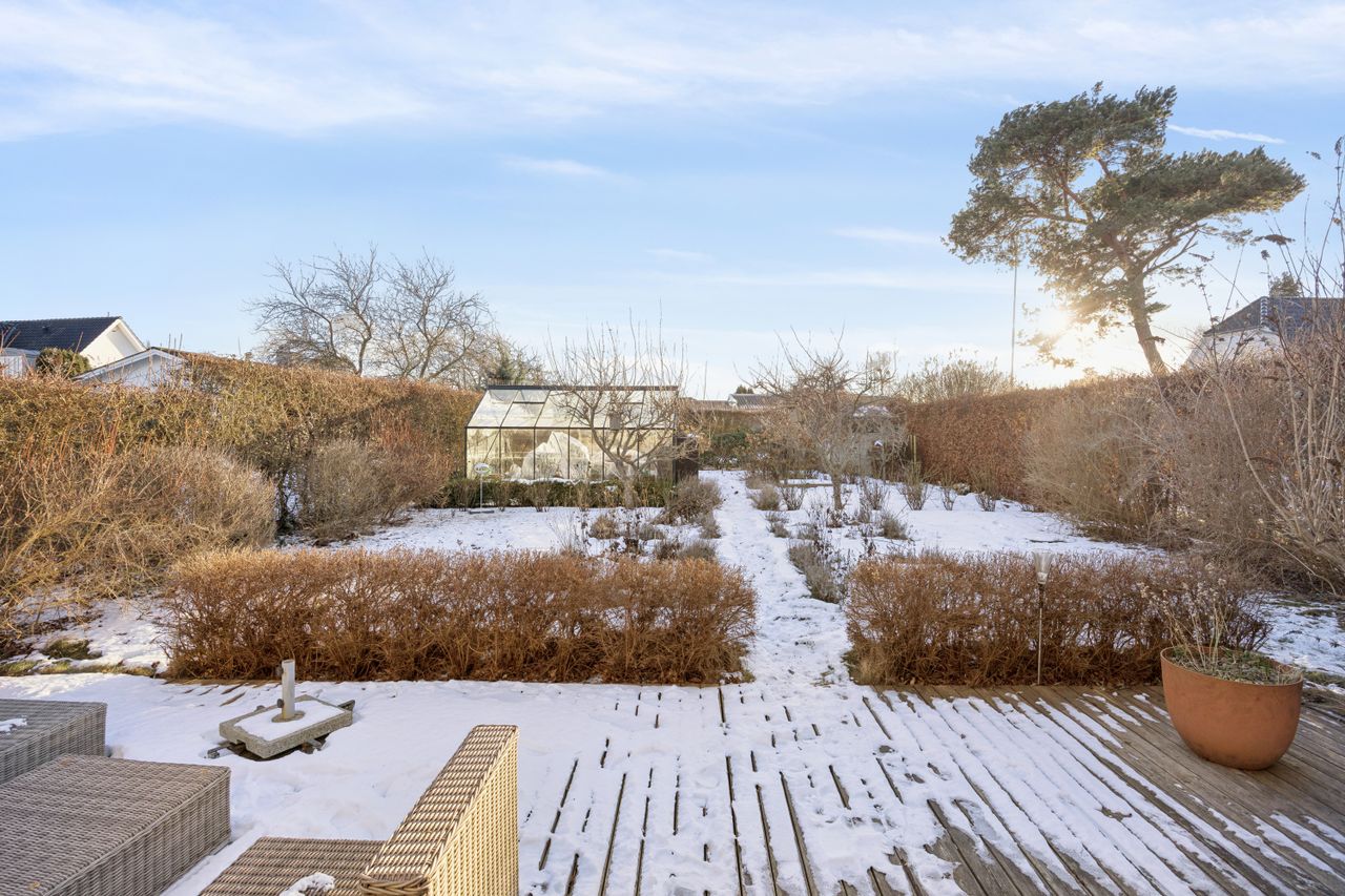 Stueplanets stue har direkte adgang til den skønne have, hvor frodig beplantning og solkroge inviterer til afslapning og hygge. Der er desuden mulighed for at indrette et ekstra værelse efter behov. I kælderen finder du en integreret garage samt bryggersfaciliteter – alt sammen udført i flotte materialer og yderst velholdt stand.