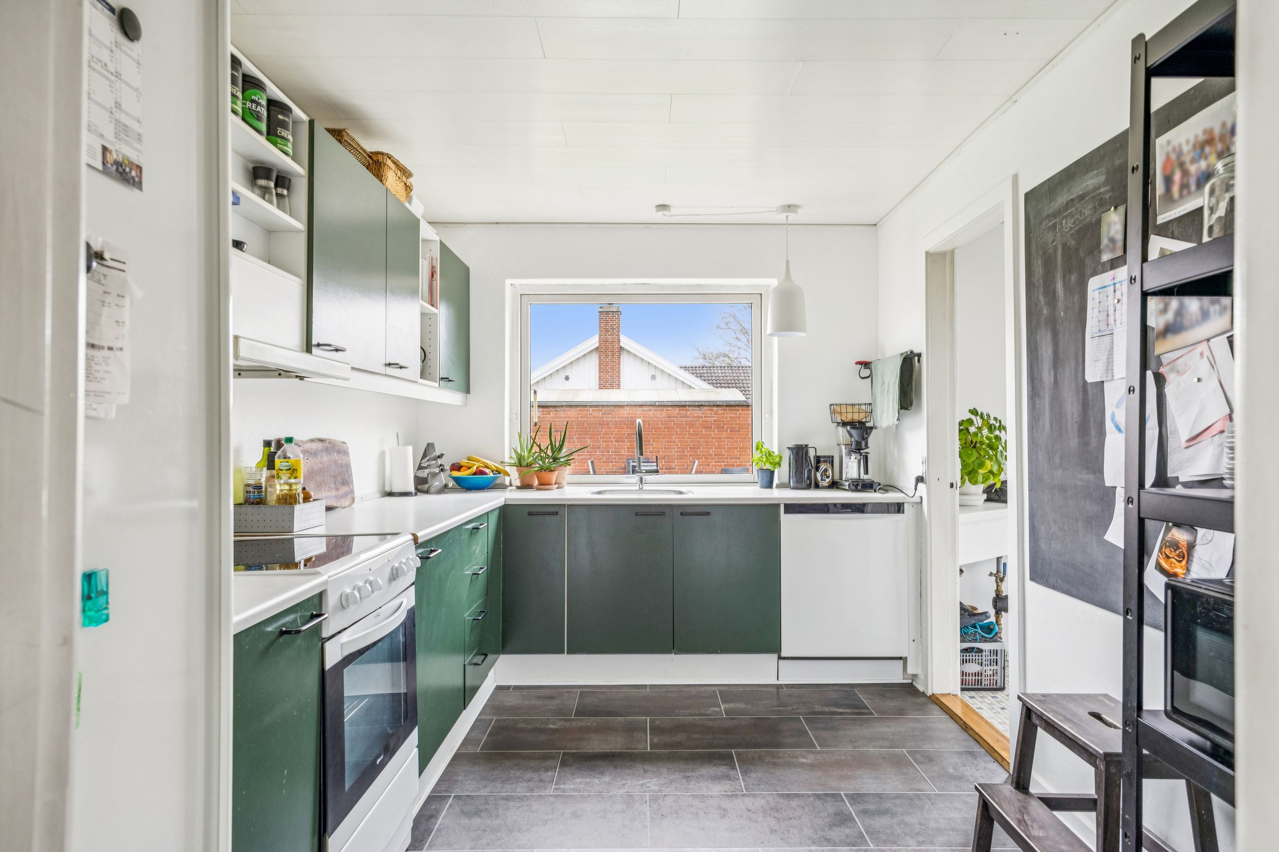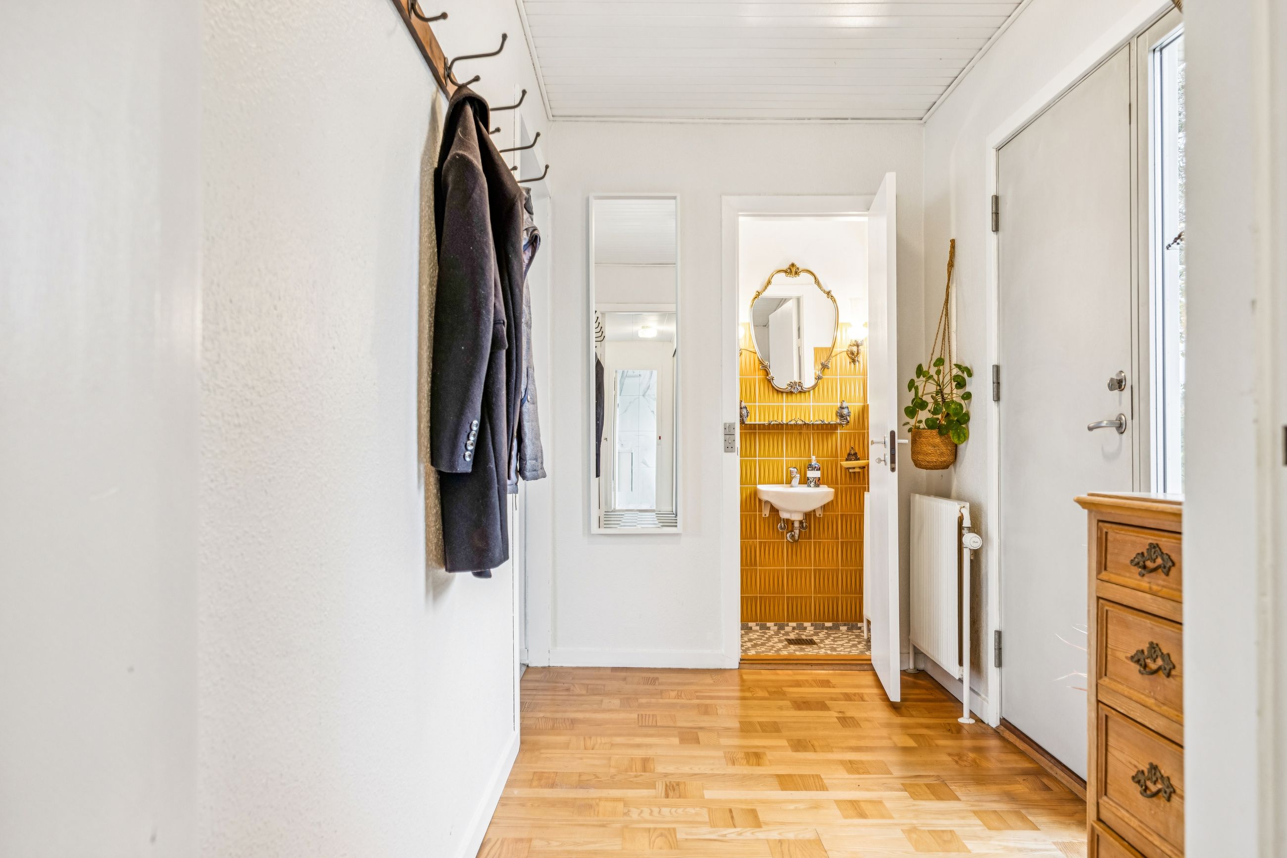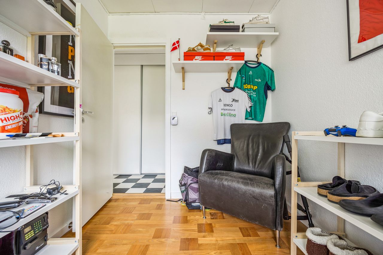 Det nyligt renoverede brusebadeværelse fra 2022 er både stilfuldt og funktionelt med moderne faciliteter, der gør hverdagen lettere. Derudover byder villaen på et gæstetoilet, der charmerer med sin autentiske 70'er vibe på klinkerne – en sjov detalje for dem, der elsker retro-stilen.
