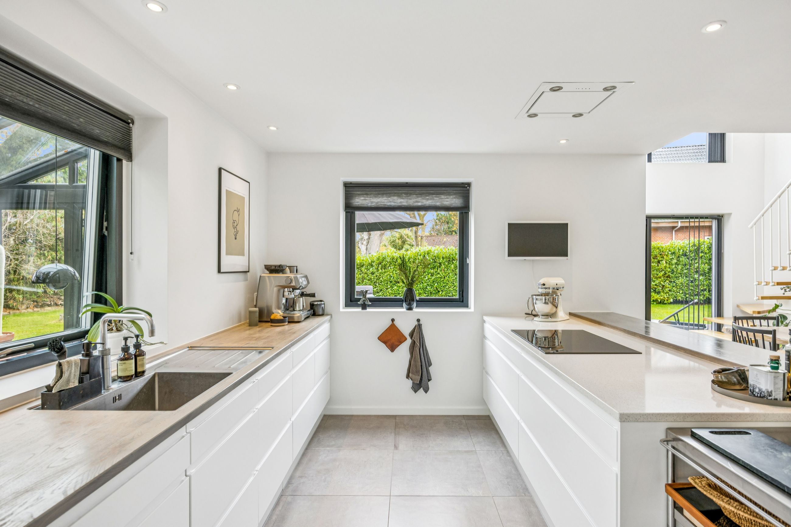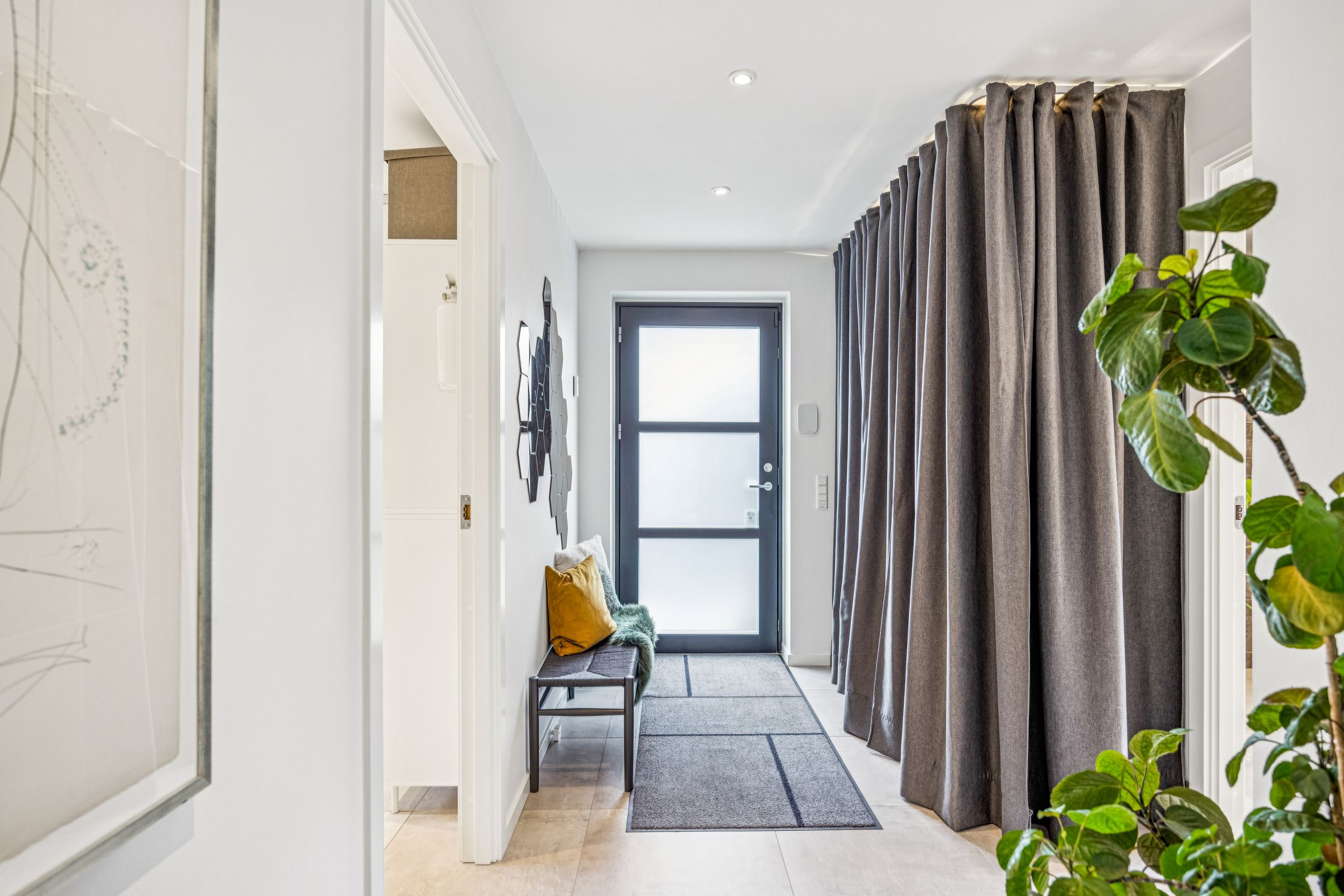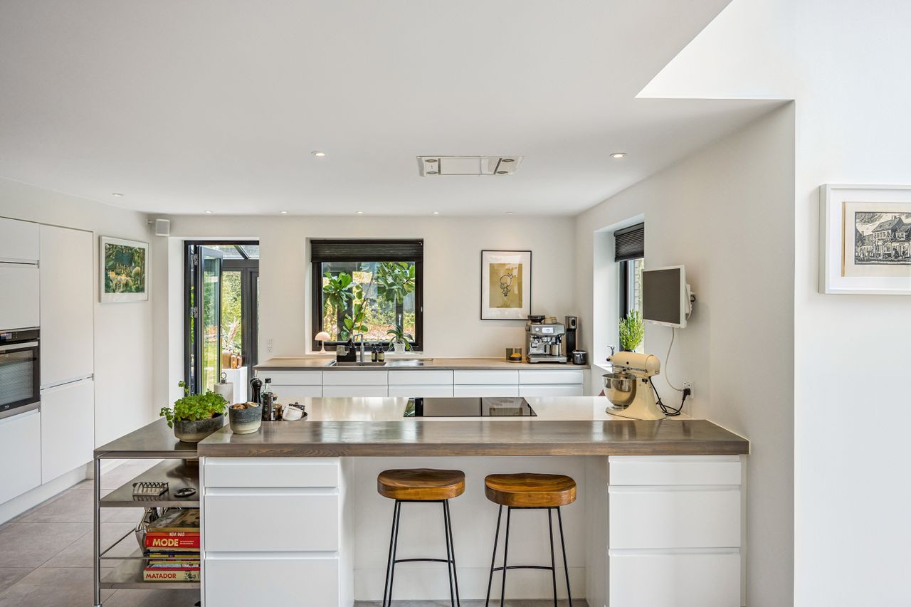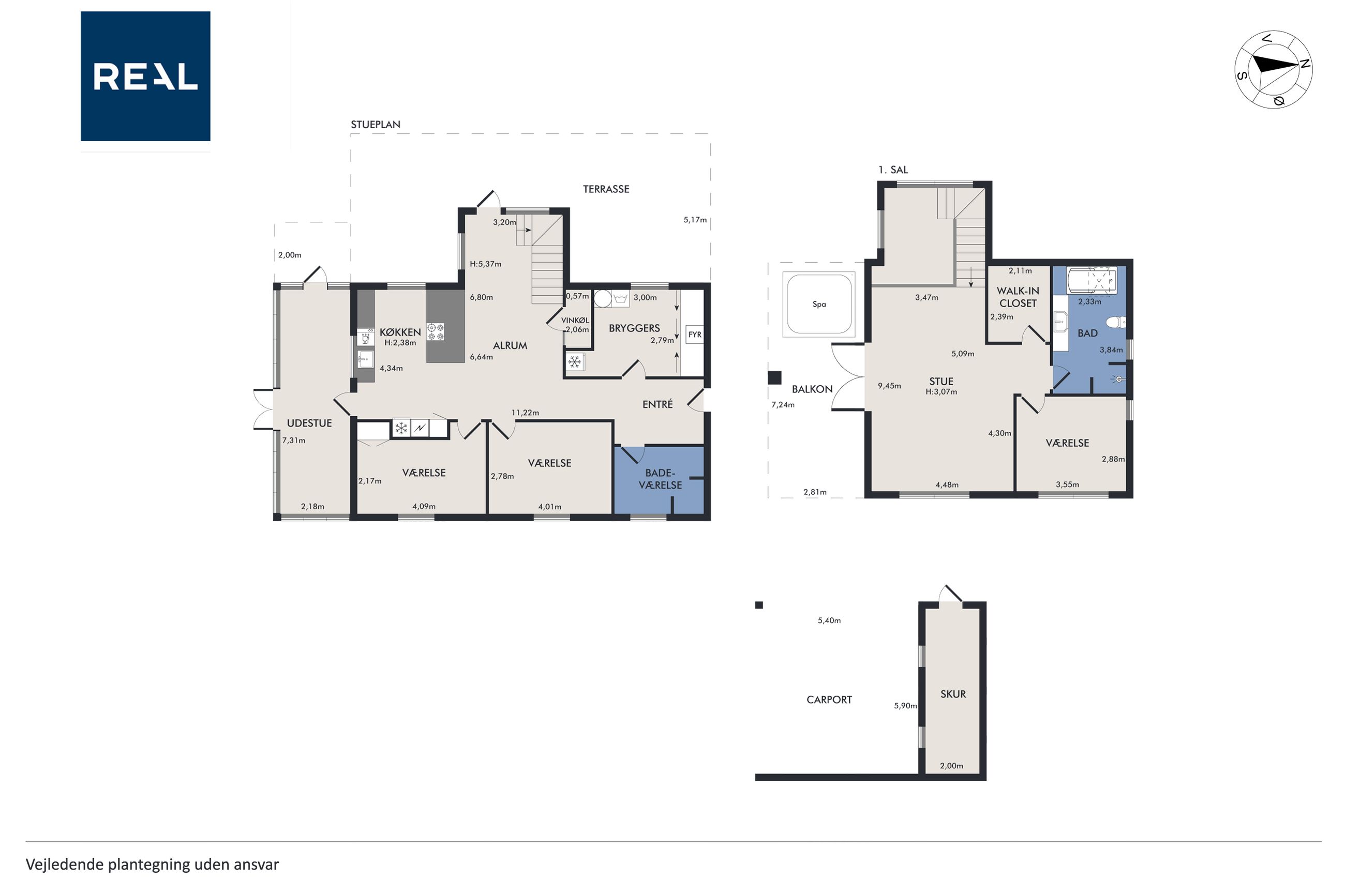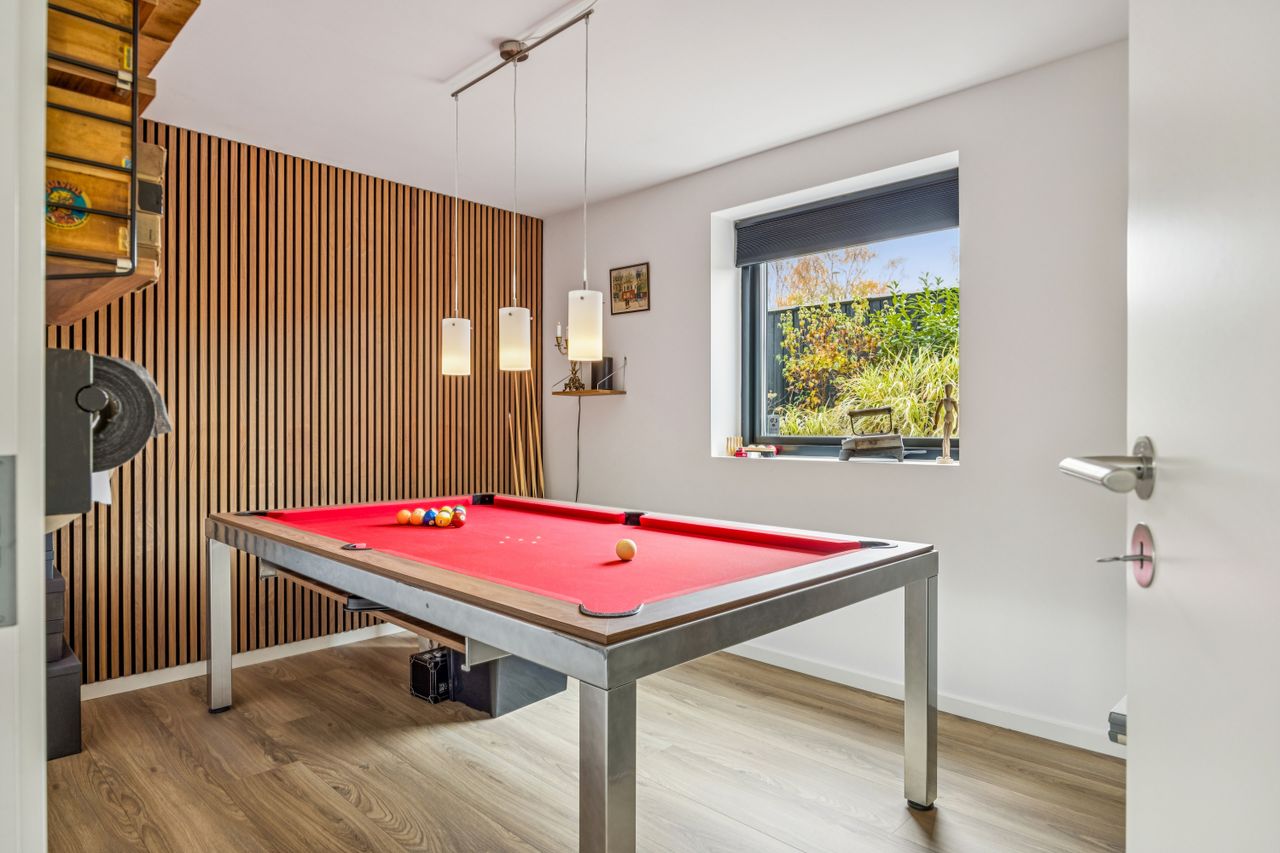 I stueplan træder man ind i et rummeligt leverum med køkken-alrum, hvor lyset strømmer ind gennem de store vinduespartier. Herfra er der direkte adgang til den opvarmede udestue som udgør 20 kvm – en sand oase, hvor man kan nyde roen året rundt. Stueplanet rummer desuden to værelser, et stort badeværelse samt et praktisk bryggers.