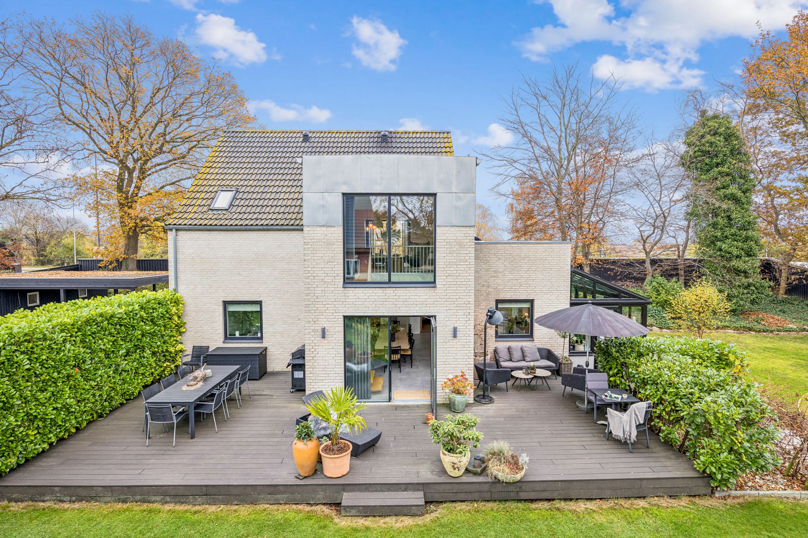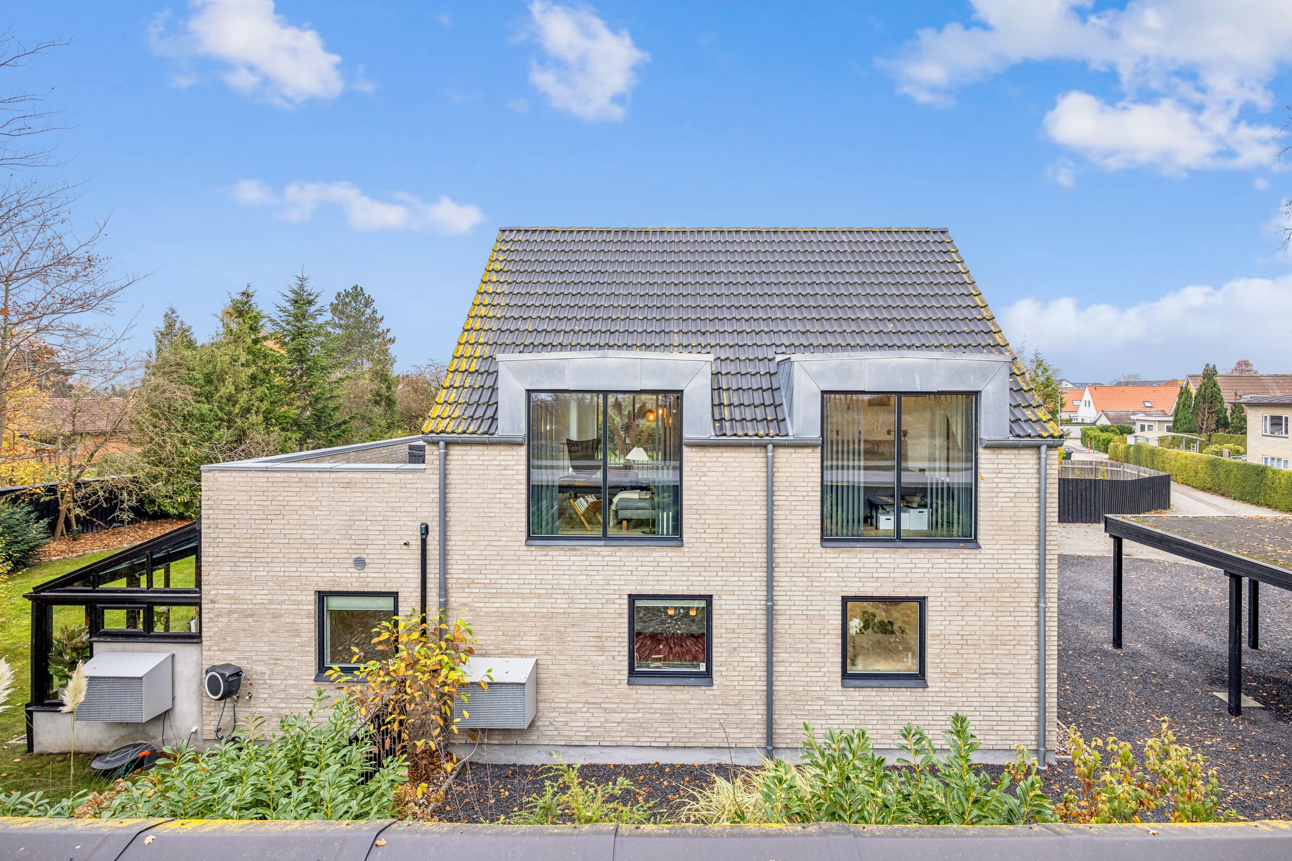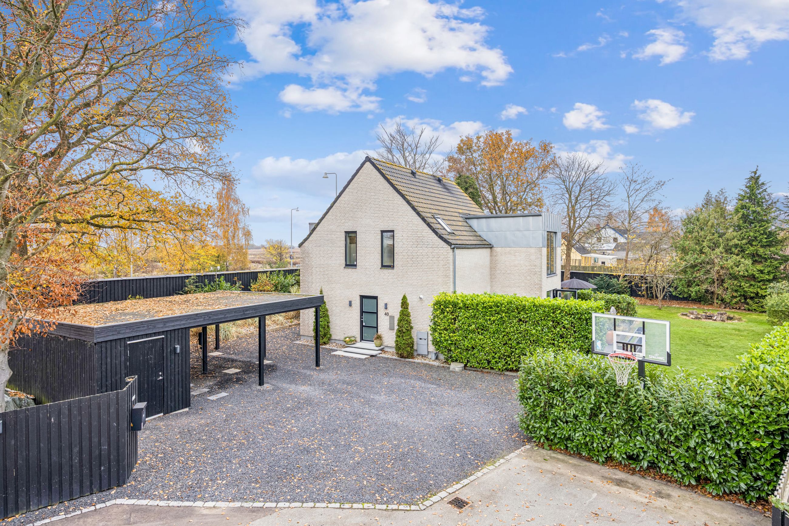 Udenfor venter den skønne sydvestvendte have, som er ideel for både afslapning og leg. Ejendommen har desuden en overdækket carport med plads til to biler samt et skur til opbevaring af haveredskaber mv.