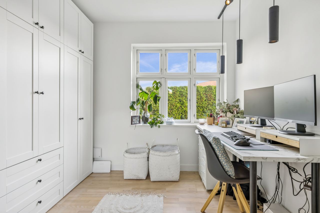 Den hyggelige stue er ideel til afslapning efter en lang dag, mens det ekstra værelse fungerer optimalt som kontor eller hobbyrum. Bryggerset fungerer også som et praktisk indgangsparti med nyere fjernvarmeanlæg samt adgang til et stilfuldt badeværelse.