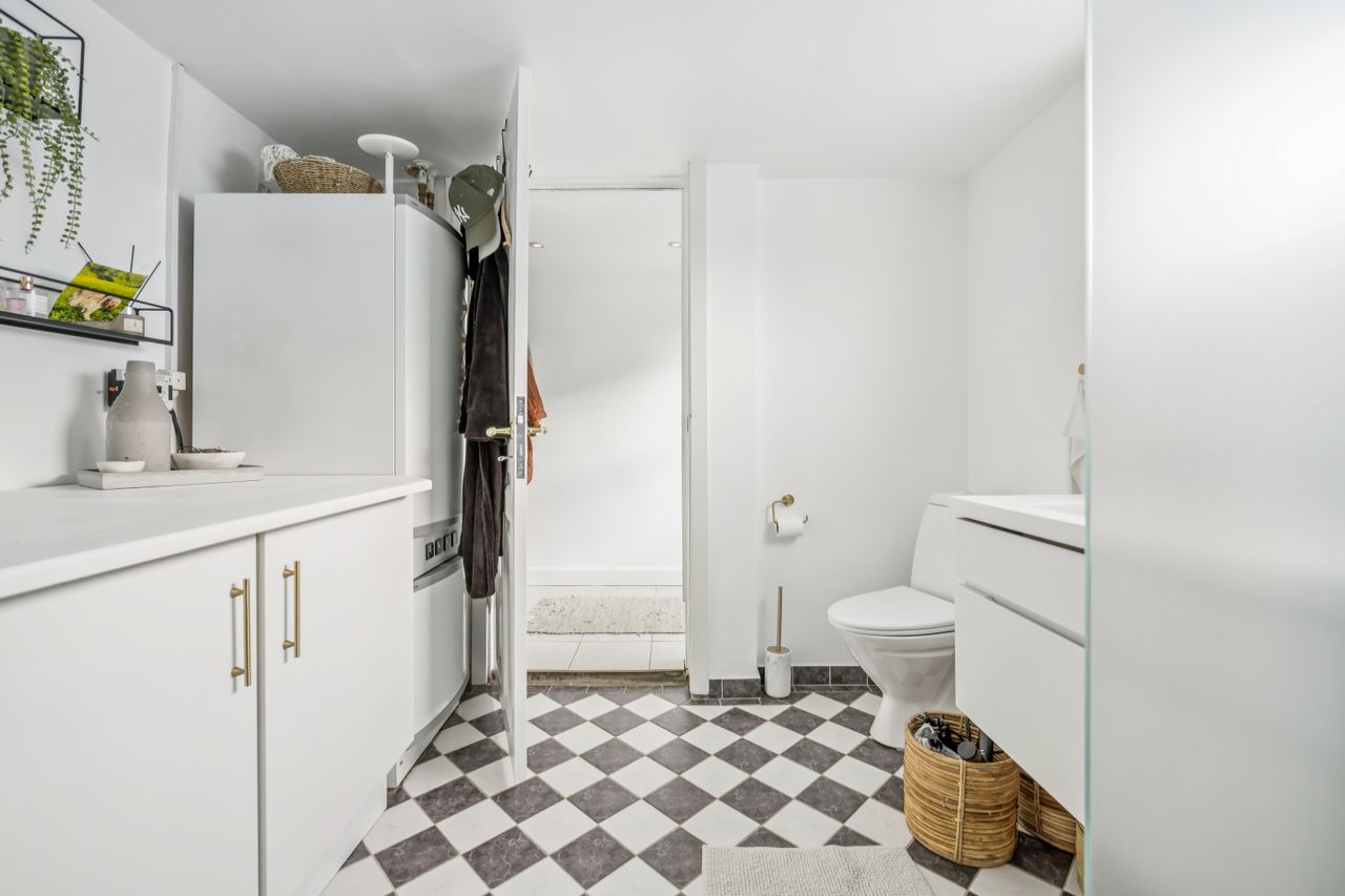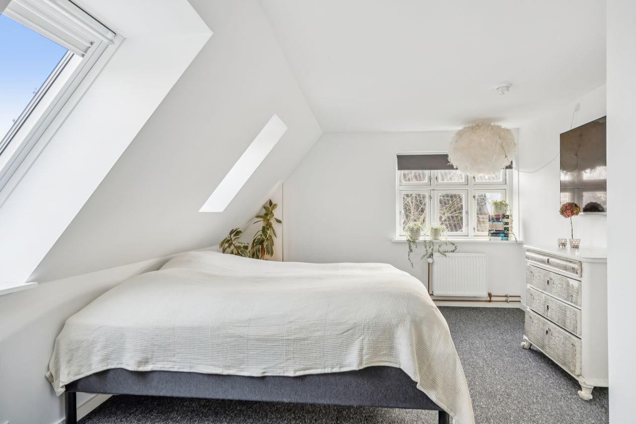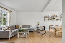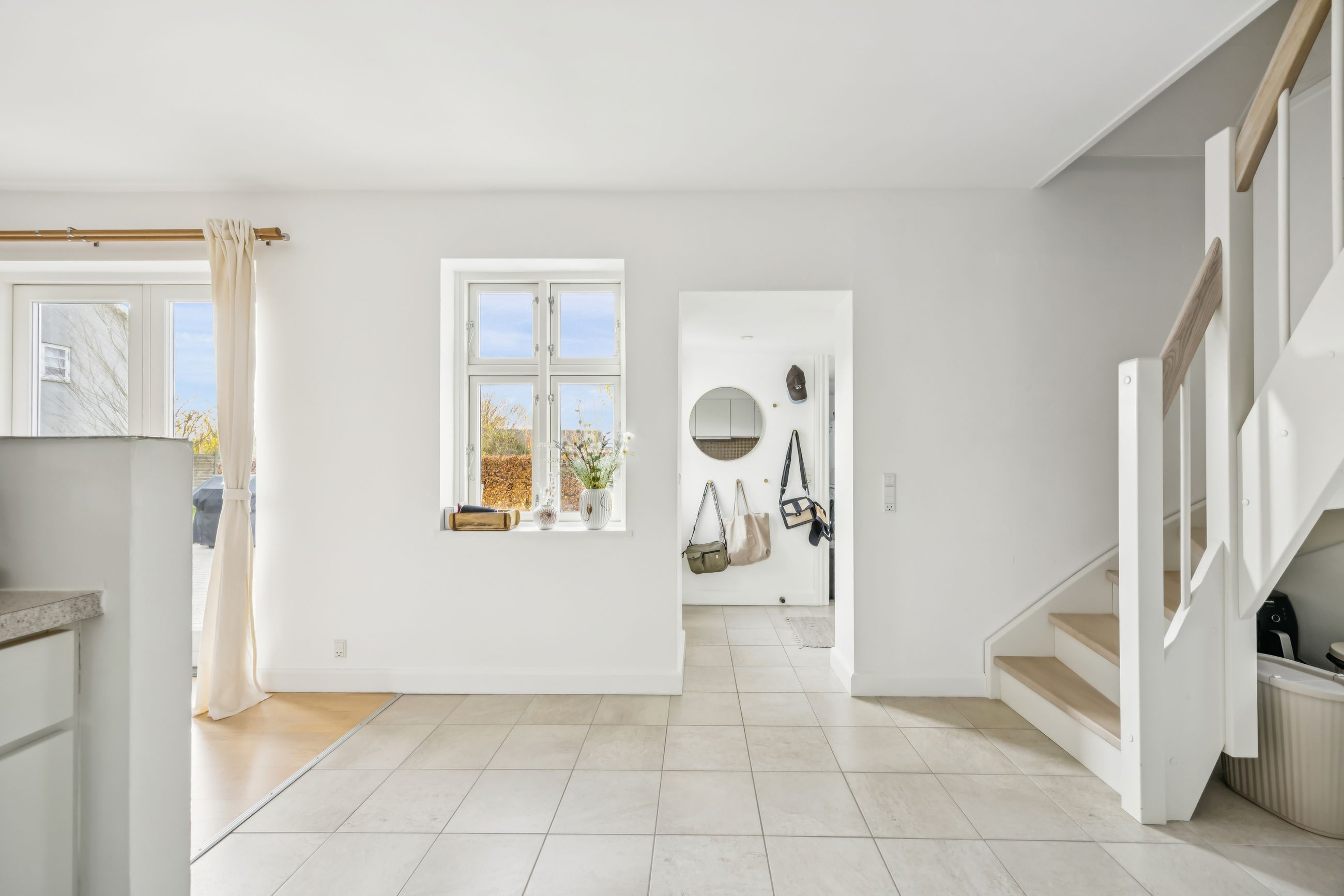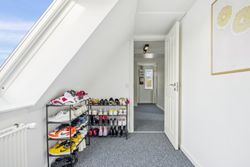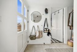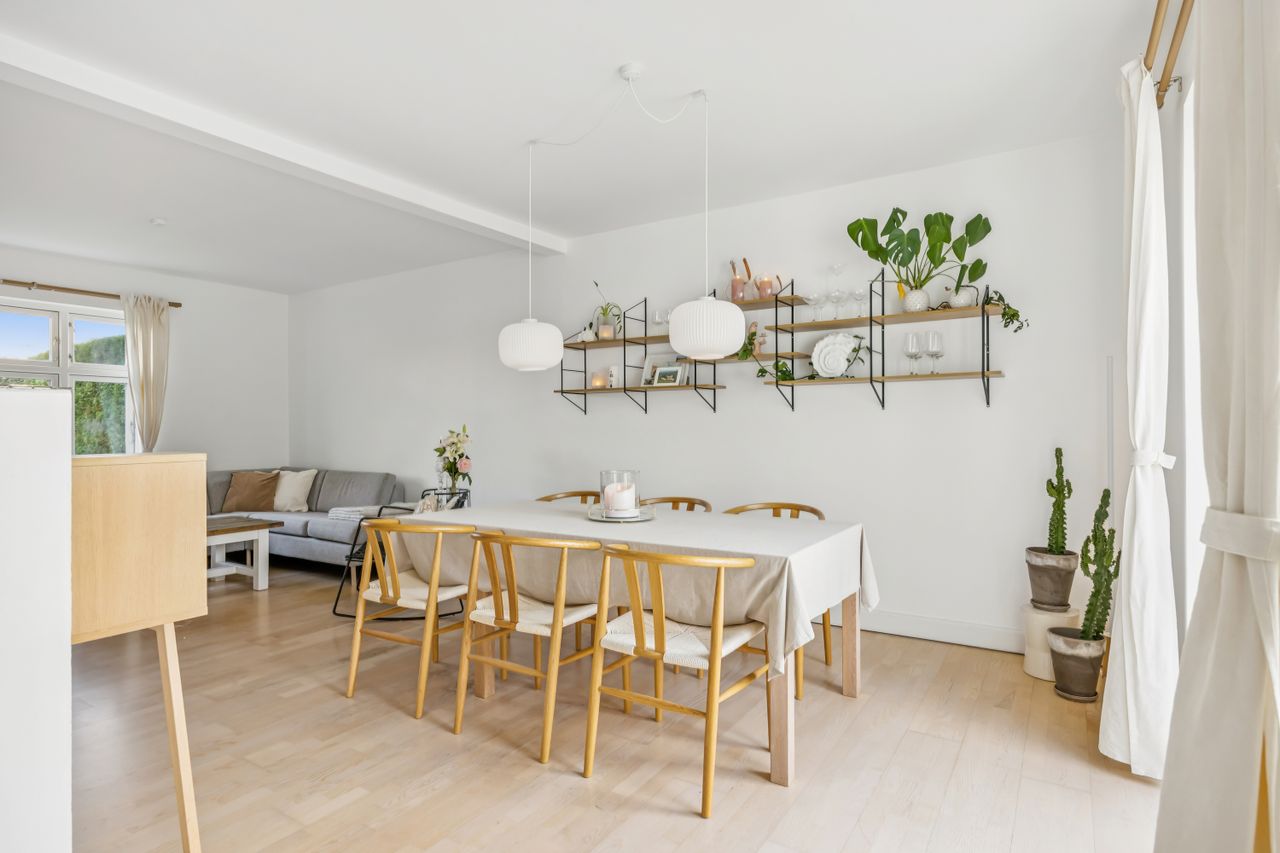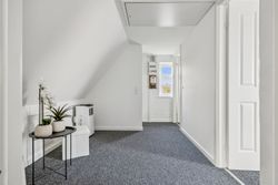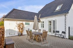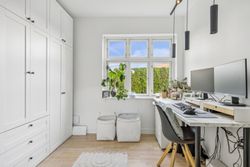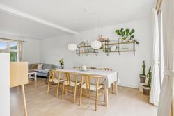 På første sal finder du tre rummelige soveværelser, der alle er lyse og indbydende. Disse værelser giver rig mulighed for personlig indretning og komfortabel overnatning for hele familien. Stueetagen byder på et åbent køkken-alrum med direkte adgang til en solrig fliseterrasse - det perfekte sted at nyde morgenkaffen eller underholde gæster på de lange sommeraftener.