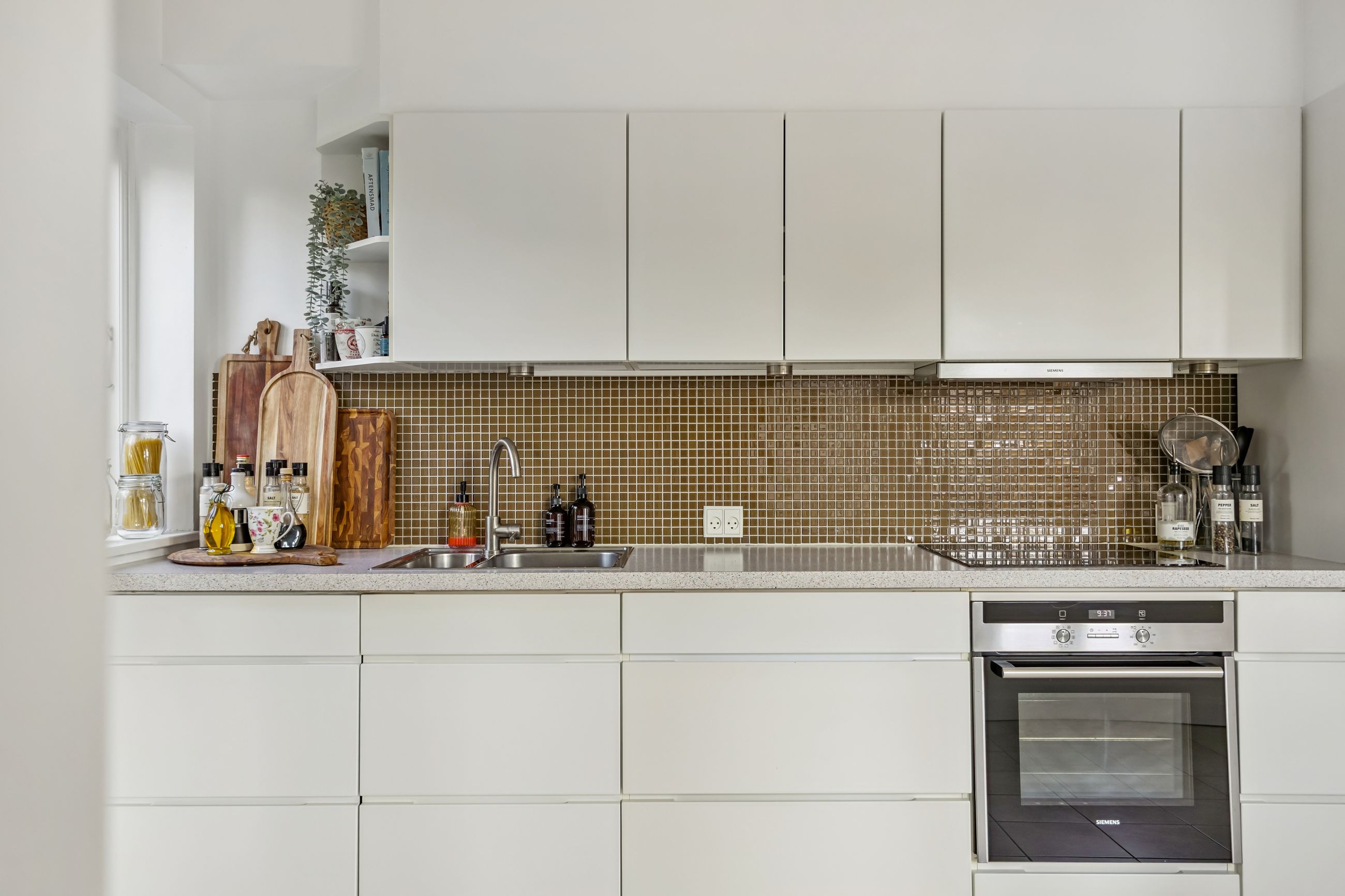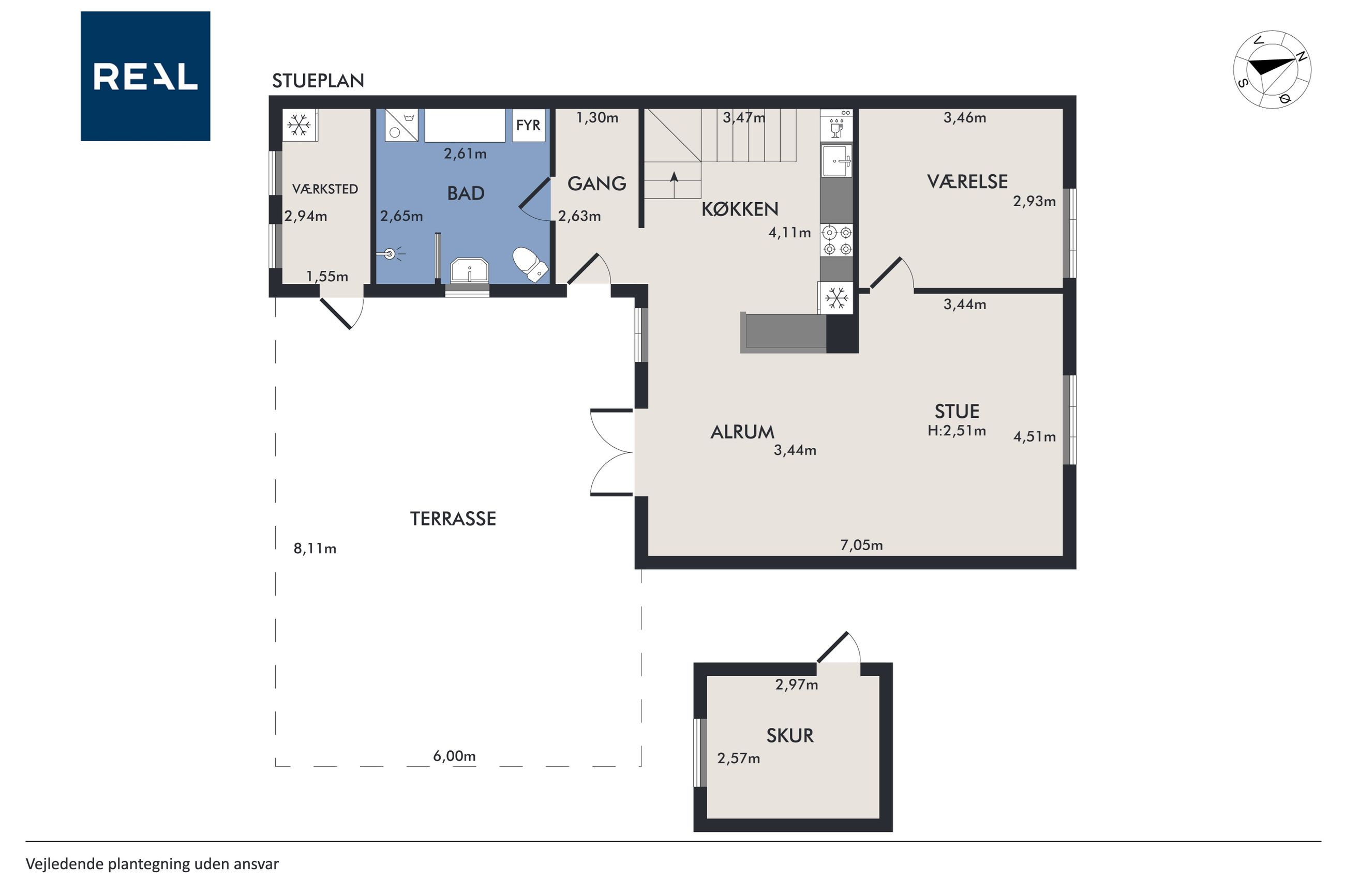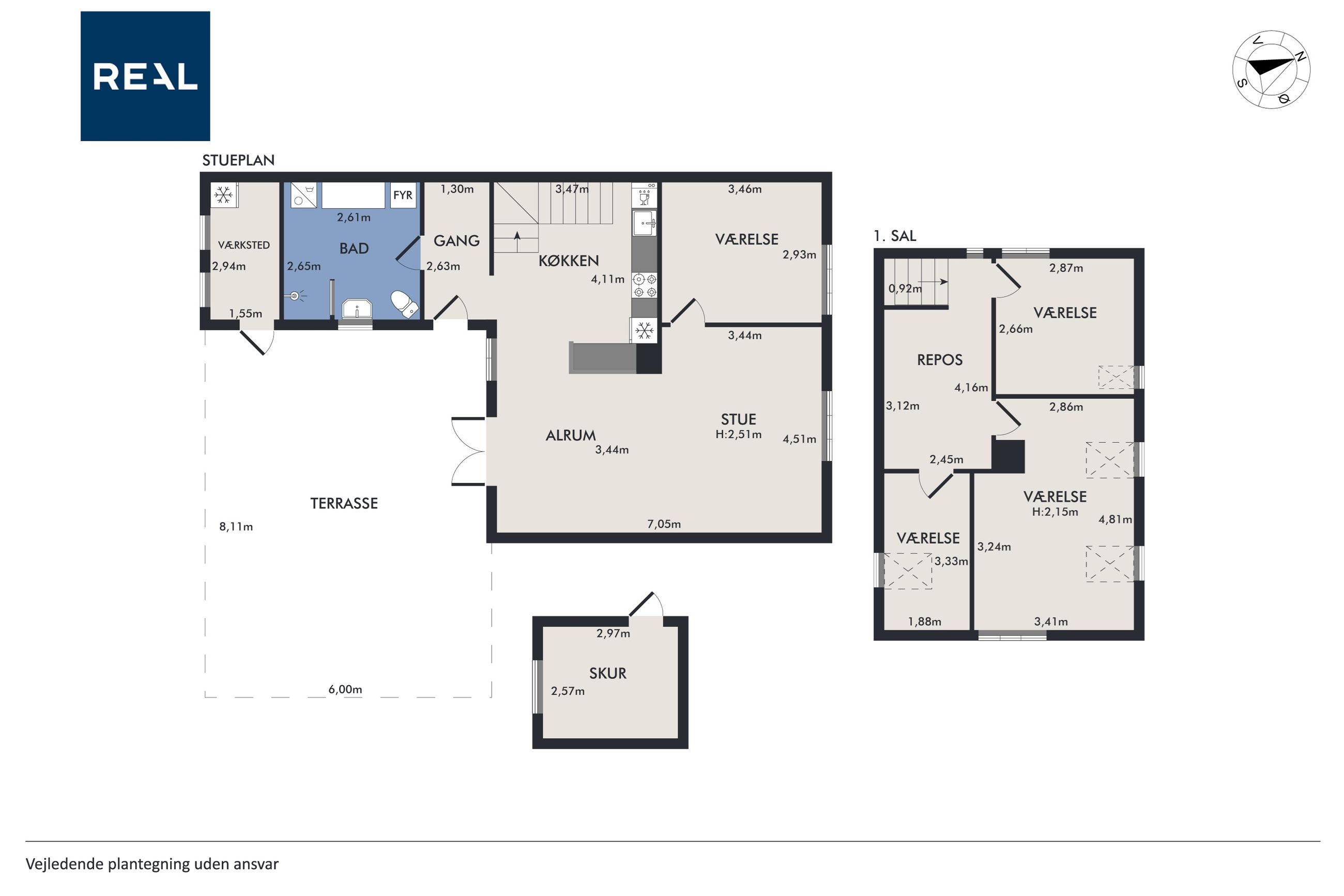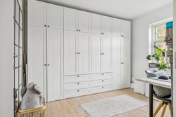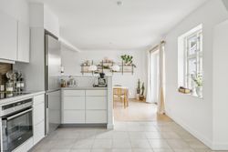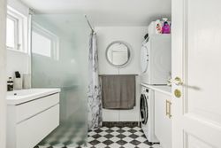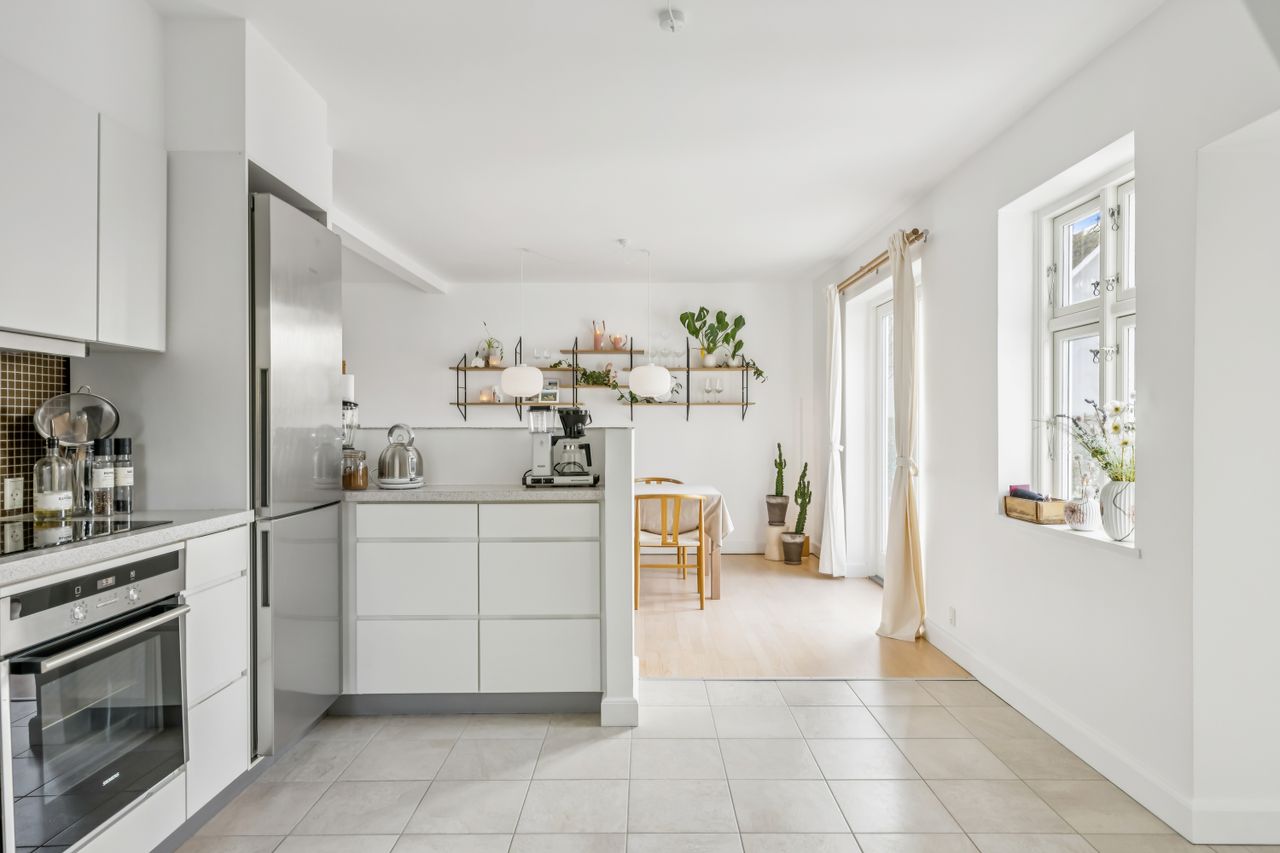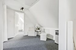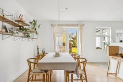 På første sal finder du tre rummelige soveværelser, der alle er lyse og indbydende. Disse værelser giver rig mulighed for personlig indretning og komfortabel overnatning for hele familien. Stueetagen byder på et åbent køkken-alrum med direkte adgang til en solrig fliseterrasse - det perfekte sted at nyde morgenkaffen eller underholde gæster på de lange sommeraftener.