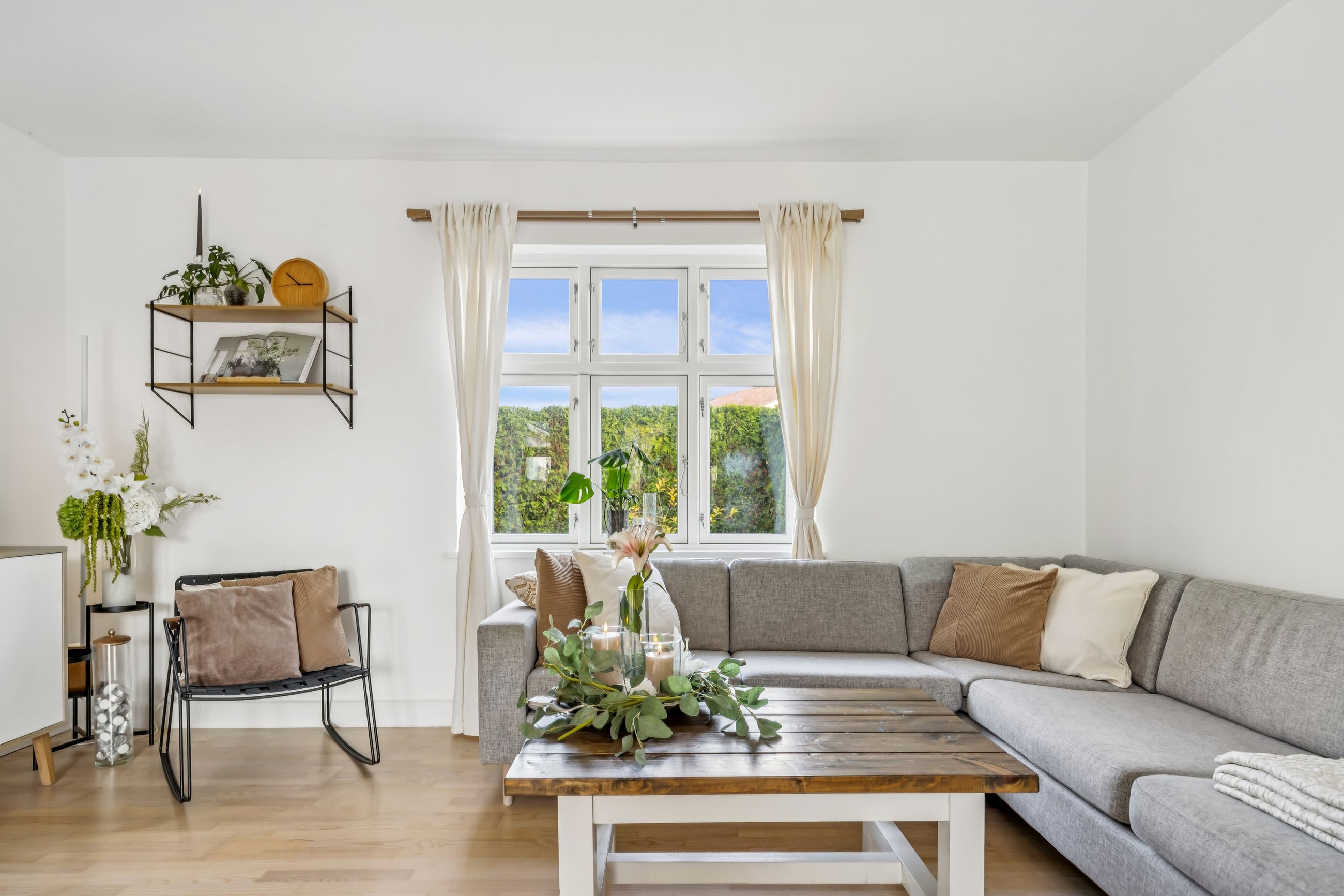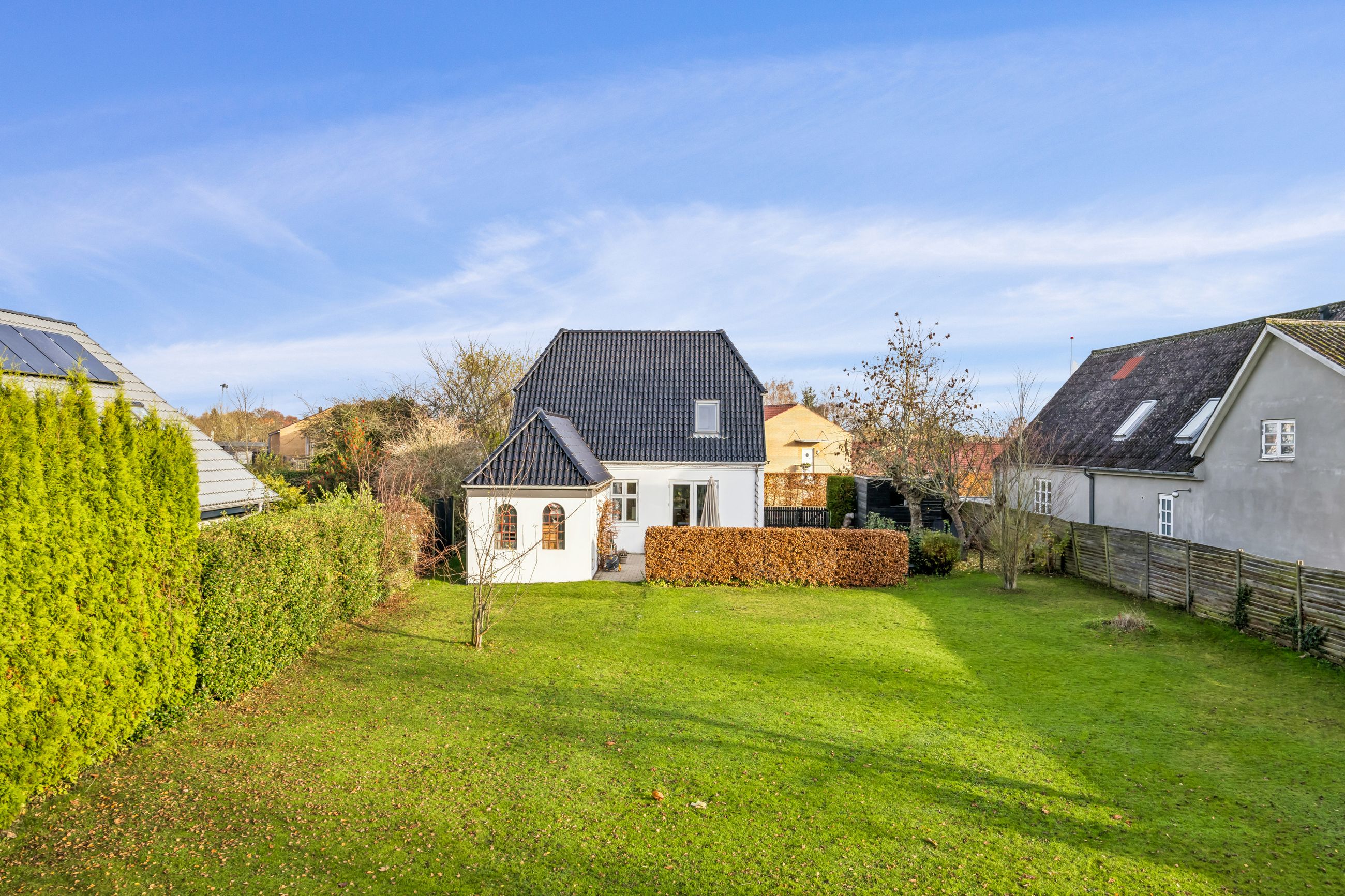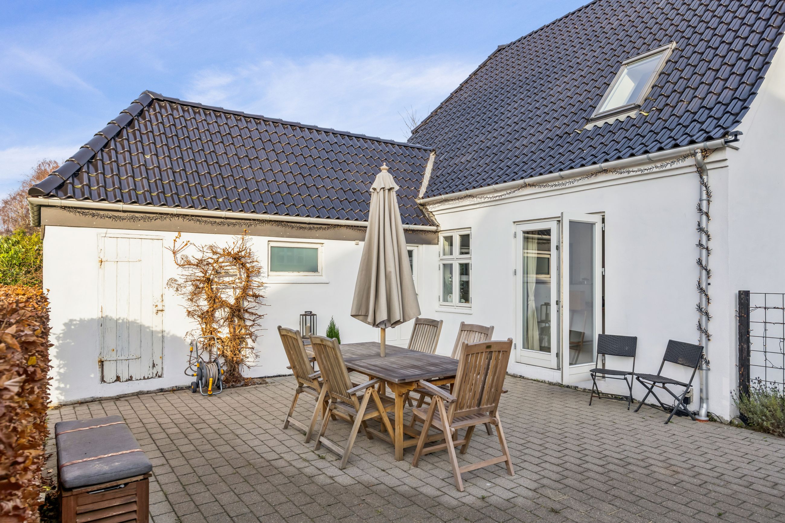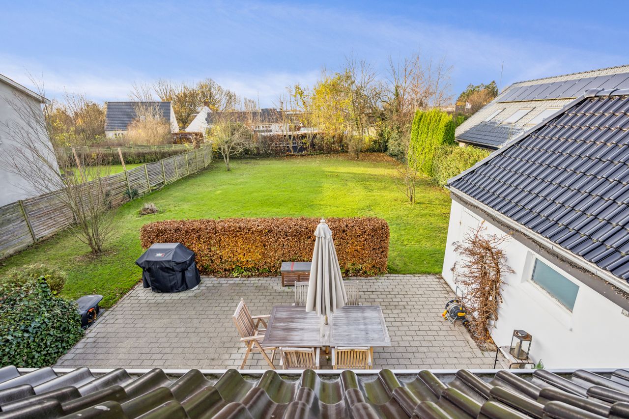 Udendørs venter en stor dejlig ugeneret have med græsplæne, der nemt kan formes efter dine ønsker - hvad enten du drømmer om blomsterbede eller en legeplads til børnene.