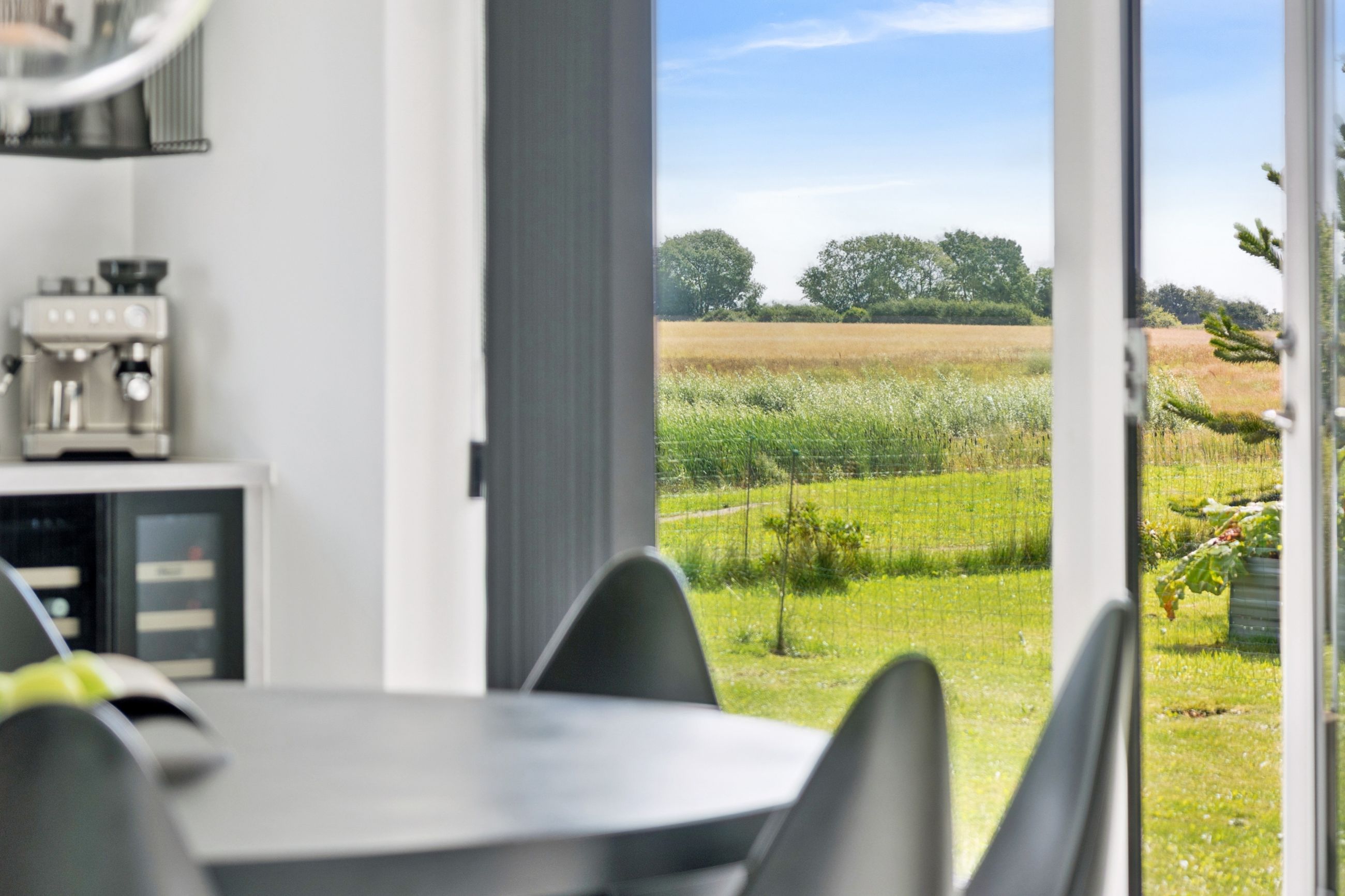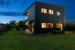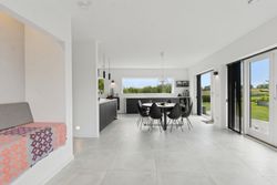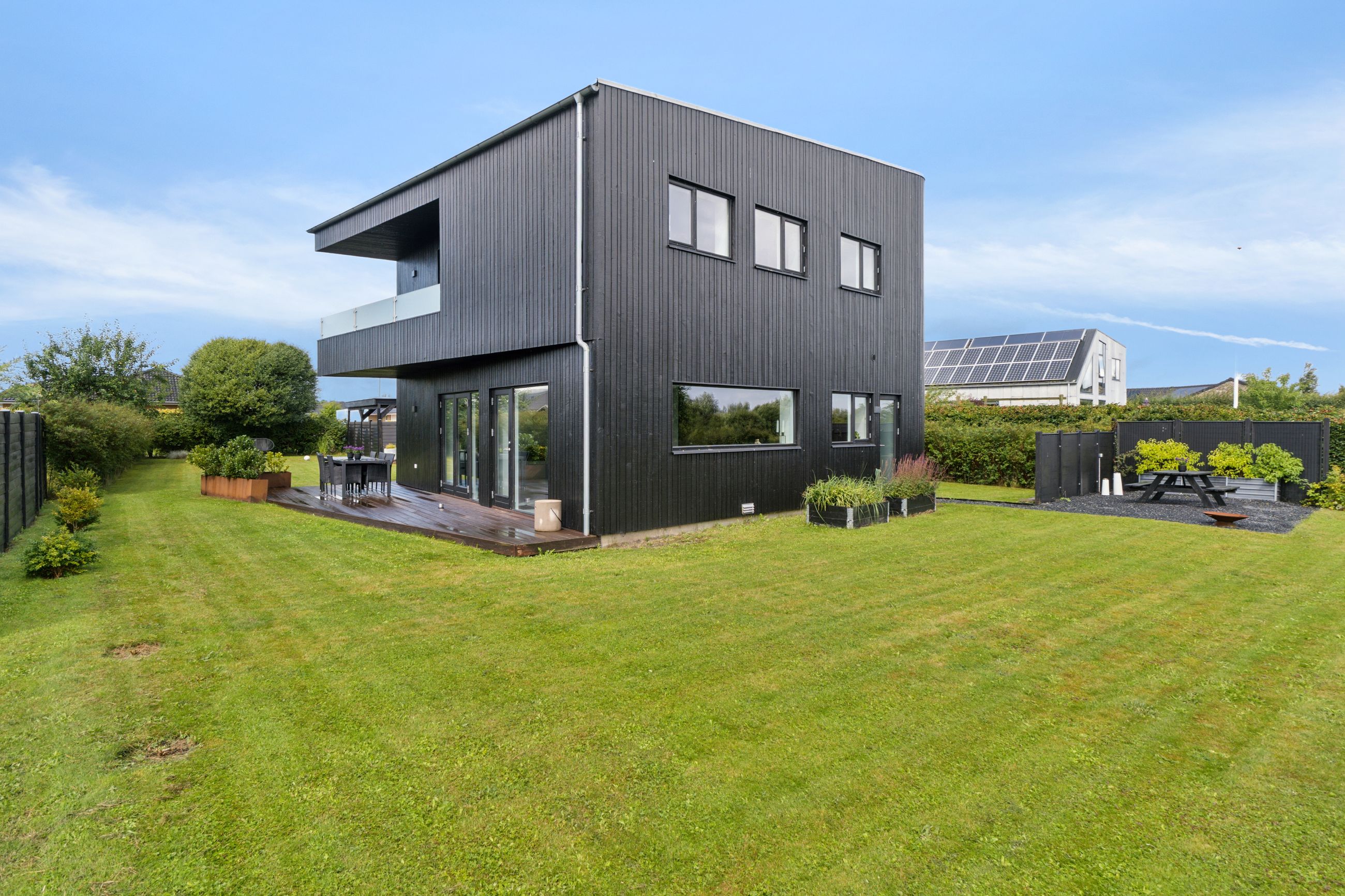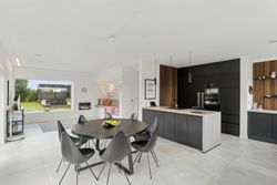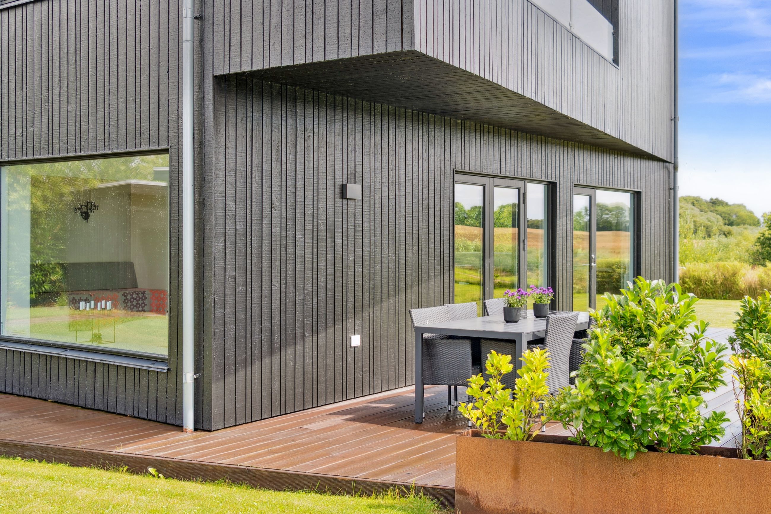 Ejendommen inkluderer også et anneks med flere anvendelsesmuligheder, udstyret med en luft-til-luft-varmepumpe for optimal komfort året rundt. Indendørs venter gulvvarme i alle rum samt eksklusive løsninger som BWT-anlæg, centralstøvsuger og Vola-armaturer.