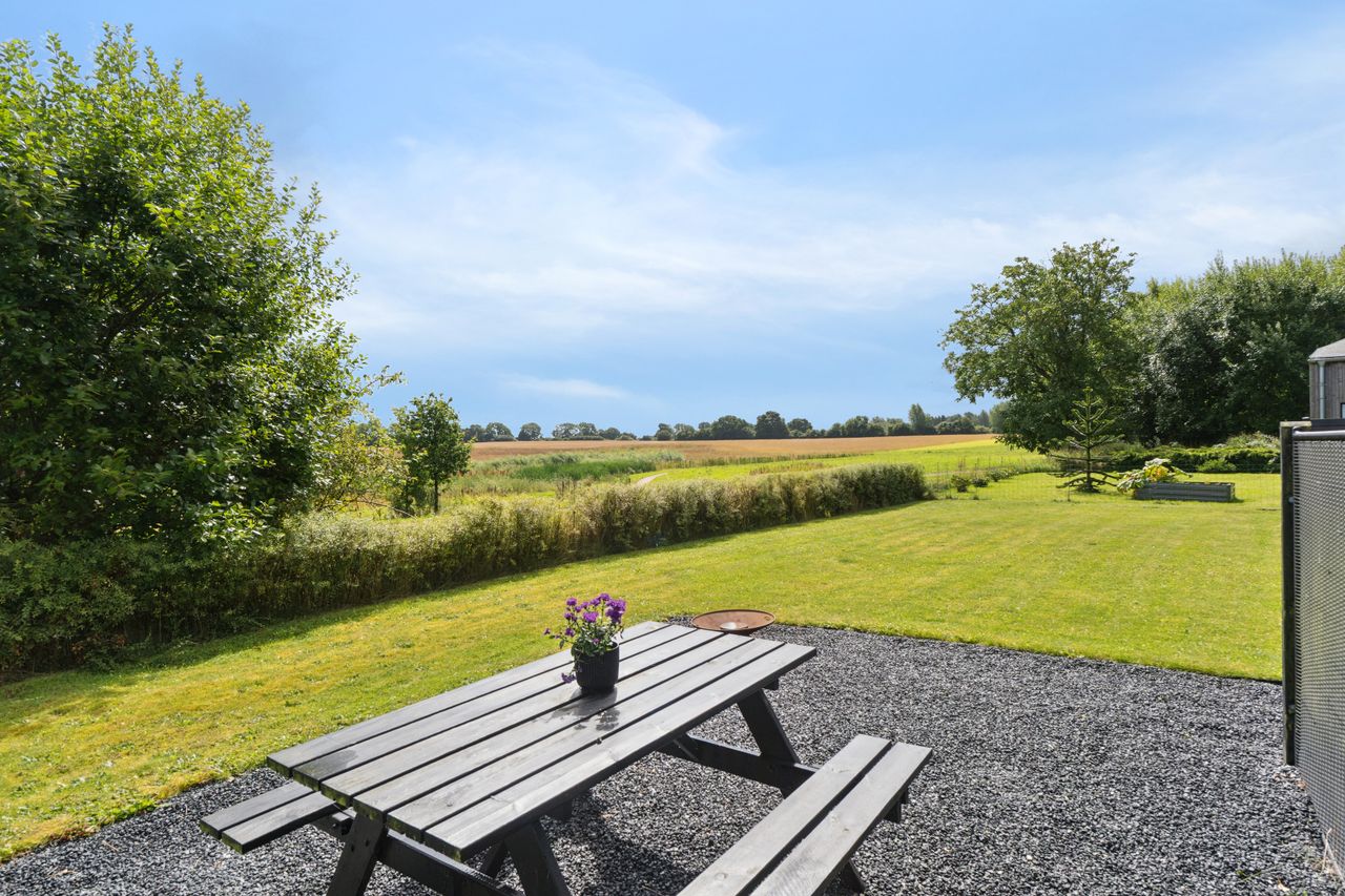 Velkommen til Svanelunden 67, en kvalitetsvilla der kombinerer moderne komfort med naturskønne omgivelser. Denne imponerende ejendom, bygget i 2008 og totalrenoveret i 2021, tilbyder et boligareal på hele 167 kvadratmeter fordelt på to plan. Når du træder ind i den elegante hall, bliver du straks mødt af et stilfuldt rum, hvor der er plads til sko og overtøj. Når du bevæger dig længere ind i boligen, kommer du til det smukke køkken/alrum, hvor store vinduespartier åbner op mod haven og de omkringliggende grønne marker. Det naturlige lysindfald skaber en lys og indbydende atmosfære.