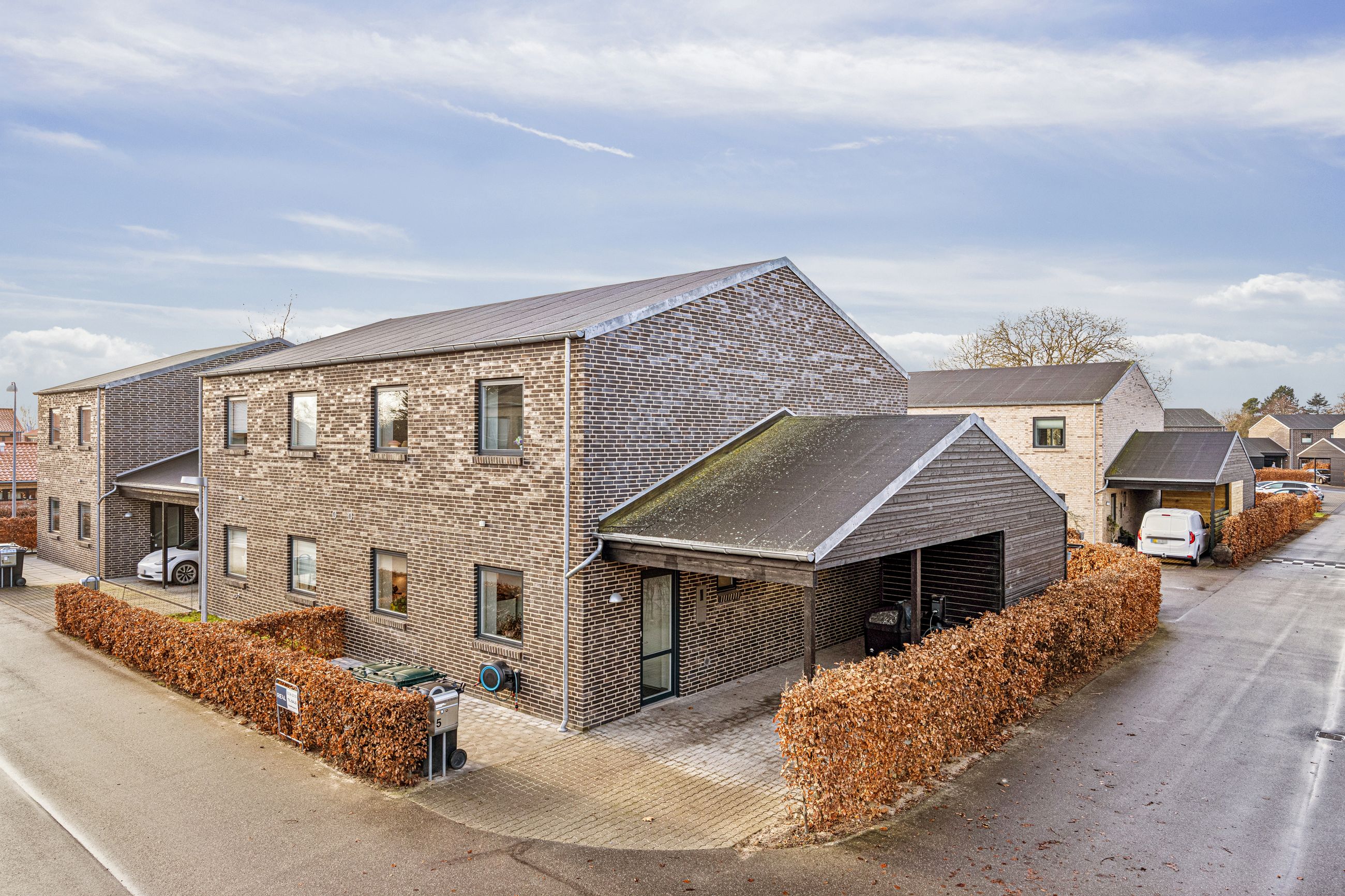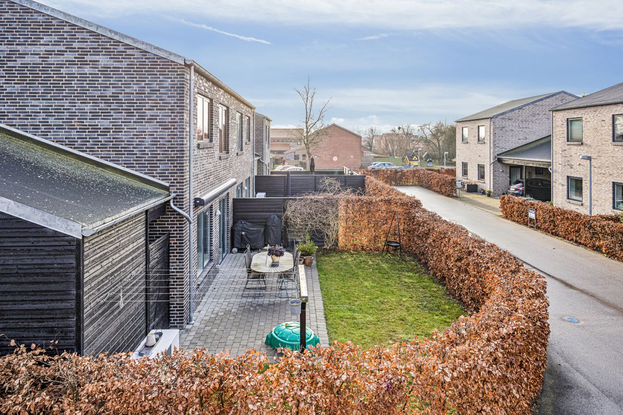 Udenfor venter en nem og overskuelig have samt en carport med isoleret skur – perfekt til opbevaring eller hobbyprojekter. Foran huset findes endnu en terrasse, ideel til morgenkaffen eller børnenes leg.