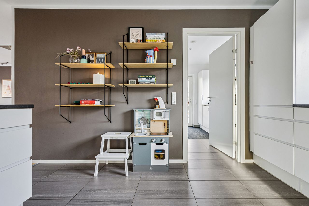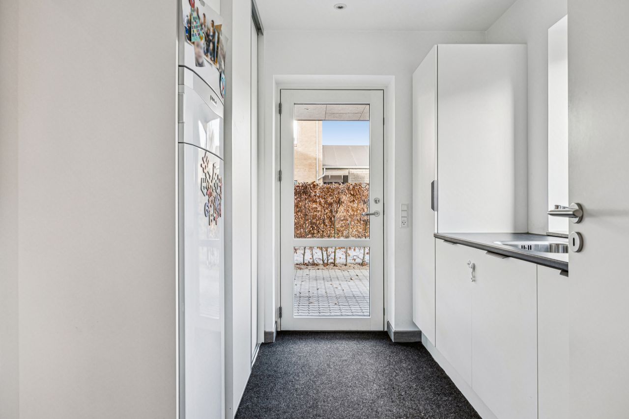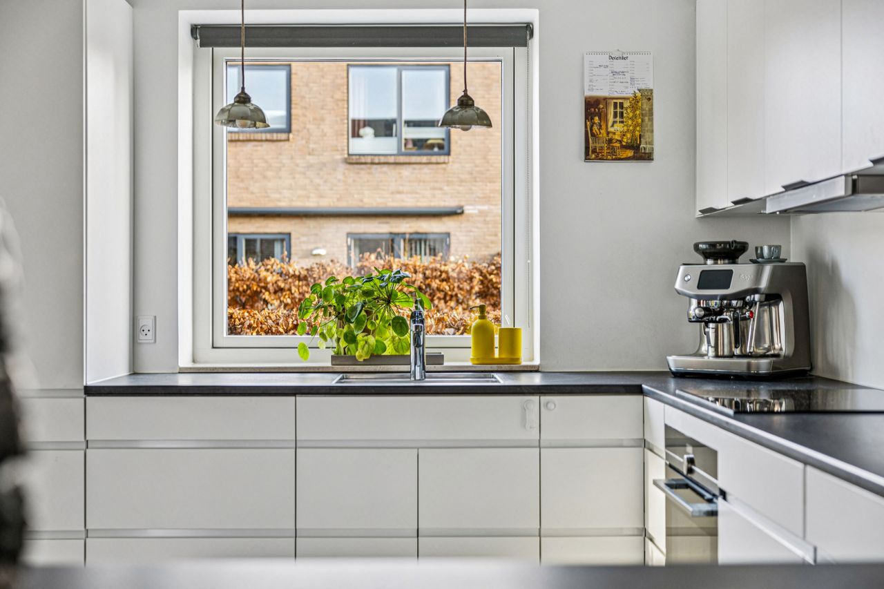 Huset imponerer fra første øjekast med sit flotte Svane køkken, der tilbyder rigelig skabsplads og ligger i åben forbindelse med det store køkken-alrum. Her er der plads til både madlavning og hyggelige stunder med familien. Fra alrummet er der direkte udgang til en vestvendt terrasse, hvor man kan nyde de lange sommeraftener eller blot slappe af efter en travl dag. Det gode lysindfald gennem de store vinduespartier skaber en lys og indbydende atmosfære i hele huset.