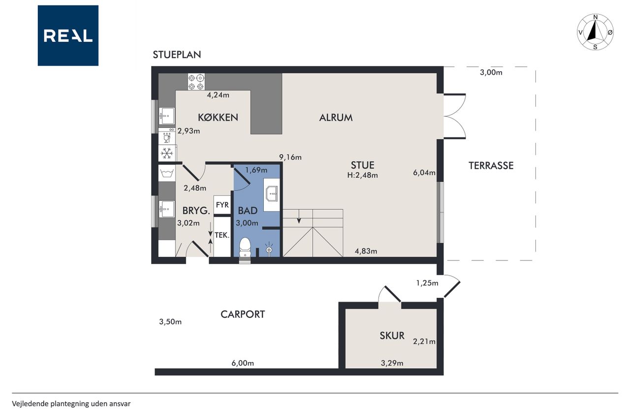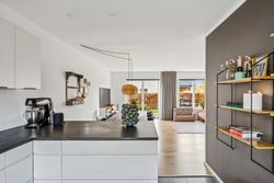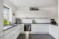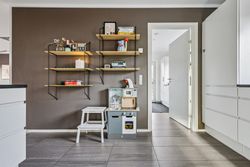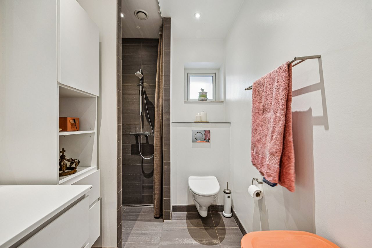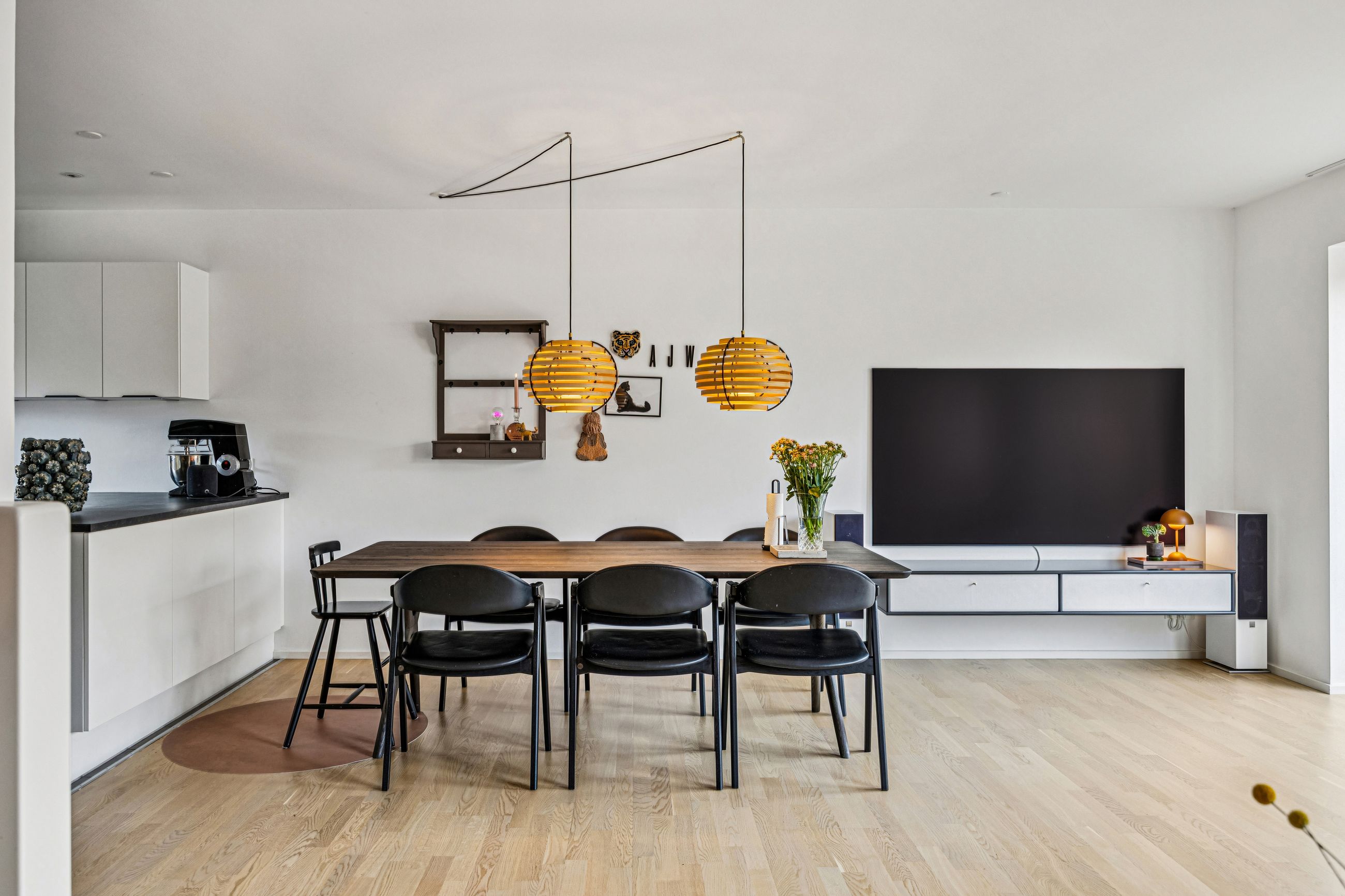 Huset imponerer fra første øjekast med sit flotte Svane køkken, der tilbyder rigelig skabsplads og ligger i åben forbindelse med det store køkken-alrum. Her er der plads til både madlavning og hyggelige stunder med familien. Fra alrummet er der direkte udgang til en vestvendt terrasse, hvor man kan nyde de lange sommeraftener eller blot slappe af efter en travl dag. Det gode lysindfald gennem de store vinduespartier skaber en lys og indbydende atmosfære i hele huset.