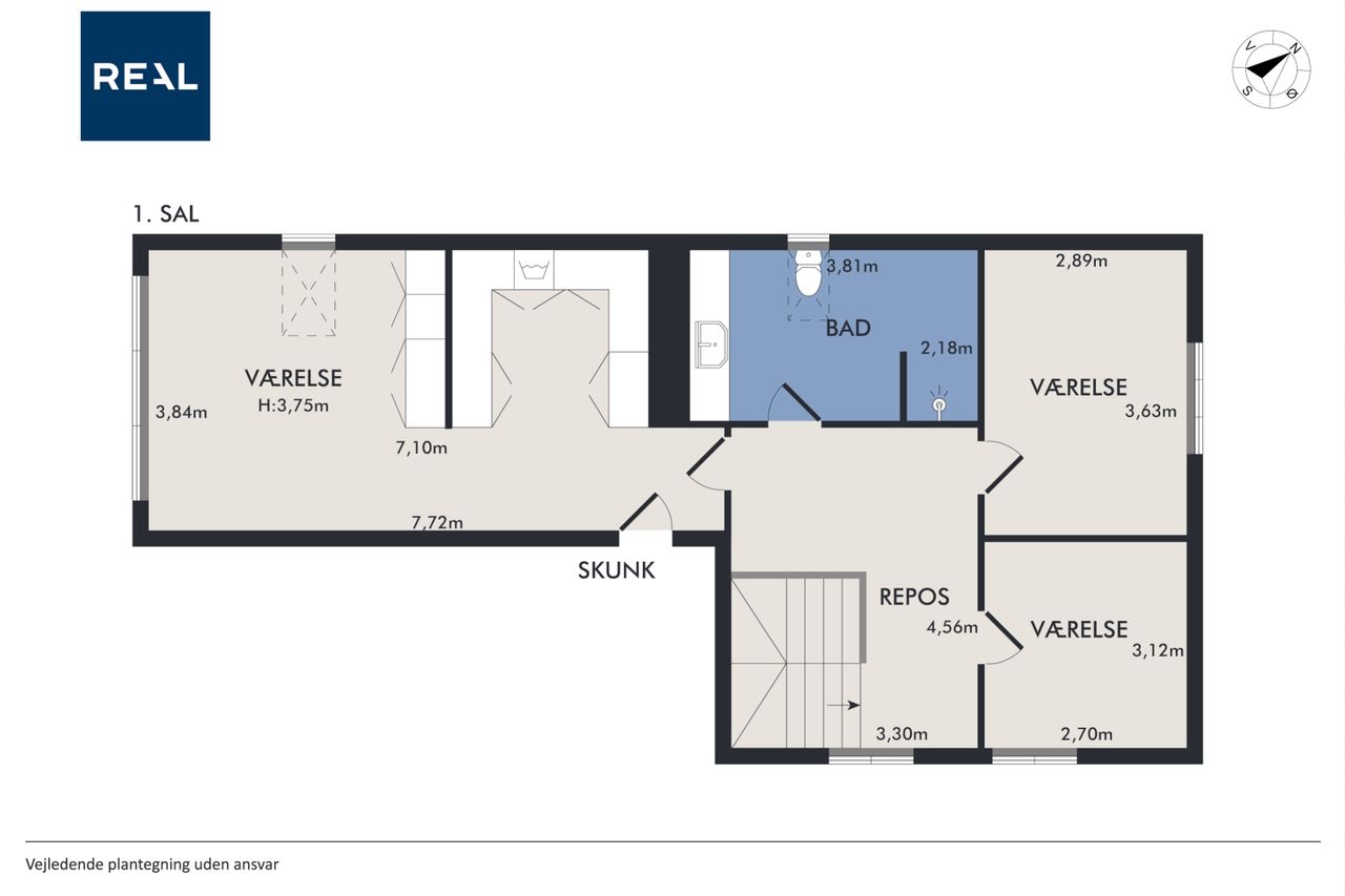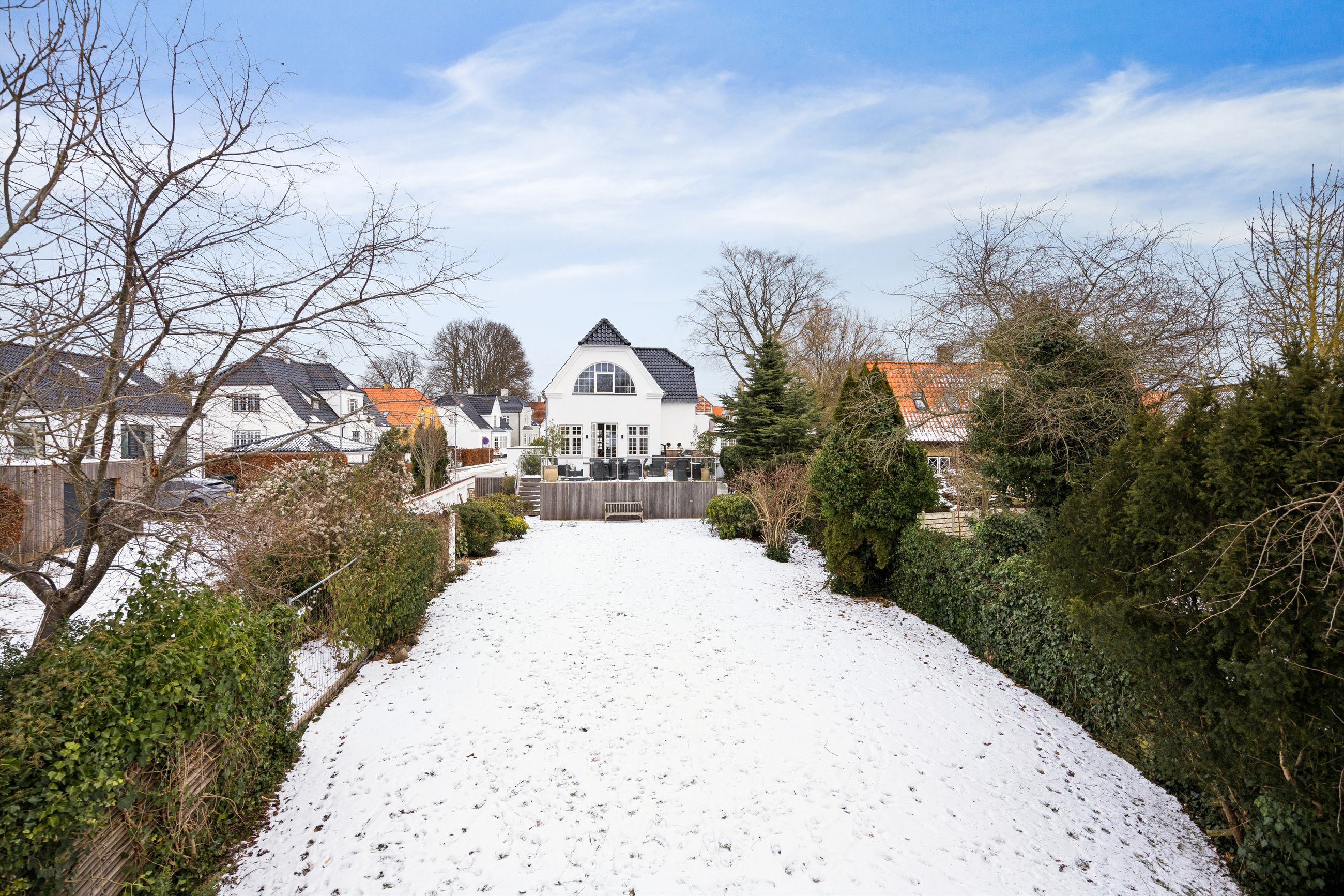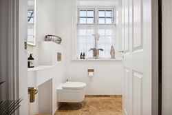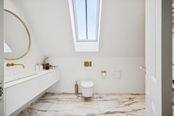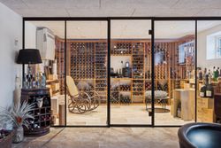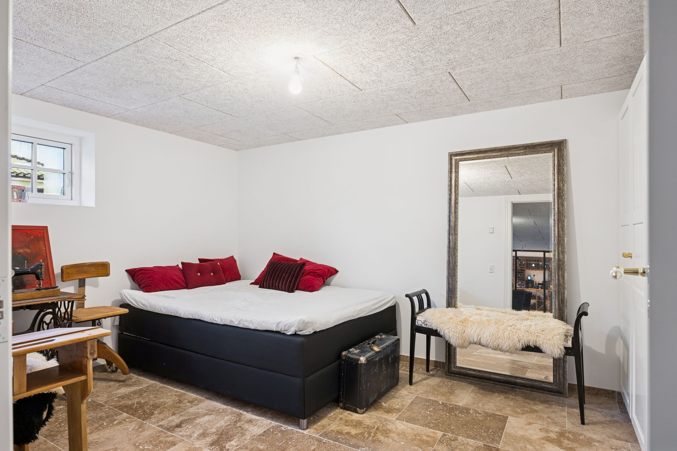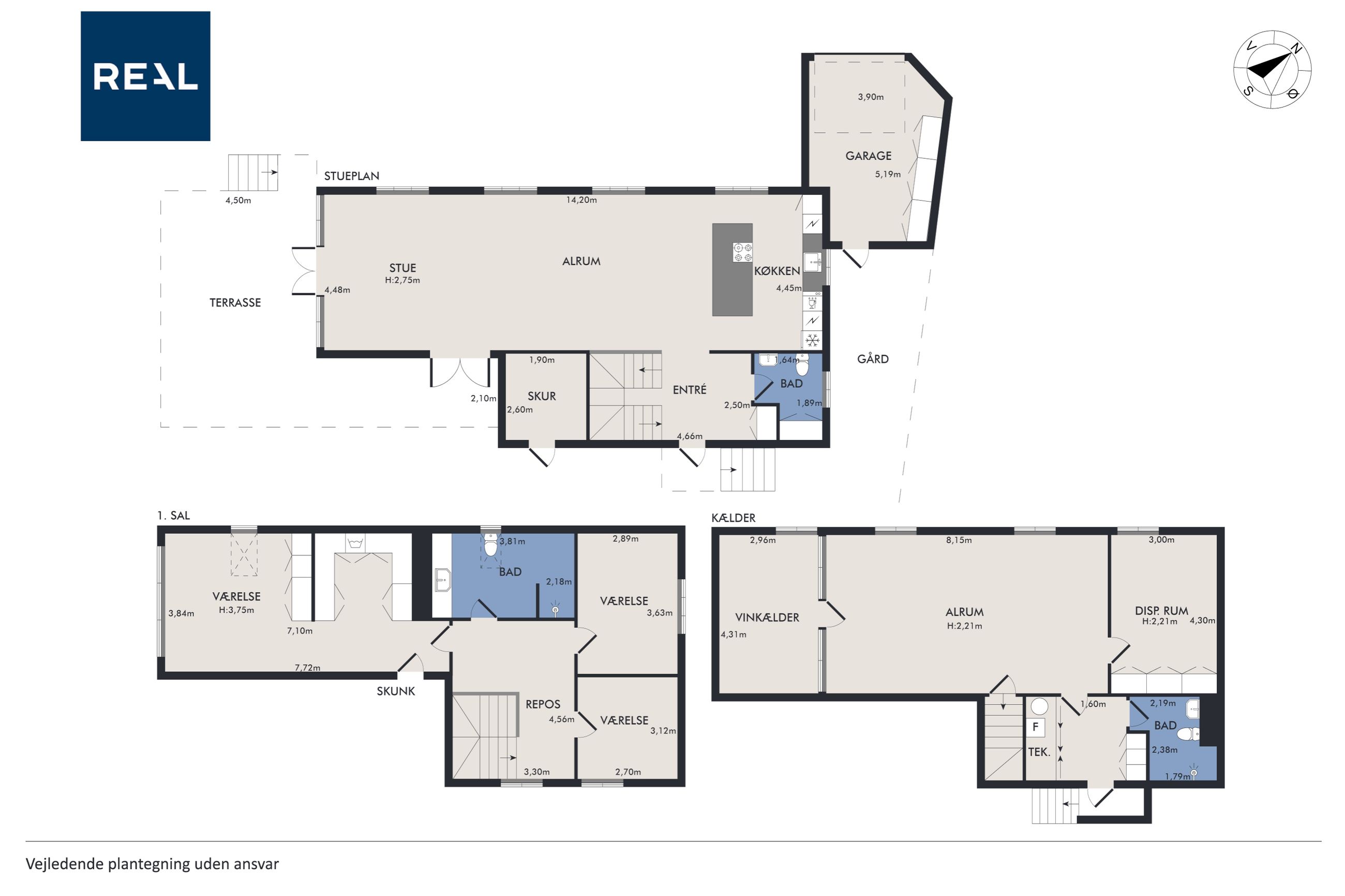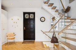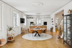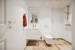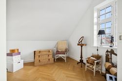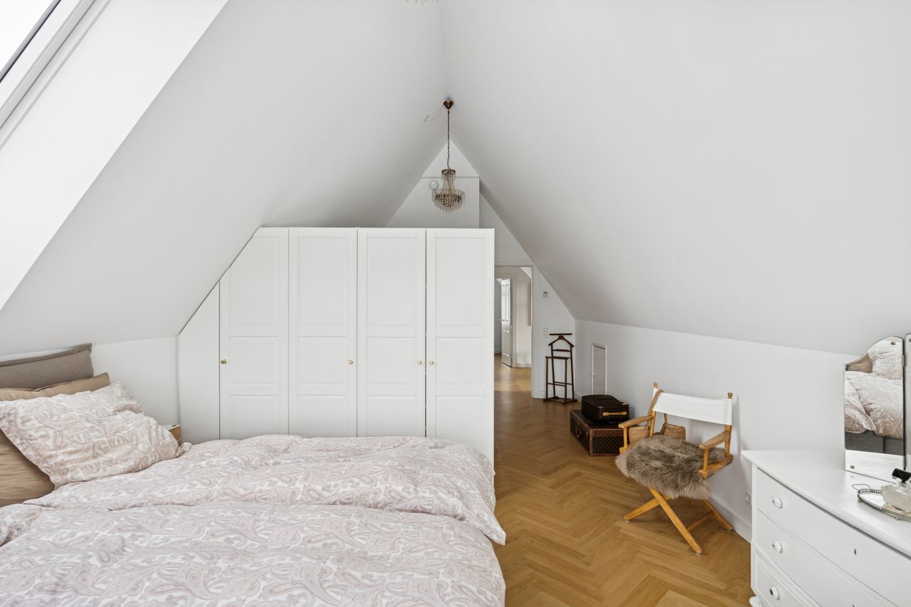 På første sal finder du master bedroom med eget walk-in closet samt to yderligere værelser, der alle har adgang til et stort badeværelse udstyret med kvalitetsmaterialer. Kælderen tilbyder et stort hobbyrum perfekt til kreative udfoldelser eller hjemmekontor, en vinkælder for vinentusiasten samt yderliger disponibelt rum og badeværelse.