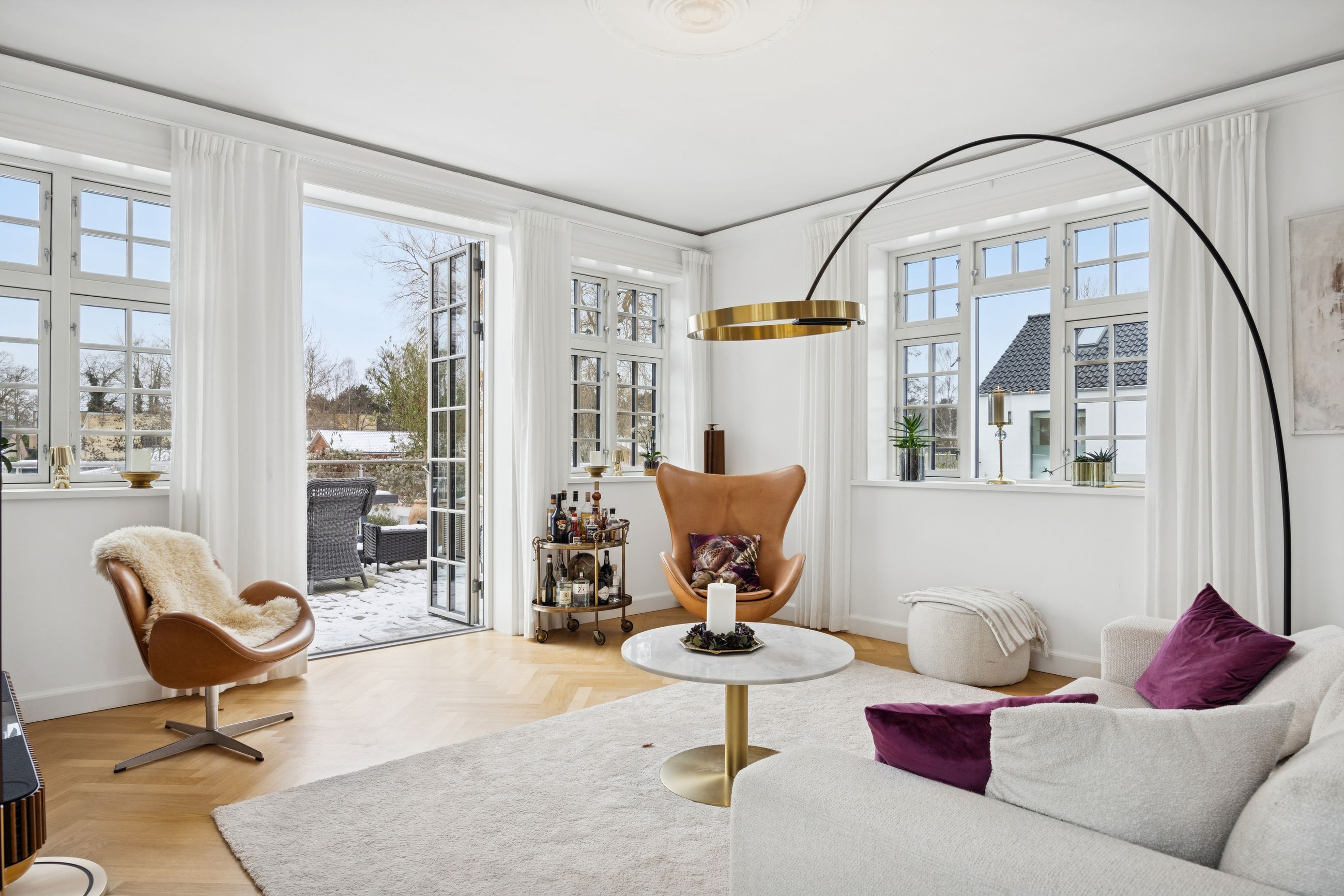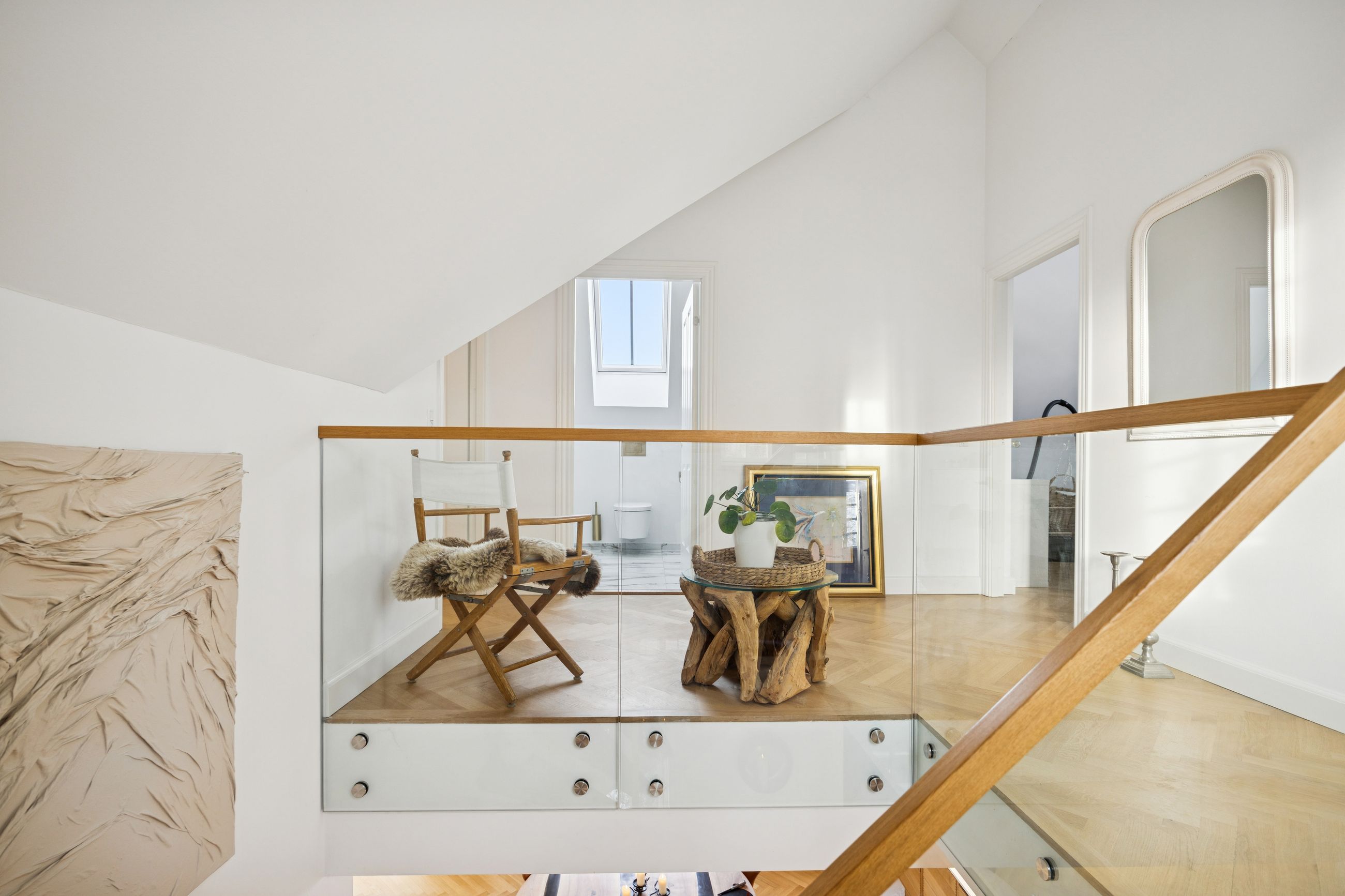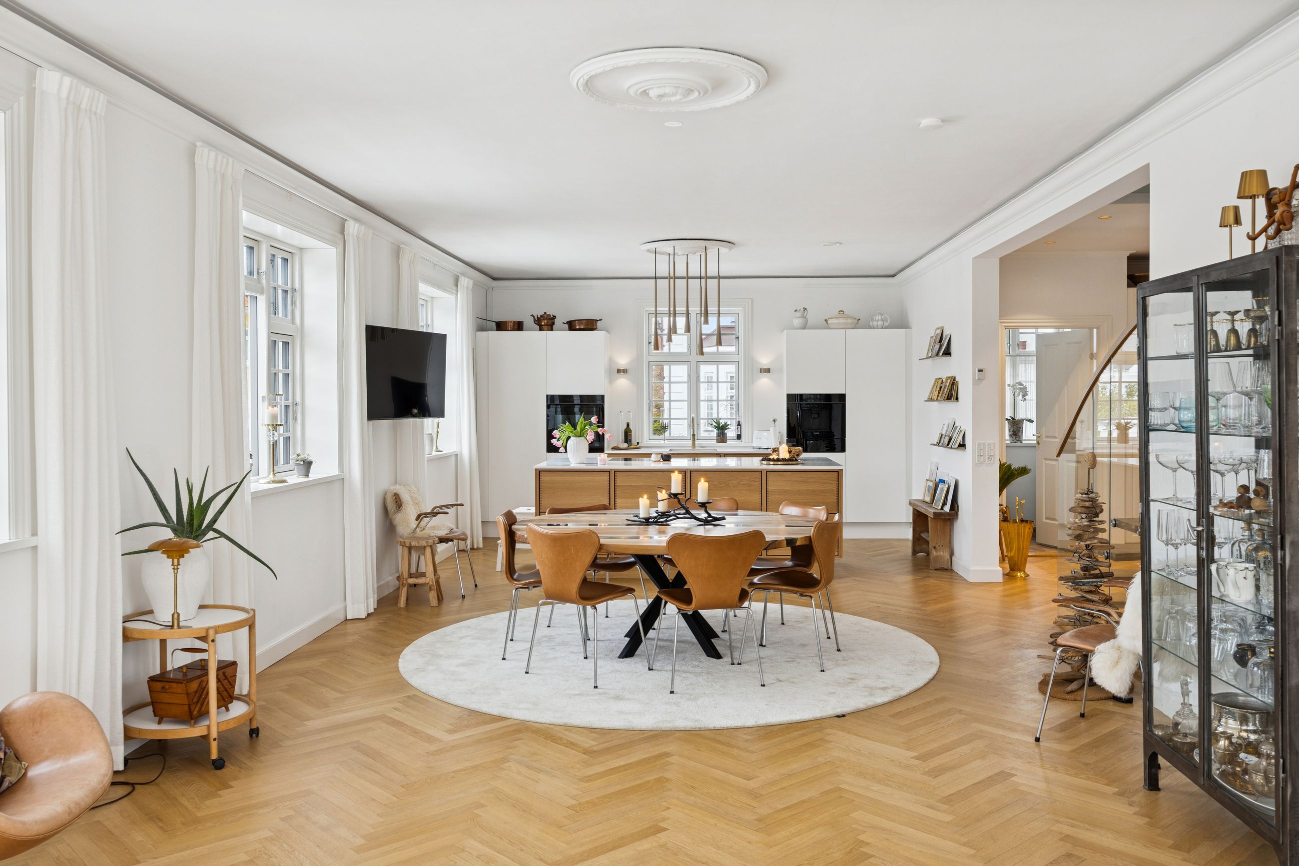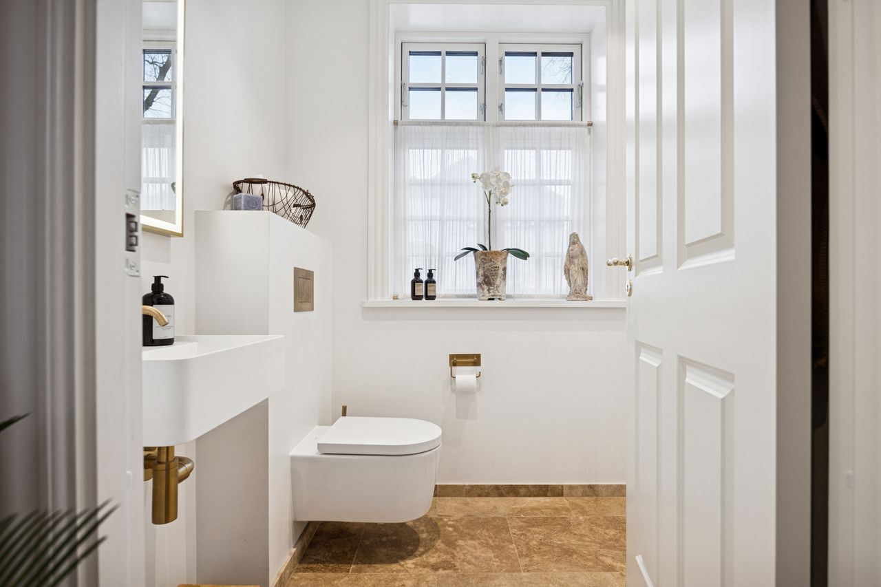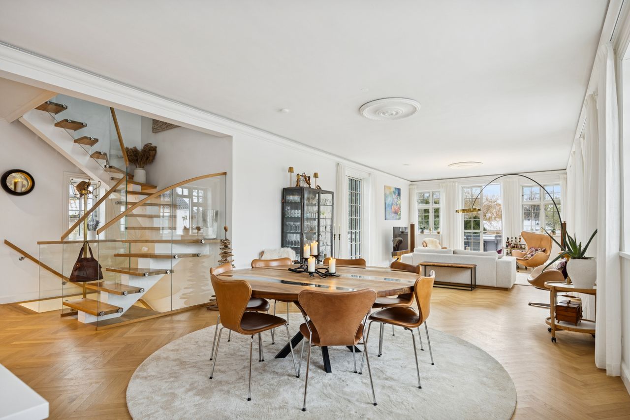 Det store leverum er husets hjerte, hvor det åbne køkken/alrum med snedkerkøkken fra Svane glider harmonisk sammen med stuen. Herfra kan du nyde den betagende udsigt over Køge Å gennem de store vinduespartier. Stueplanet rummer også et praktisk gæstetoilet for ekstra komfort ved større selskaber eller dagligdagsbesøg.