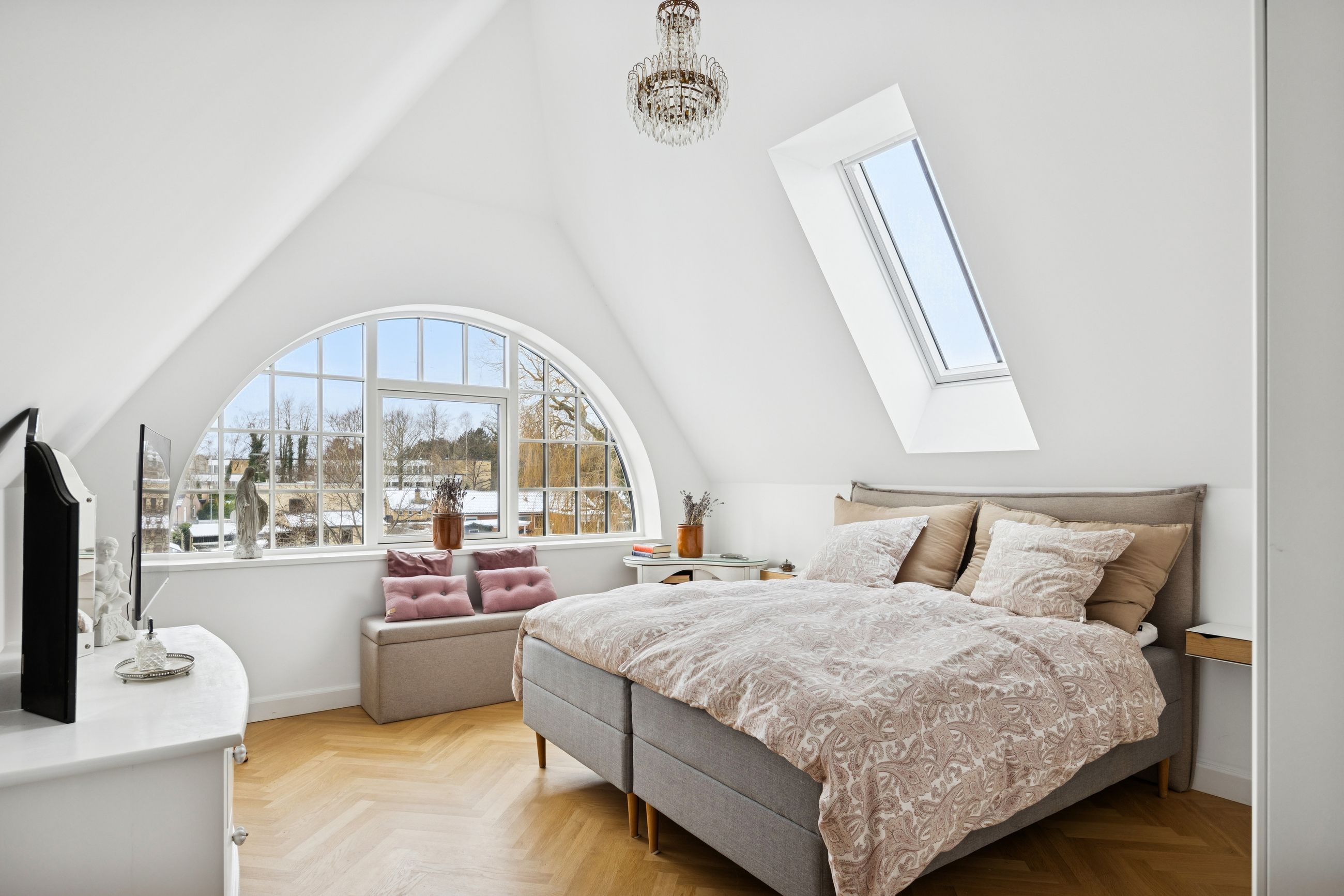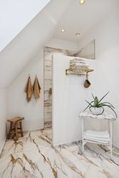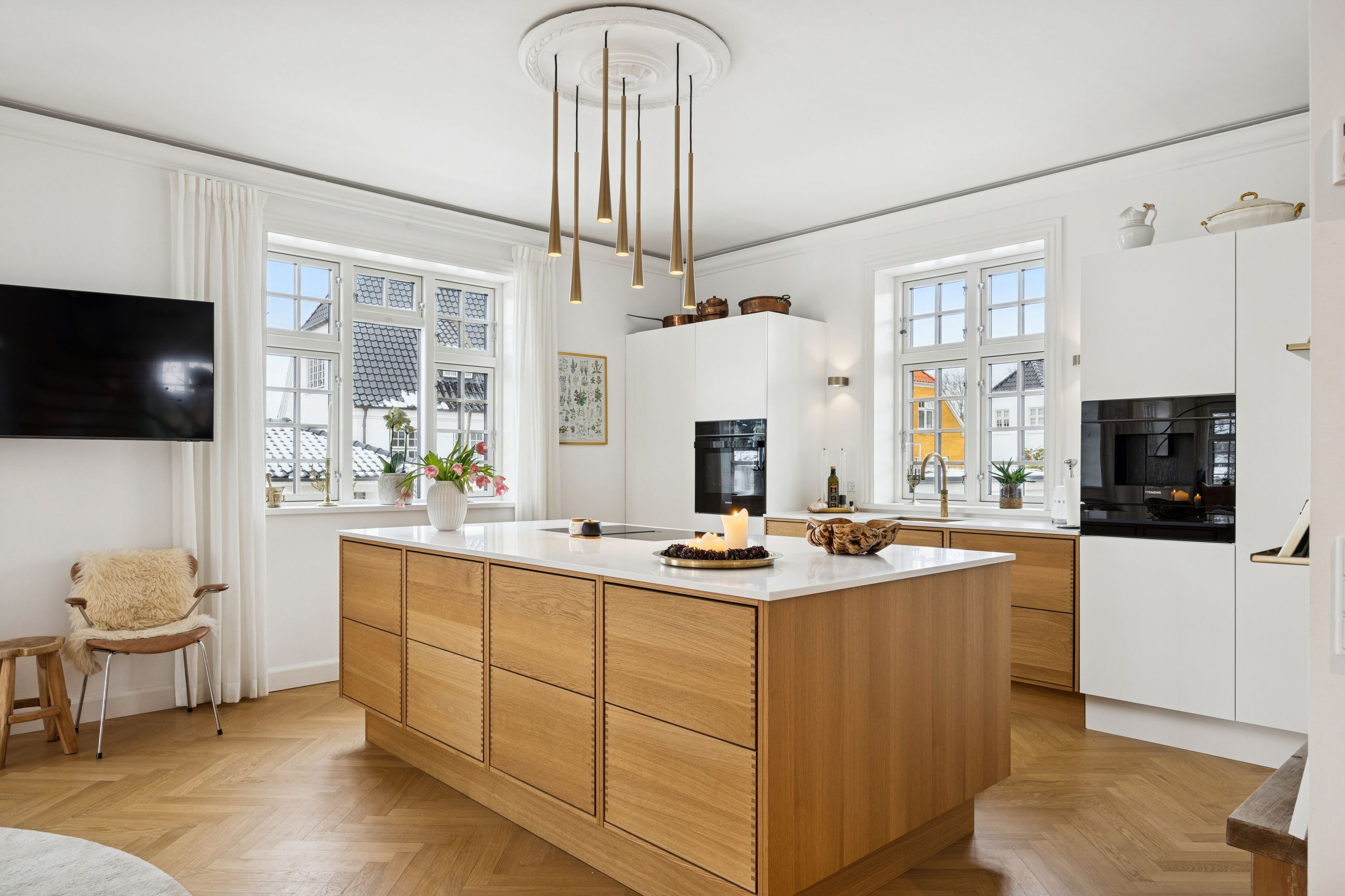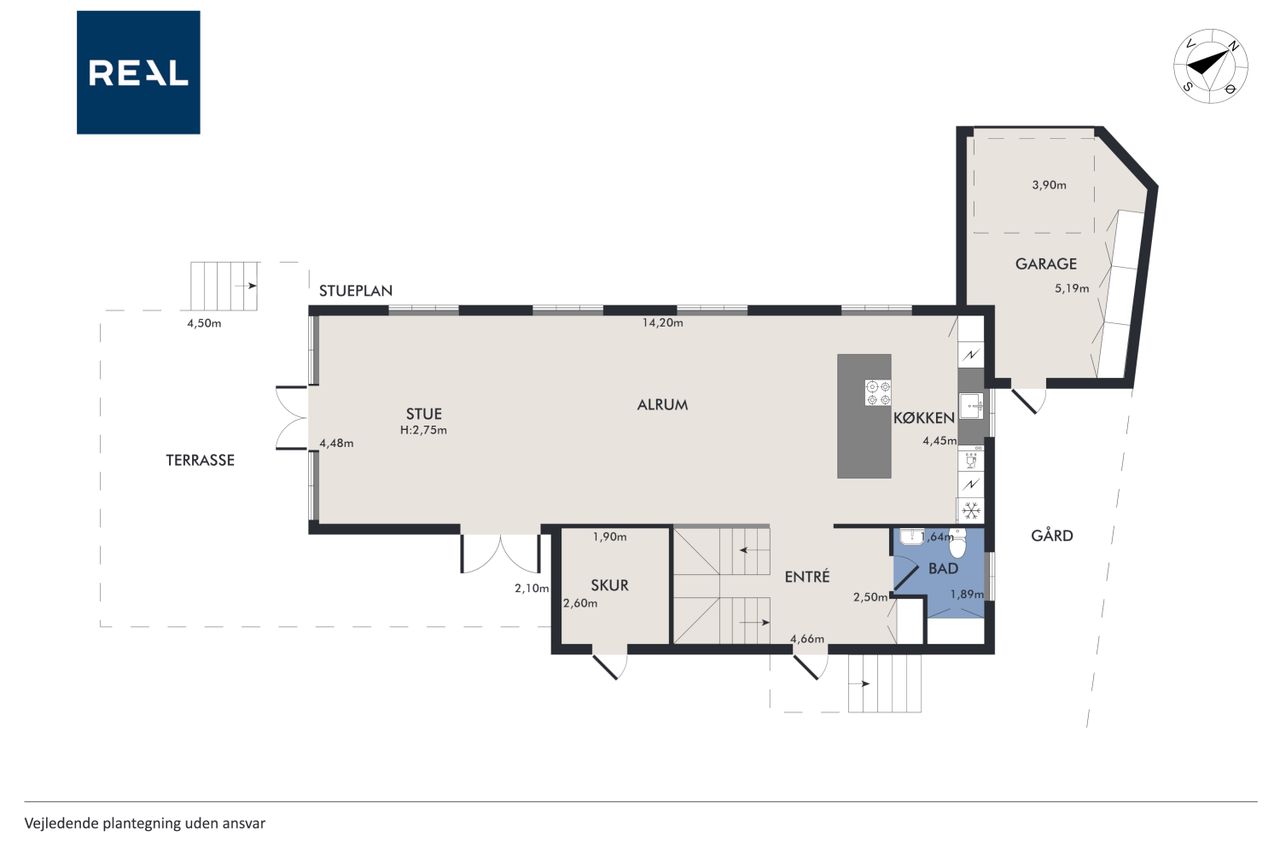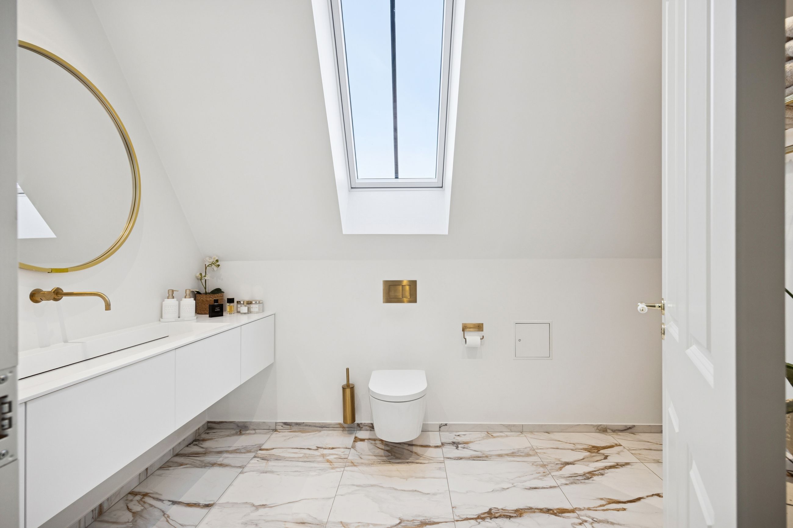 Det store leverum er husets hjerte, hvor det åbne køkken/alrum med snedkerkøkken fra Svane glider harmonisk sammen med stuen. Herfra kan du nyde den betagende udsigt over Køge Å gennem de store vinduespartier. Stueplanet rummer også et praktisk gæstetoilet for ekstra komfort ved større selskaber eller dagligdagsbesøg.