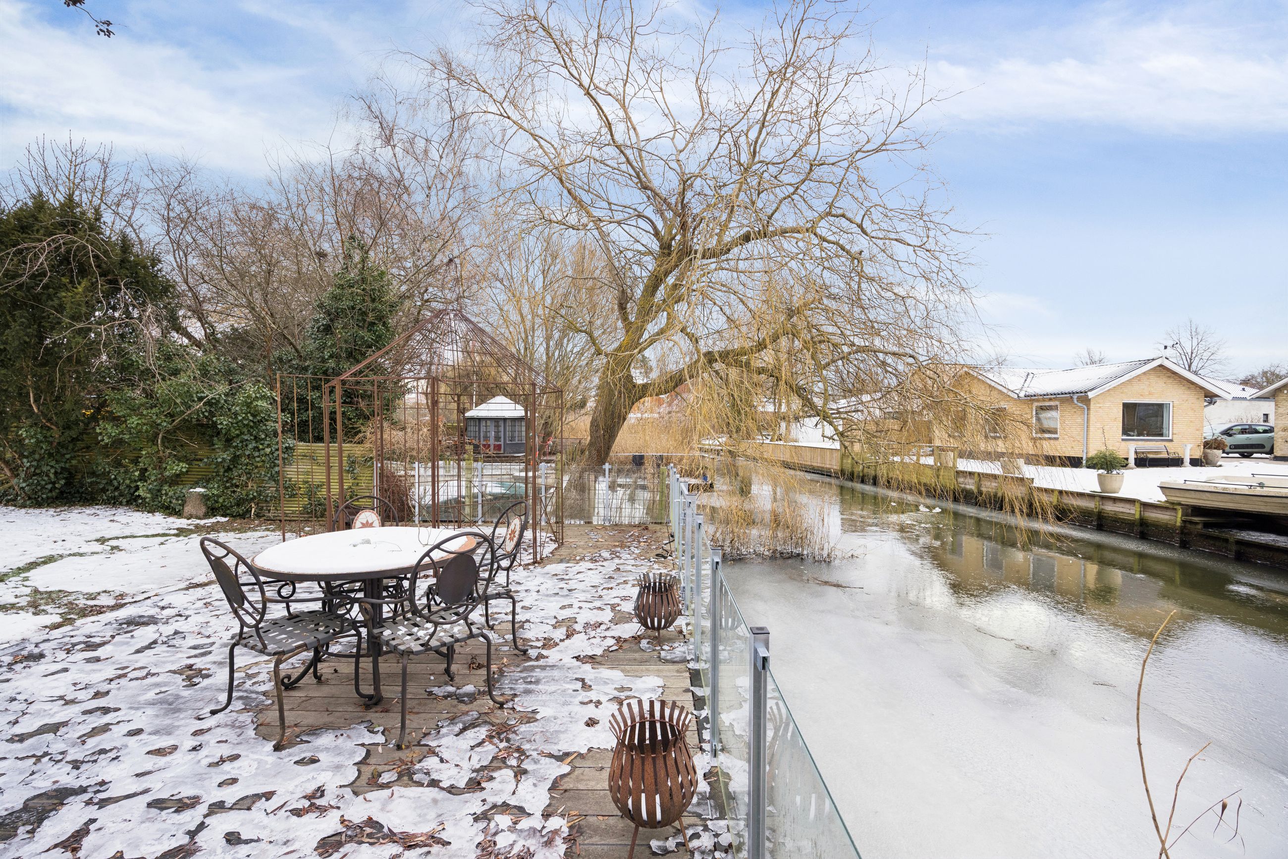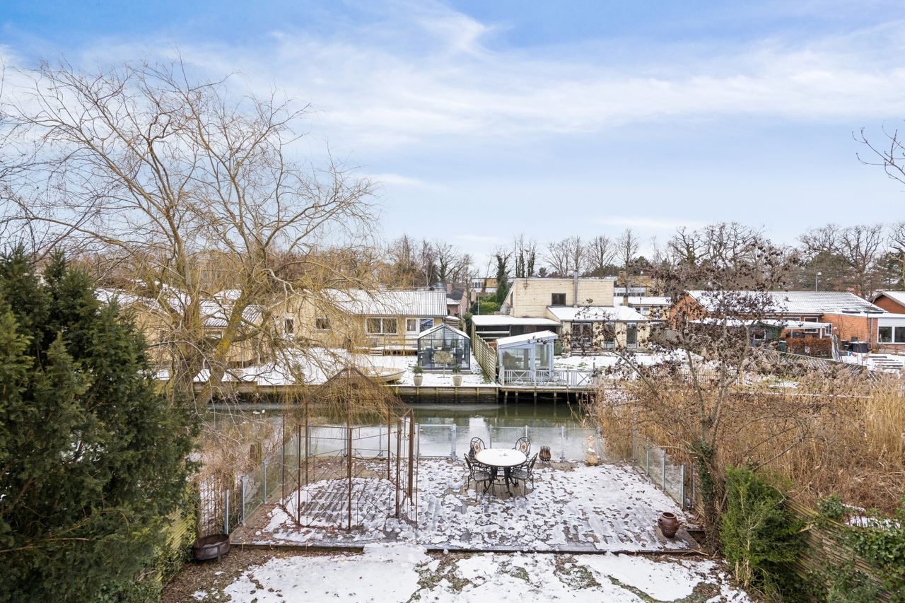 Udenfor venter en sydvendt have med flere terrasser, hvoraf én ligger direkte ved åen - ideel for dem der elsker at sejle eller blot ønsker at nyde naturens ro fra egen grund. Ejendommen har desuden garageplads og ligger centralt placeret tæt på Køge Torv, indkøbsmuligheder og skoler - alt sammen inden for gåafstand.