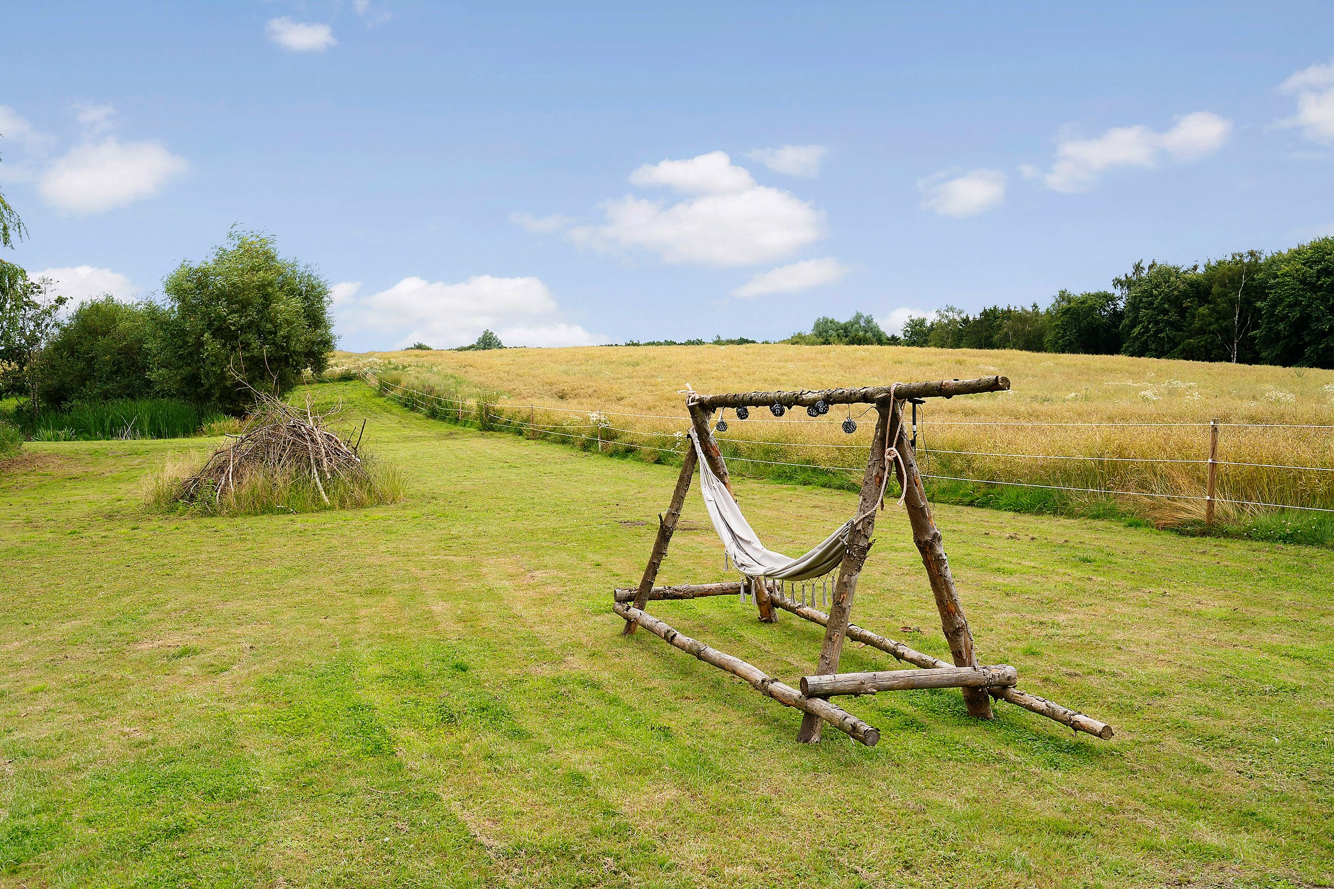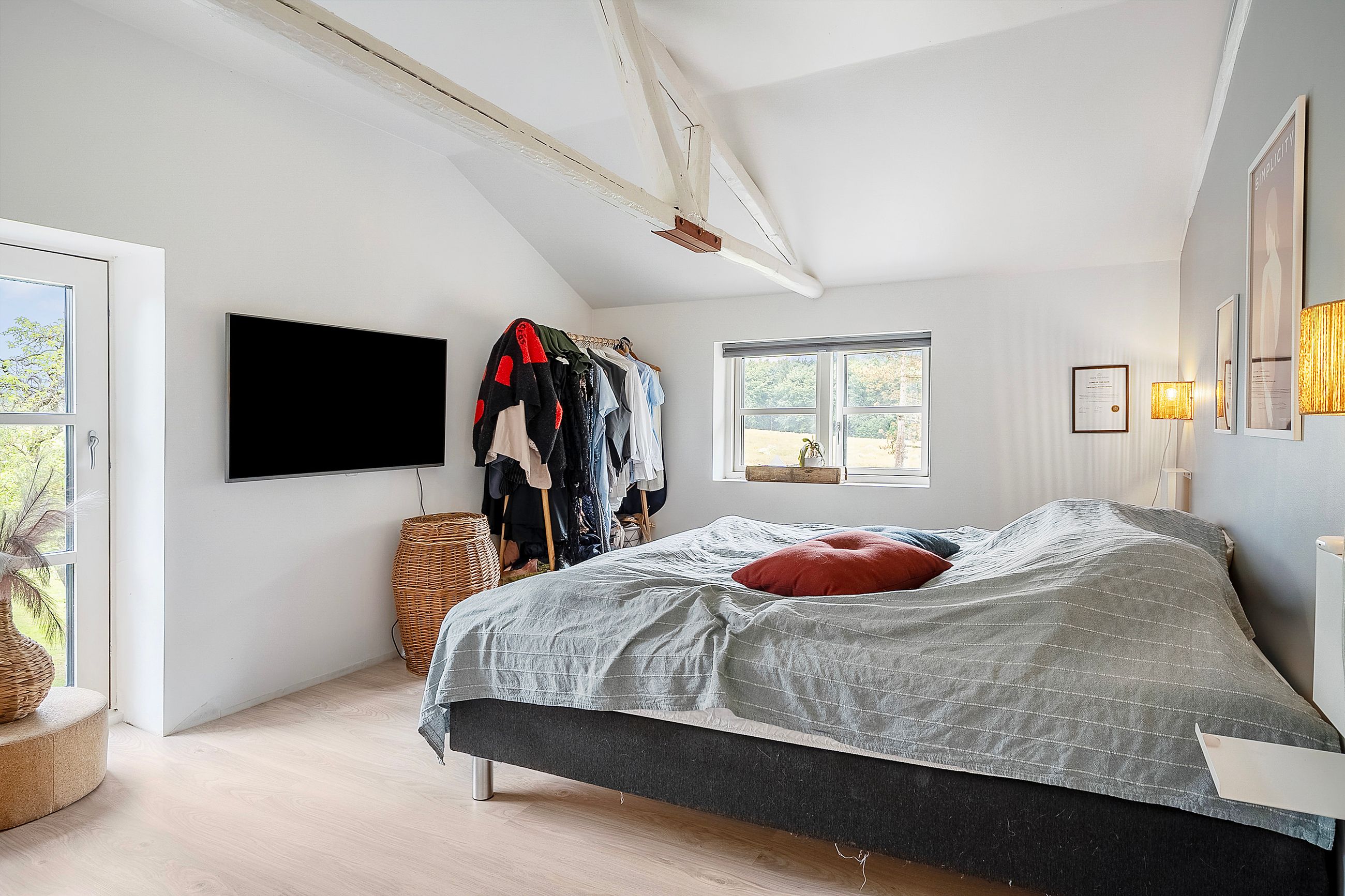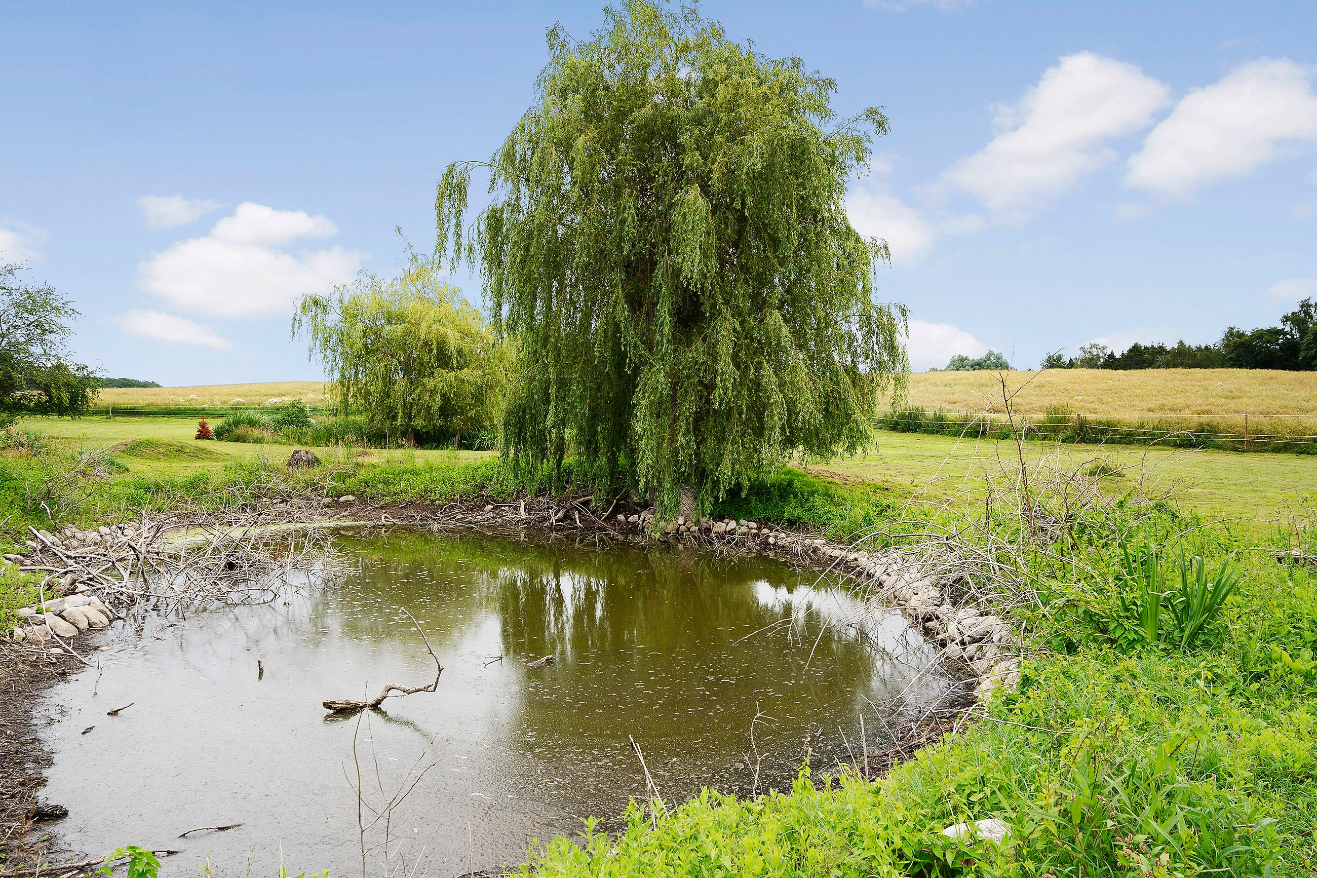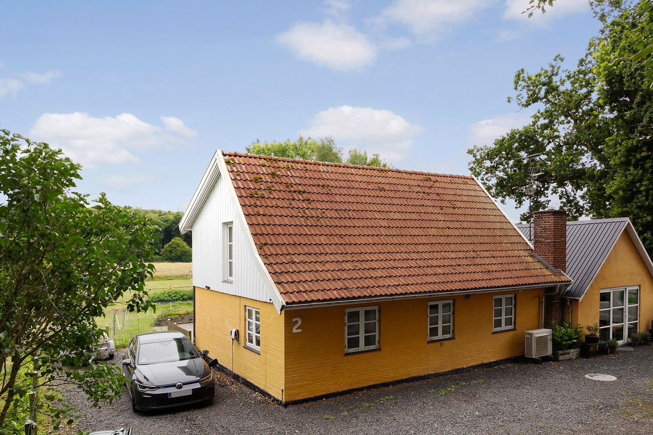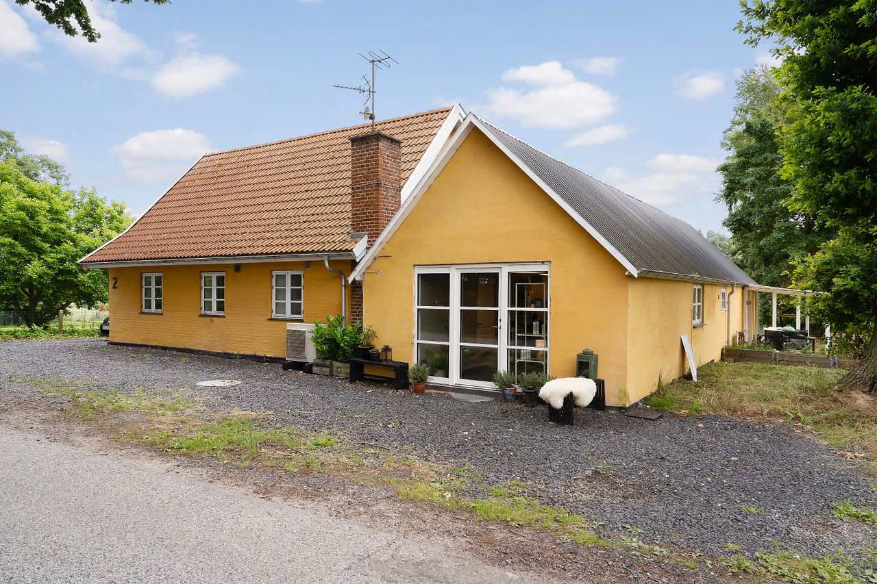 Indretningen byder på to rummelige værelser samt et disponibelt rum, der kan tilpasses efter behov. Det store leverum med køkken/alrum er hjertet af hjemmet og byder på en skøn udsigt over den vidtstrakte grund. Herfra kan man nyde synet af de to små søer og det kuperede terræn, som giver ejendommen masser af karakter og charme. Derudover findes et stort multirum, som tidligere har været anvendt som frisørsalon – perfekt til kreative sjæle eller dem med behov for ekstra plads.