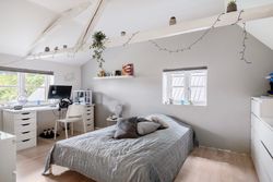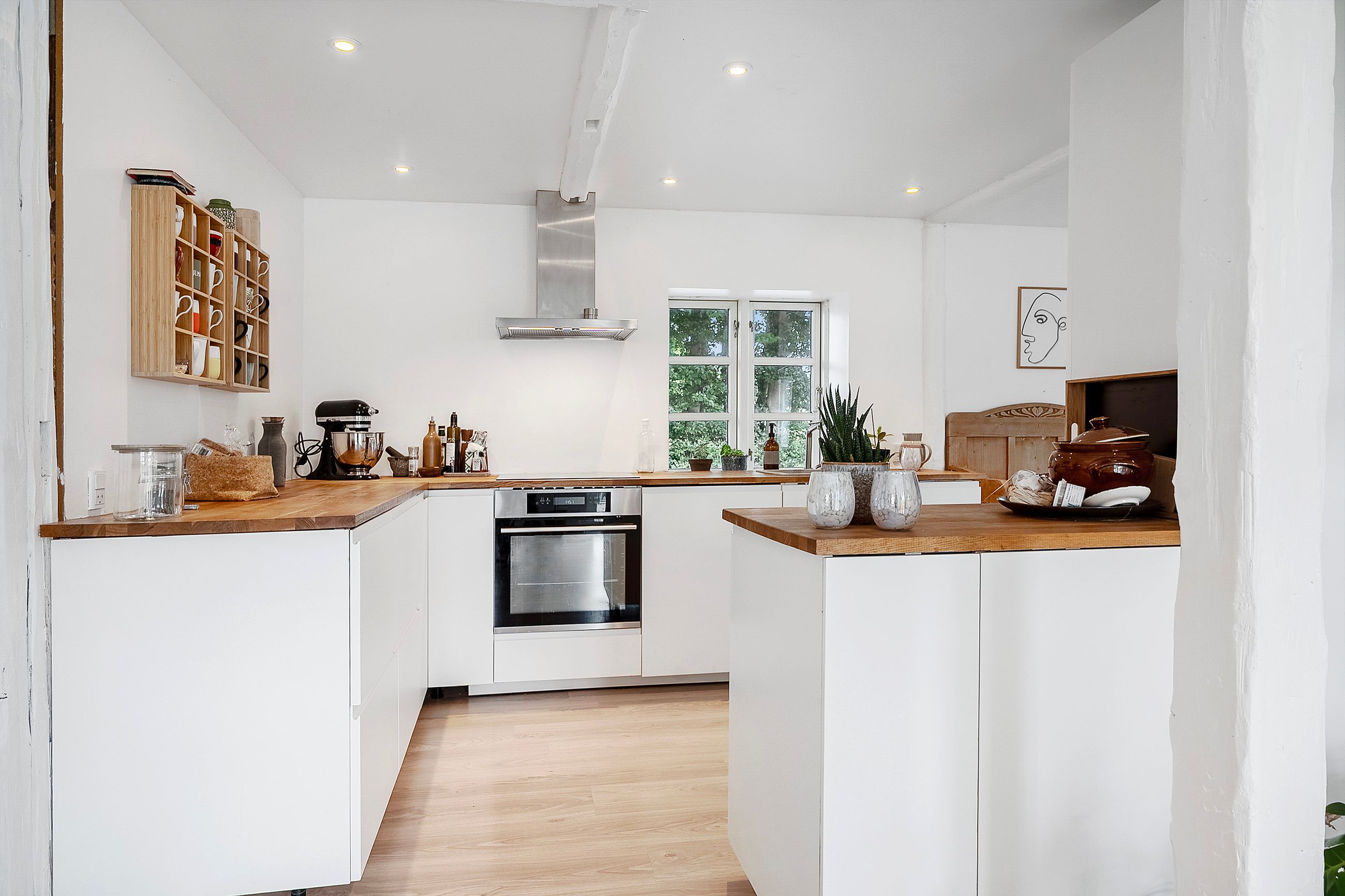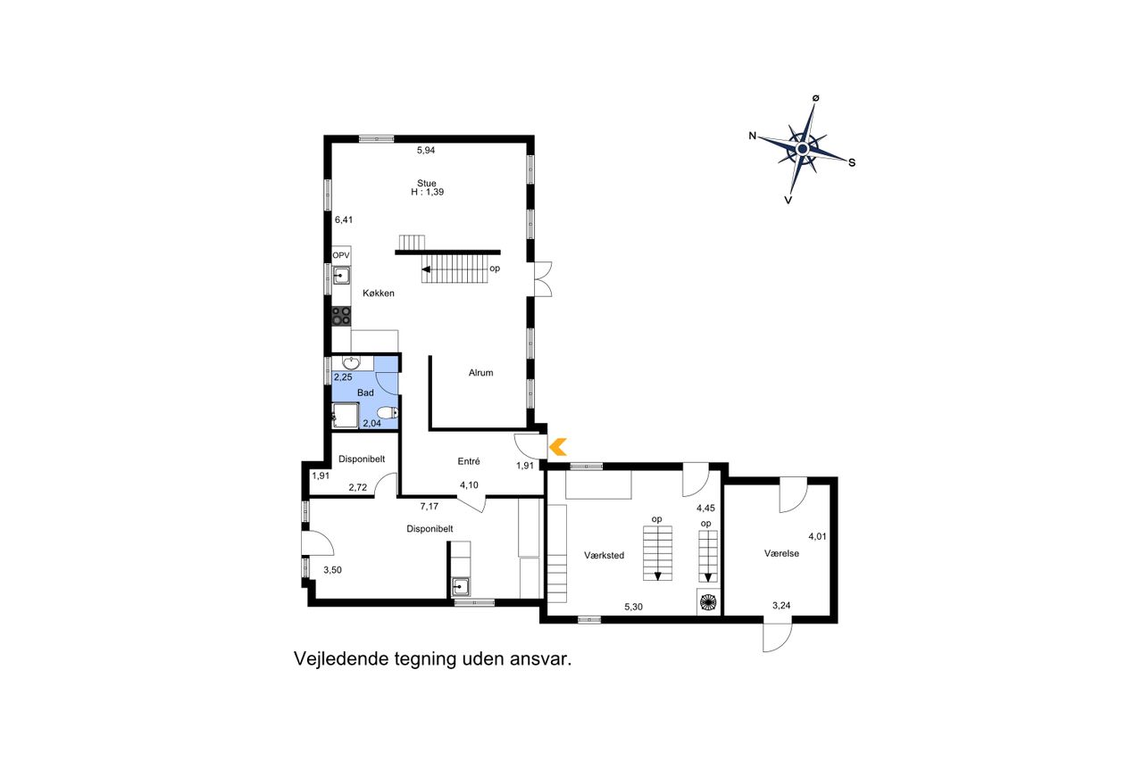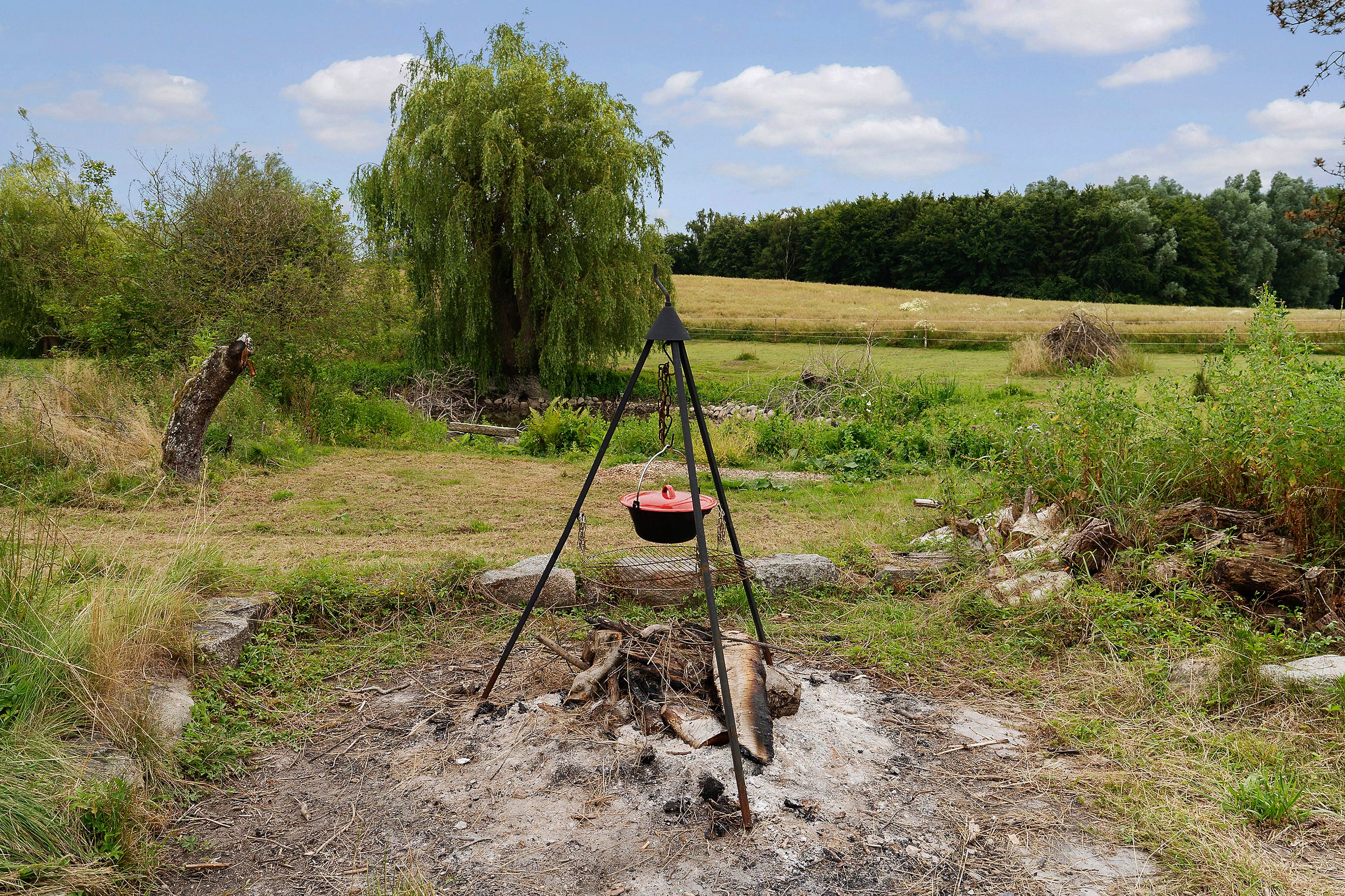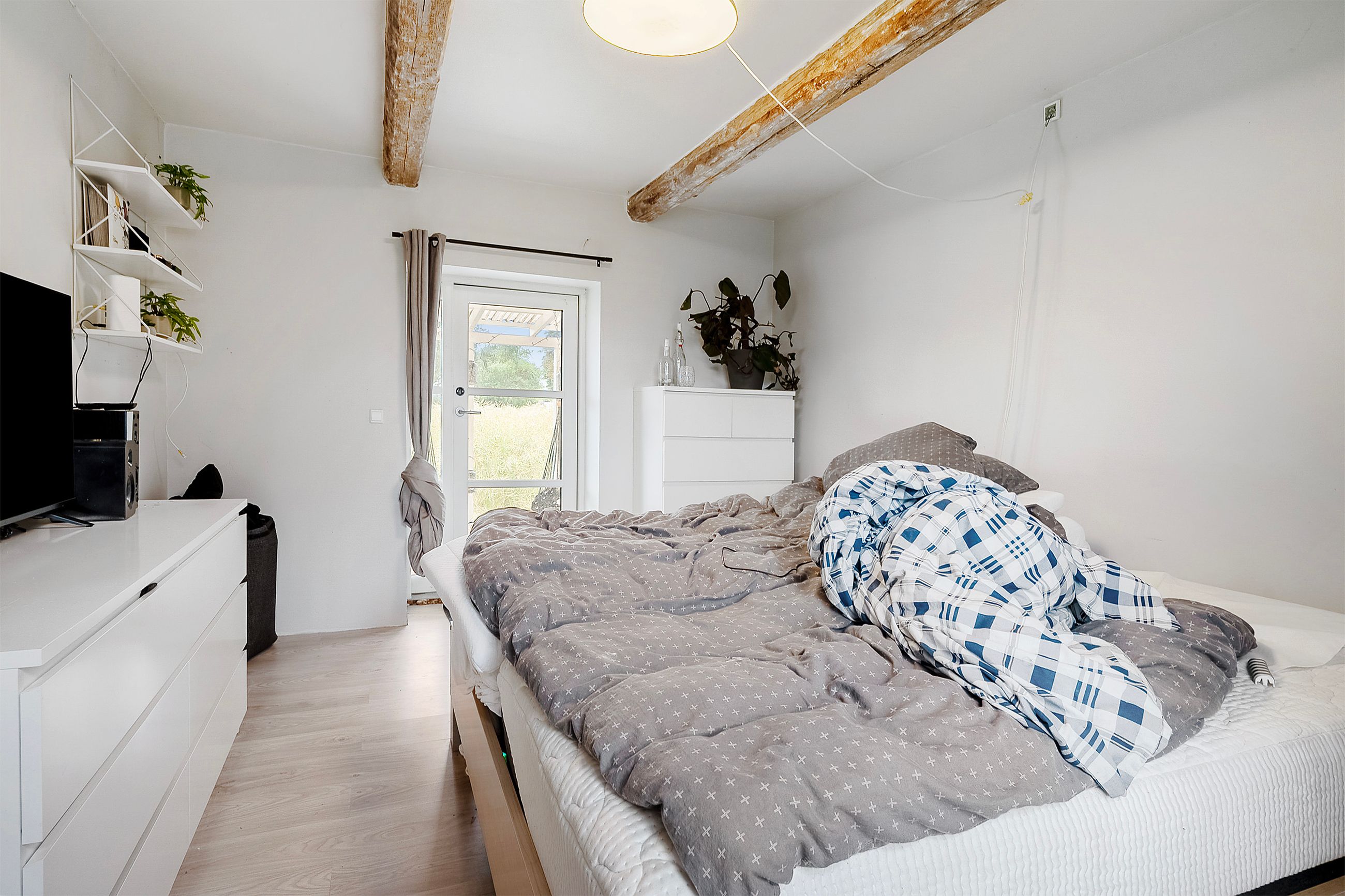 Indretningen byder på to rummelige værelser samt et disponibelt rum, der kan tilpasses efter behov. Det store leverum med køkken/alrum er hjertet af hjemmet og byder på en skøn udsigt over den vidtstrakte grund. Herfra kan man nyde synet af de to små søer og det kuperede terræn, som giver ejendommen masser af karakter og charme. Derudover findes et stort multirum, som tidligere har været anvendt som frisørsalon – perfekt til kreative sjæle eller dem med behov for ekstra plads.