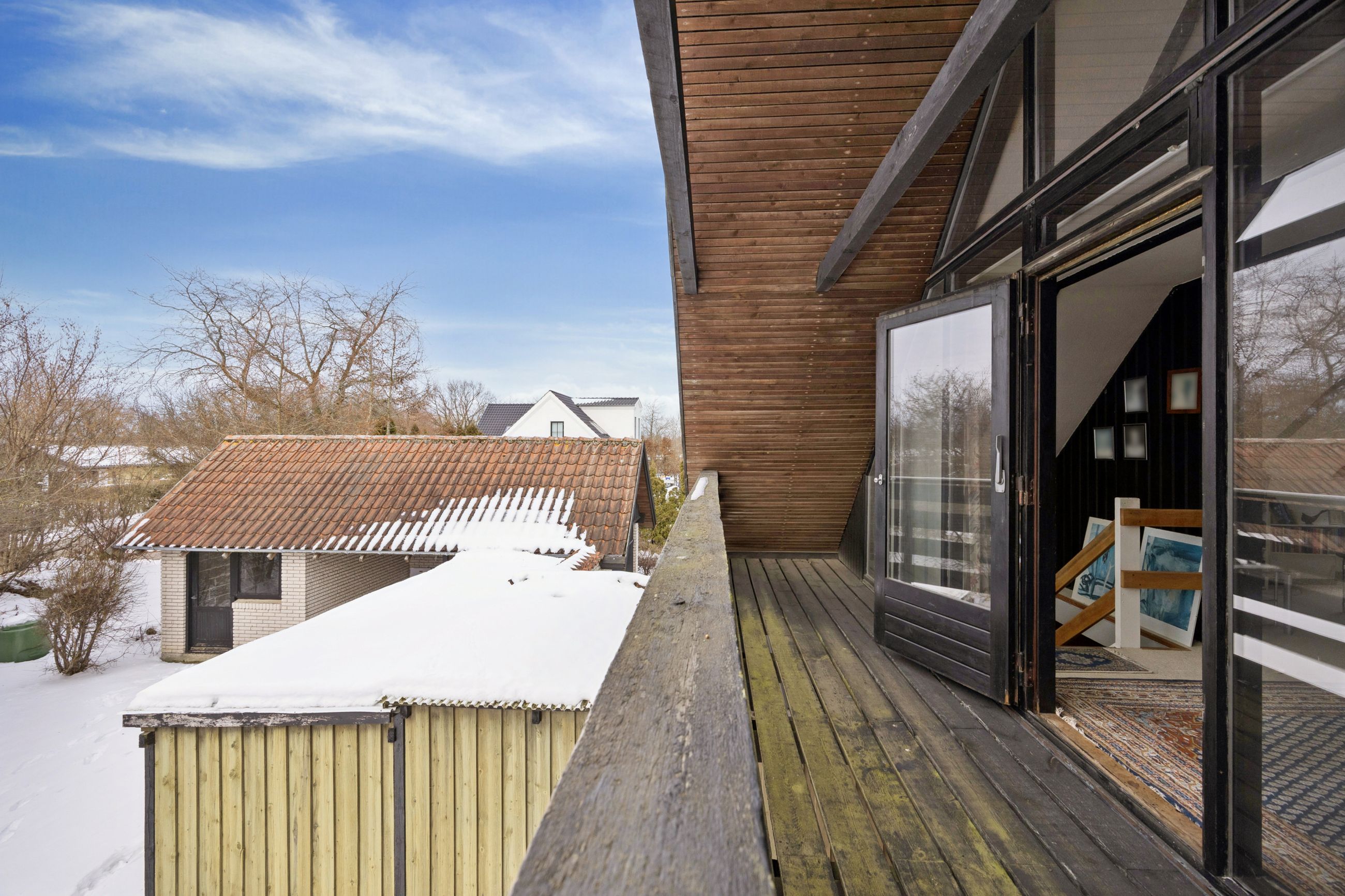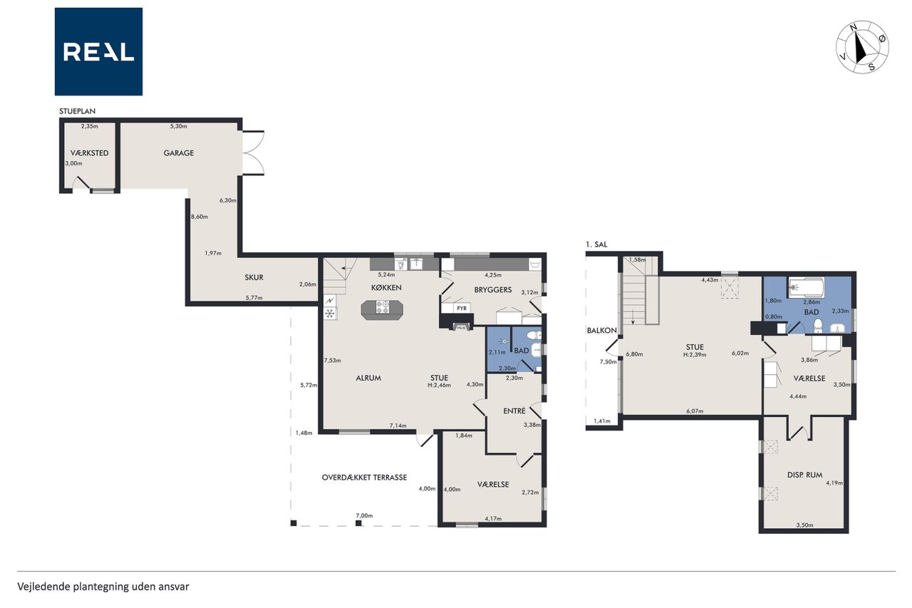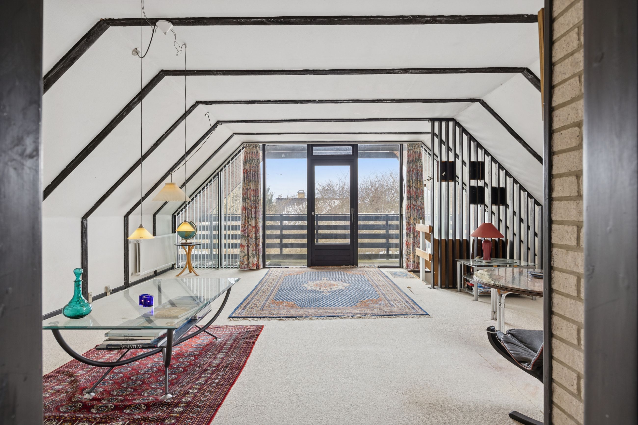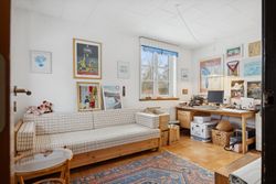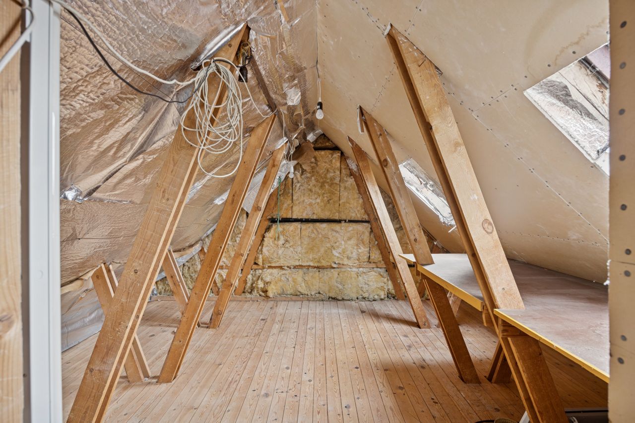 Fra alrummet fører en mellemgang dig videre til et stort værelse, som nemt kan opdeles i to mindre rum alt efter behov. Et badeværelse fuldender stueetagen. På første sal finder du endnu en stor stue med potentiale for at skabe flere værelser efter ønske samt adgang til en imponerende altan med åben udsigt over området.