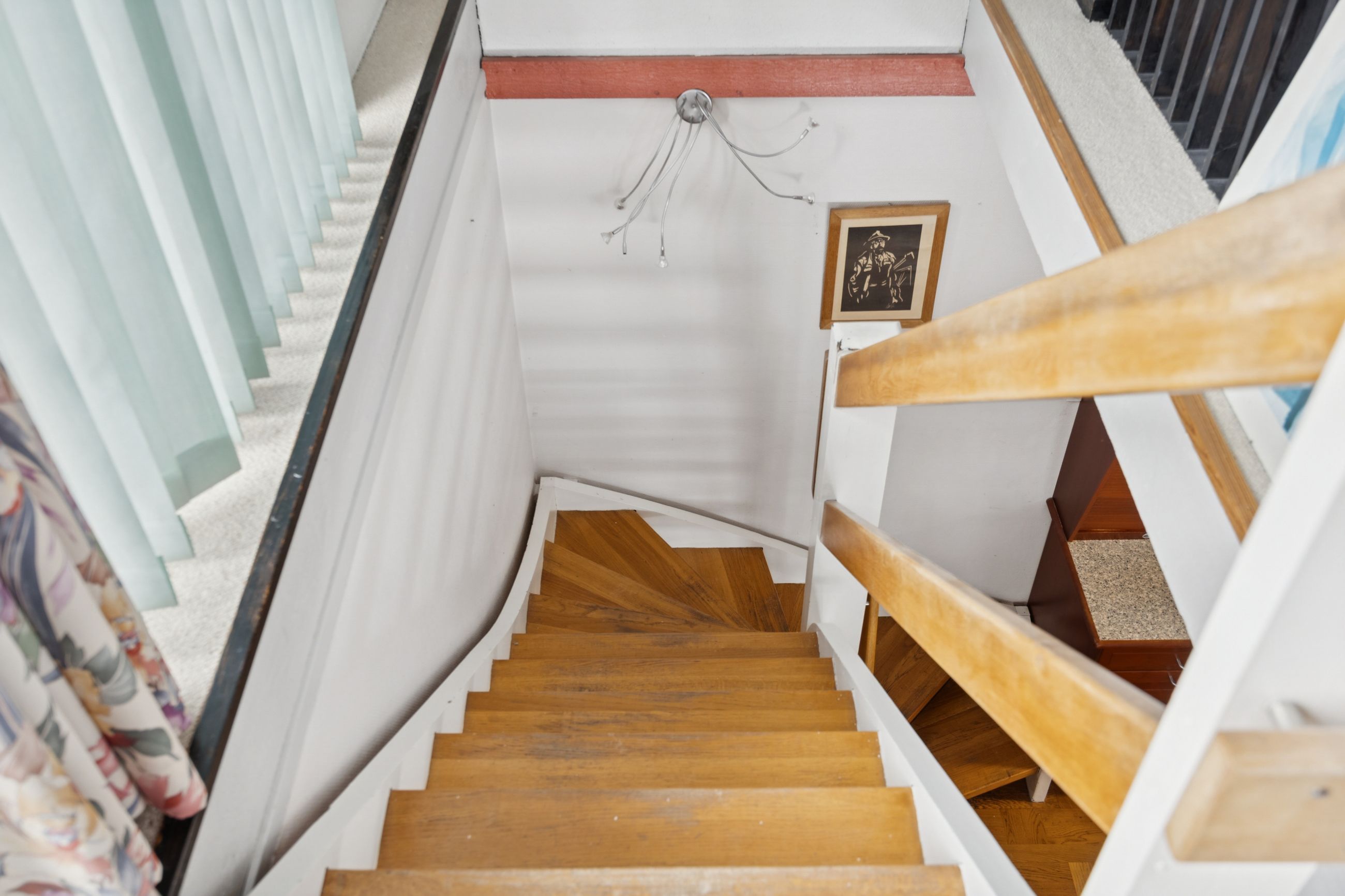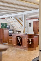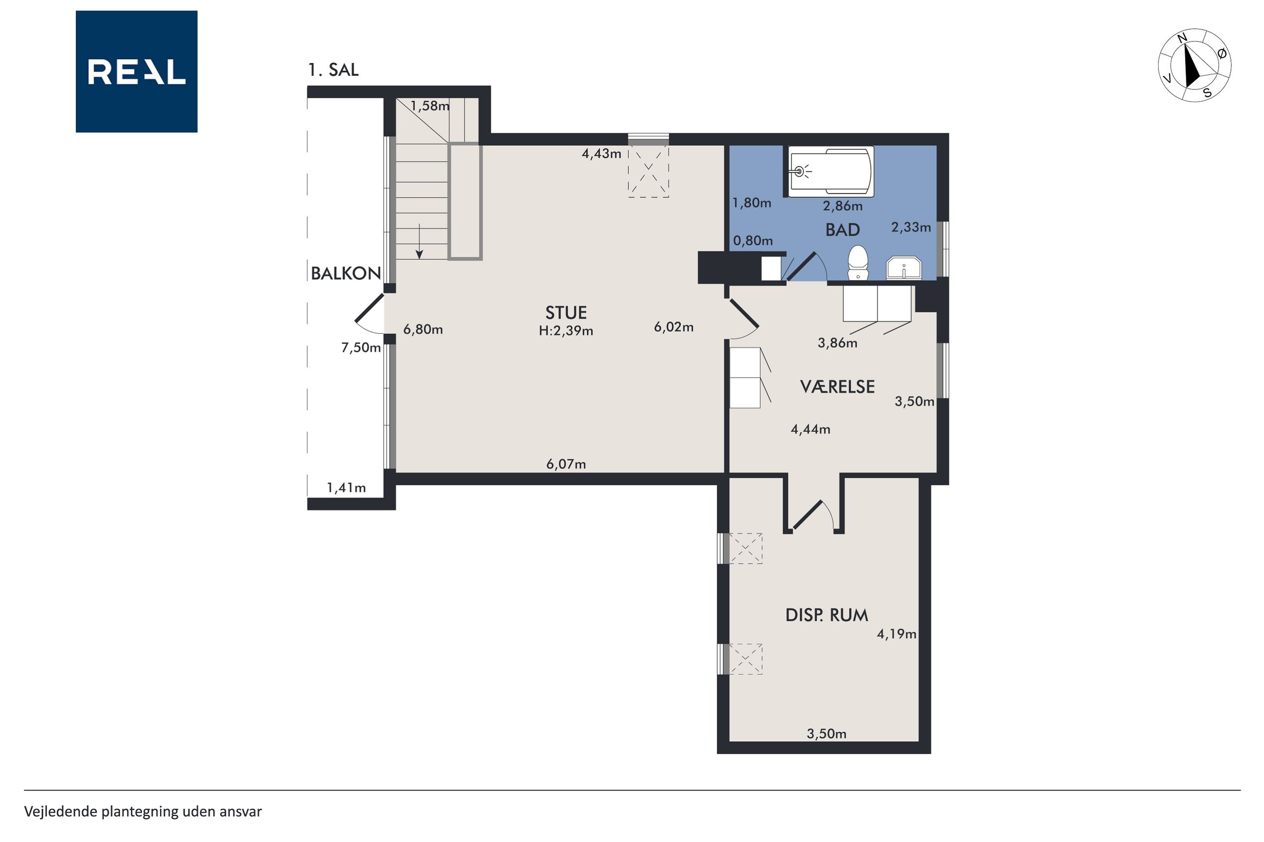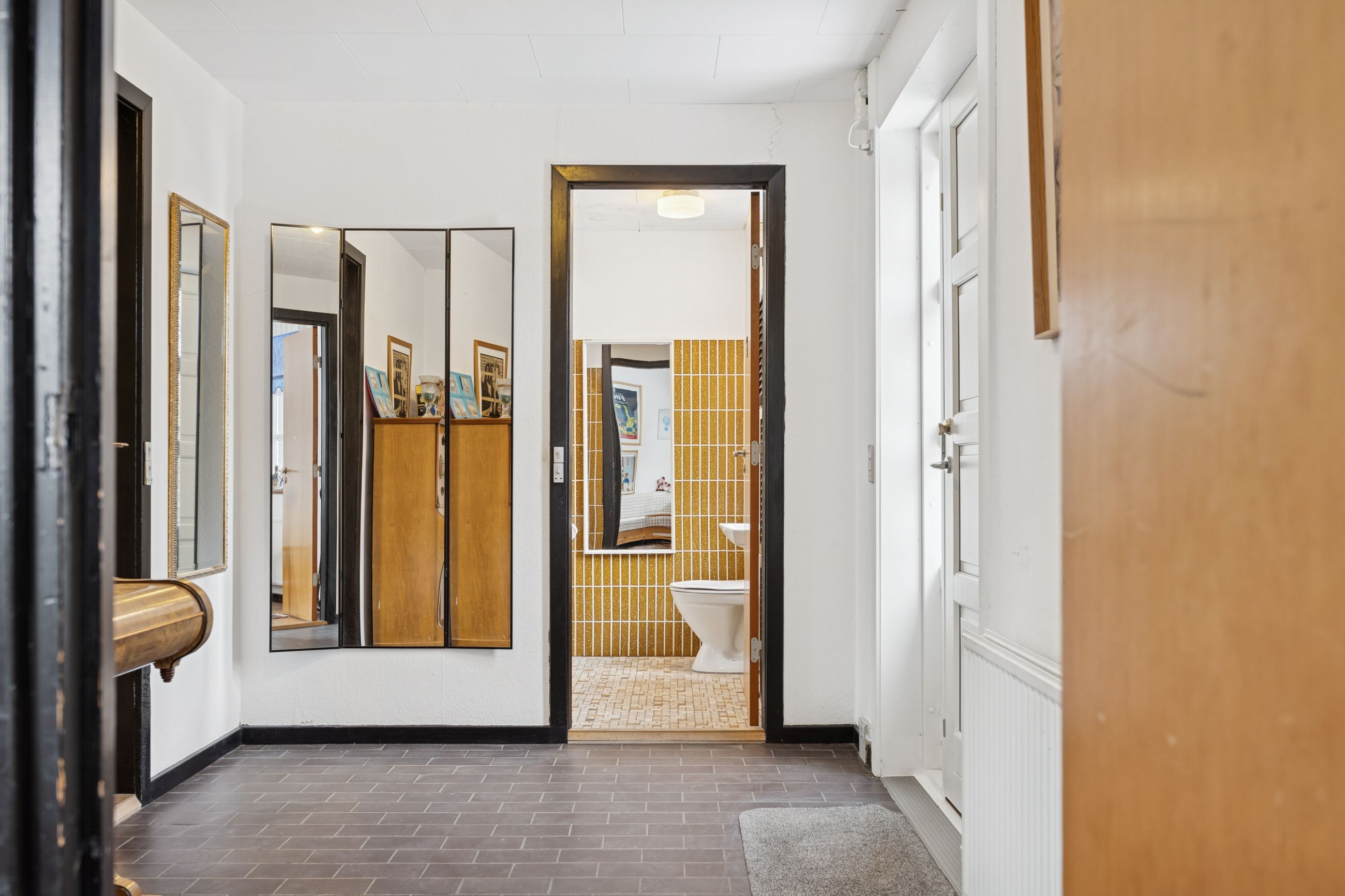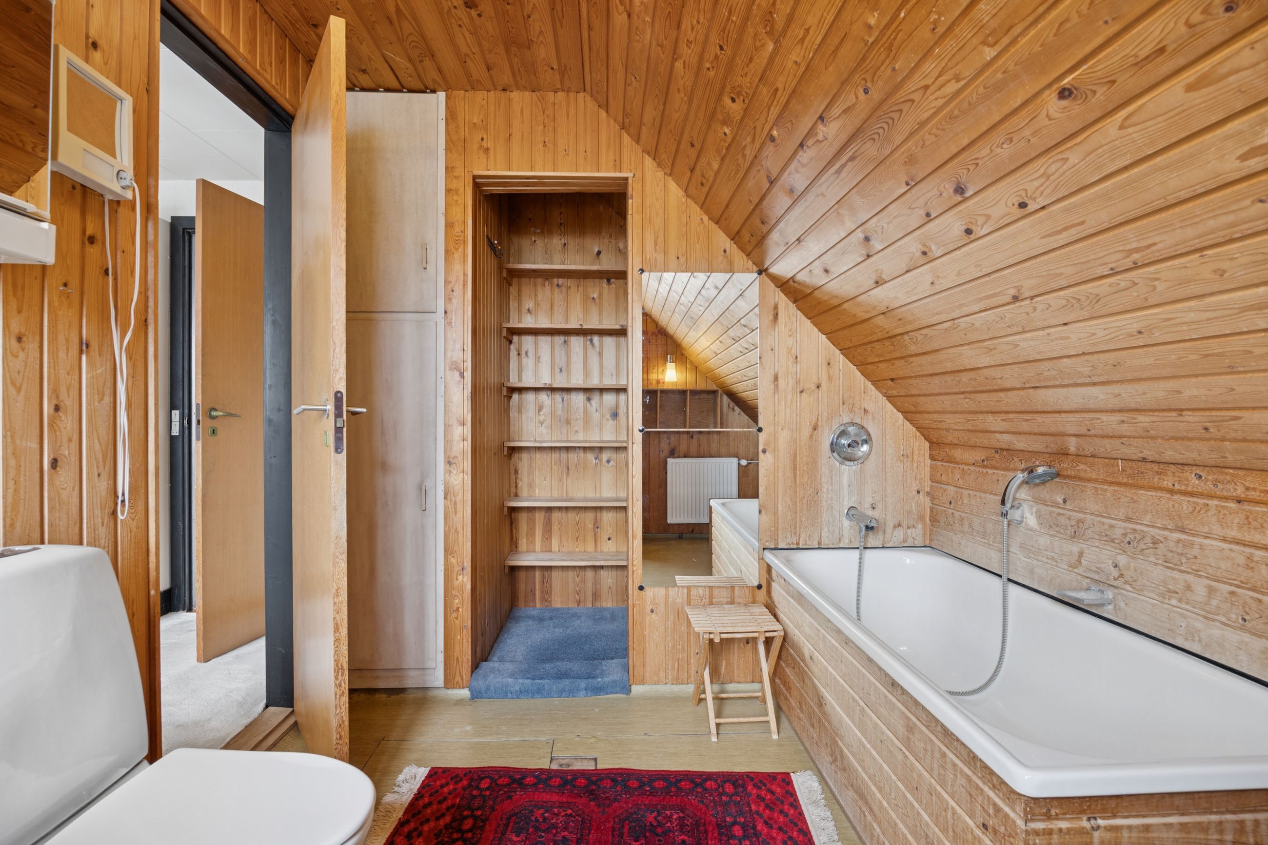 Fra alrummet fører en mellemgang dig videre til et stort værelse, som nemt kan opdeles i to mindre rum alt efter behov. Et badeværelse fuldender stueetagen. På første sal finder du endnu en stor stue med potentiale for at skabe flere værelser efter ønske samt adgang til en imponerende altan med åben udsigt over området.